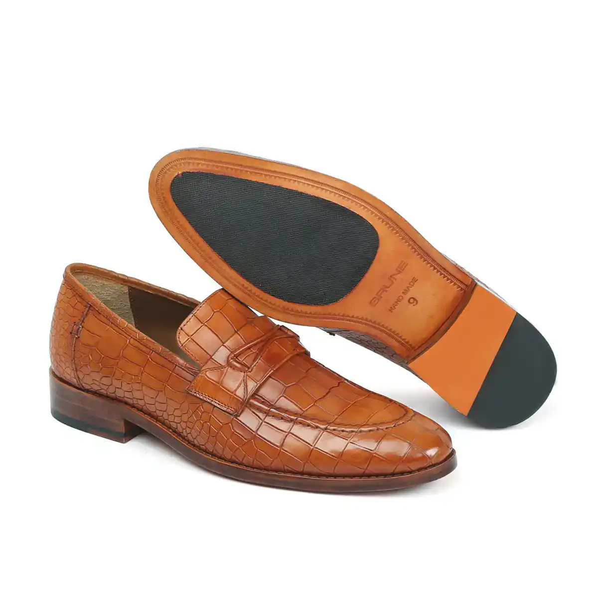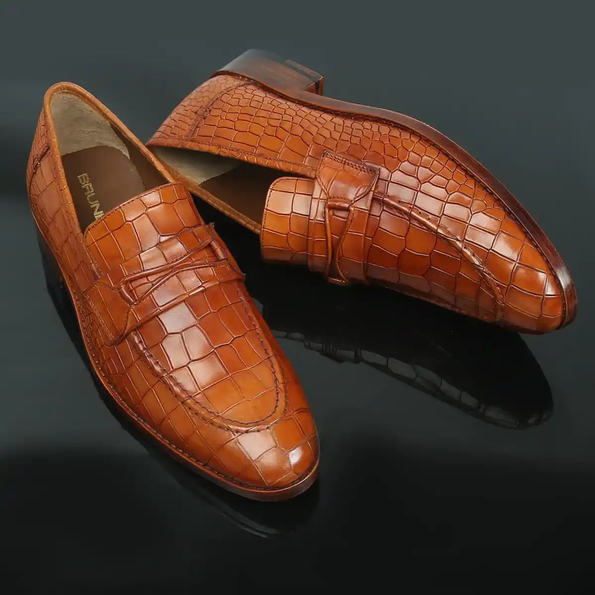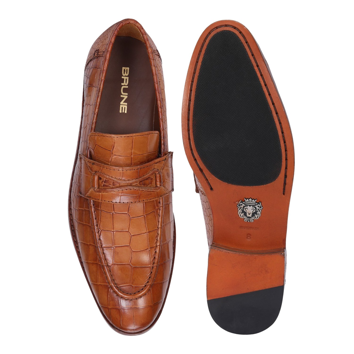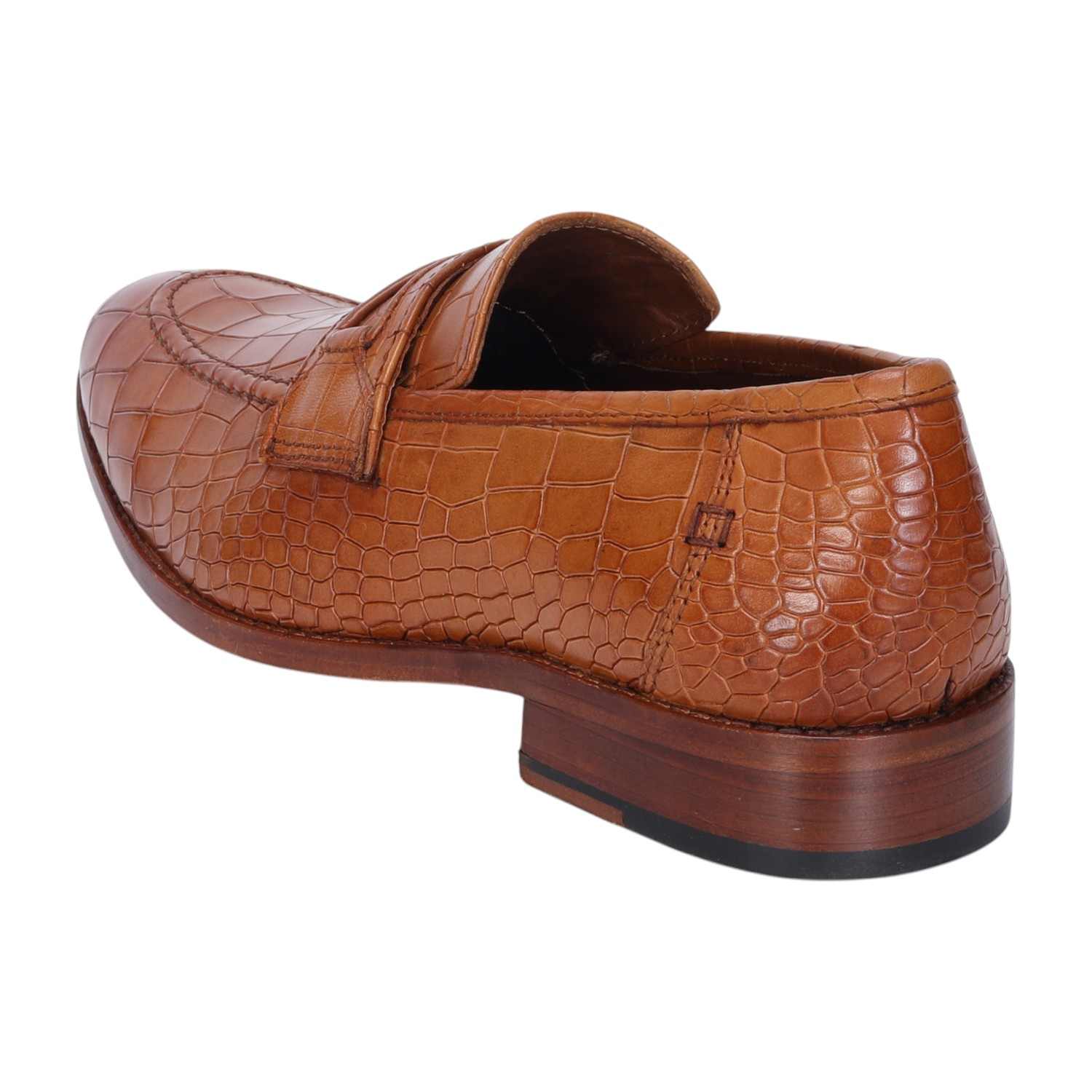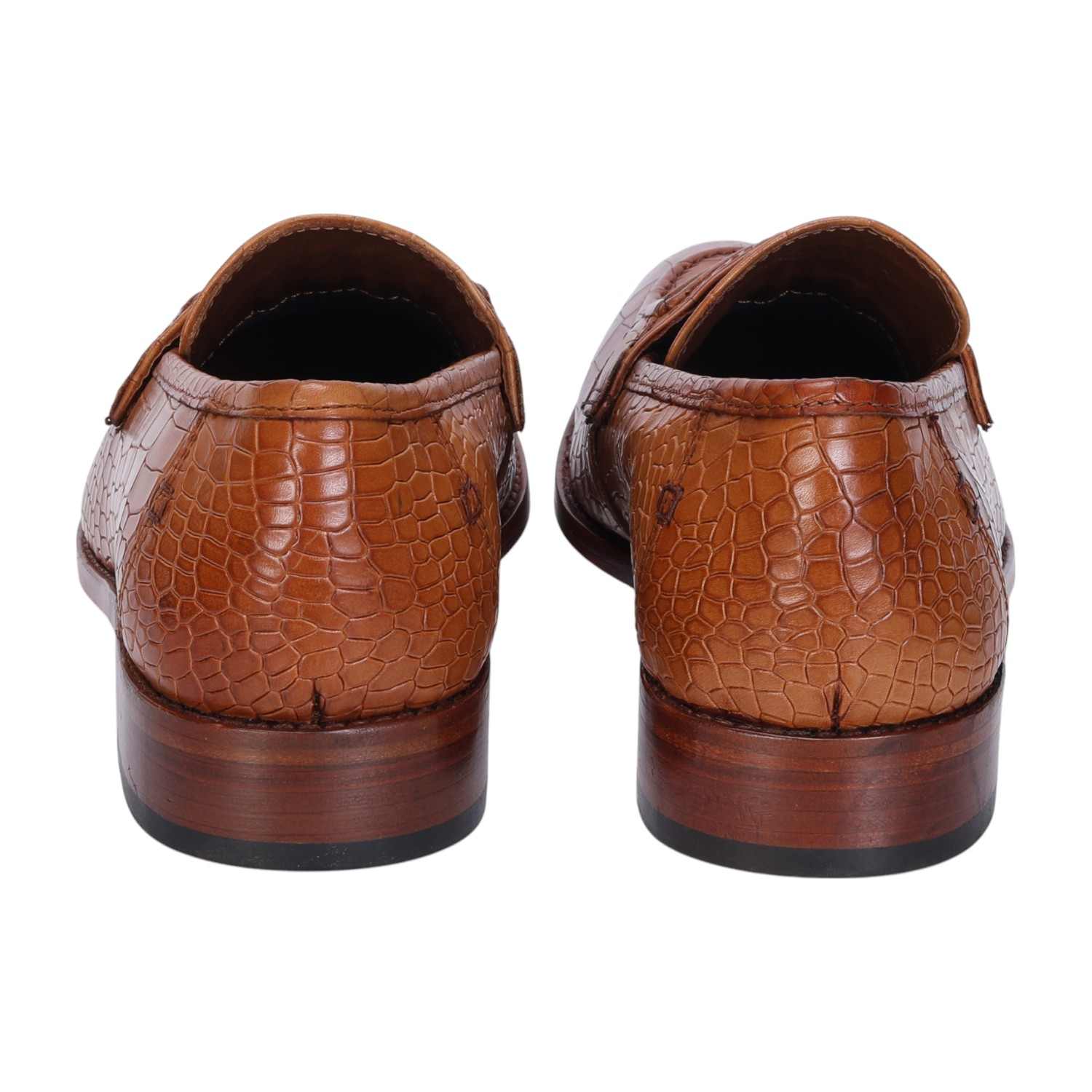 This pair of snug-fit, loafers shoes in astonishing Croco print leather is ideal for everyday wear to the office or for meetings with clients. Featuring Slip-On closure which helps to wear this vogue beauty effortlessly. The round apron toe adds an element of perfect style while the rounded and narrow heel ensures a snug fit as well as foot balance. The patina finish provides an artistic elegance to it. The contrasting leather sole enhances the overall presentation of the shoe. Extra padded insole gives that extra cushiony comfort which helps to wear this for long. You can customize this Shoe in any of your favorite color with our bespoke services.