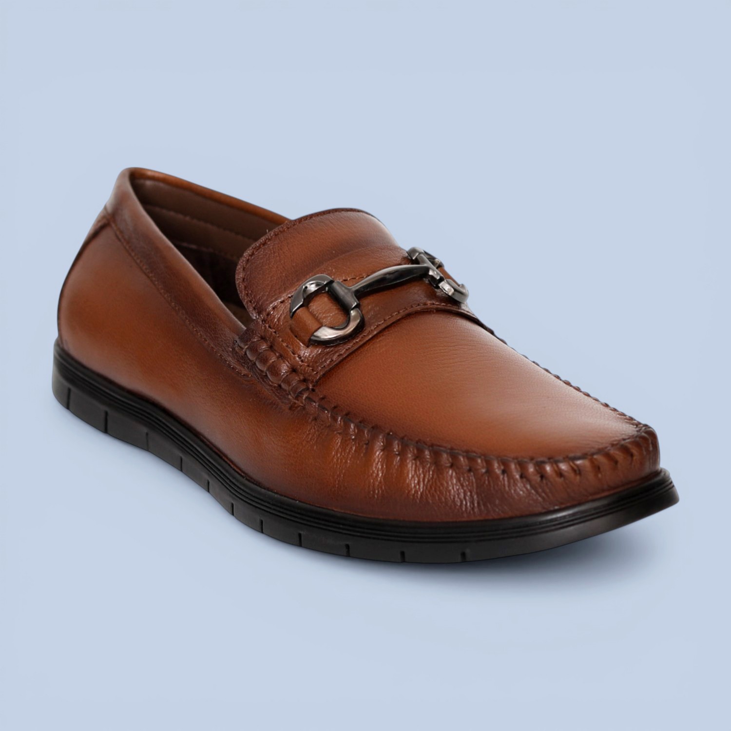 These tan moc stitch loafers feature a warm tone that pairs well with both light and dark outfits. The stitched front detail and simple slip-on structure make them suitable for office wear as well as casual occasions. The balanced design supports regular, everyday use.