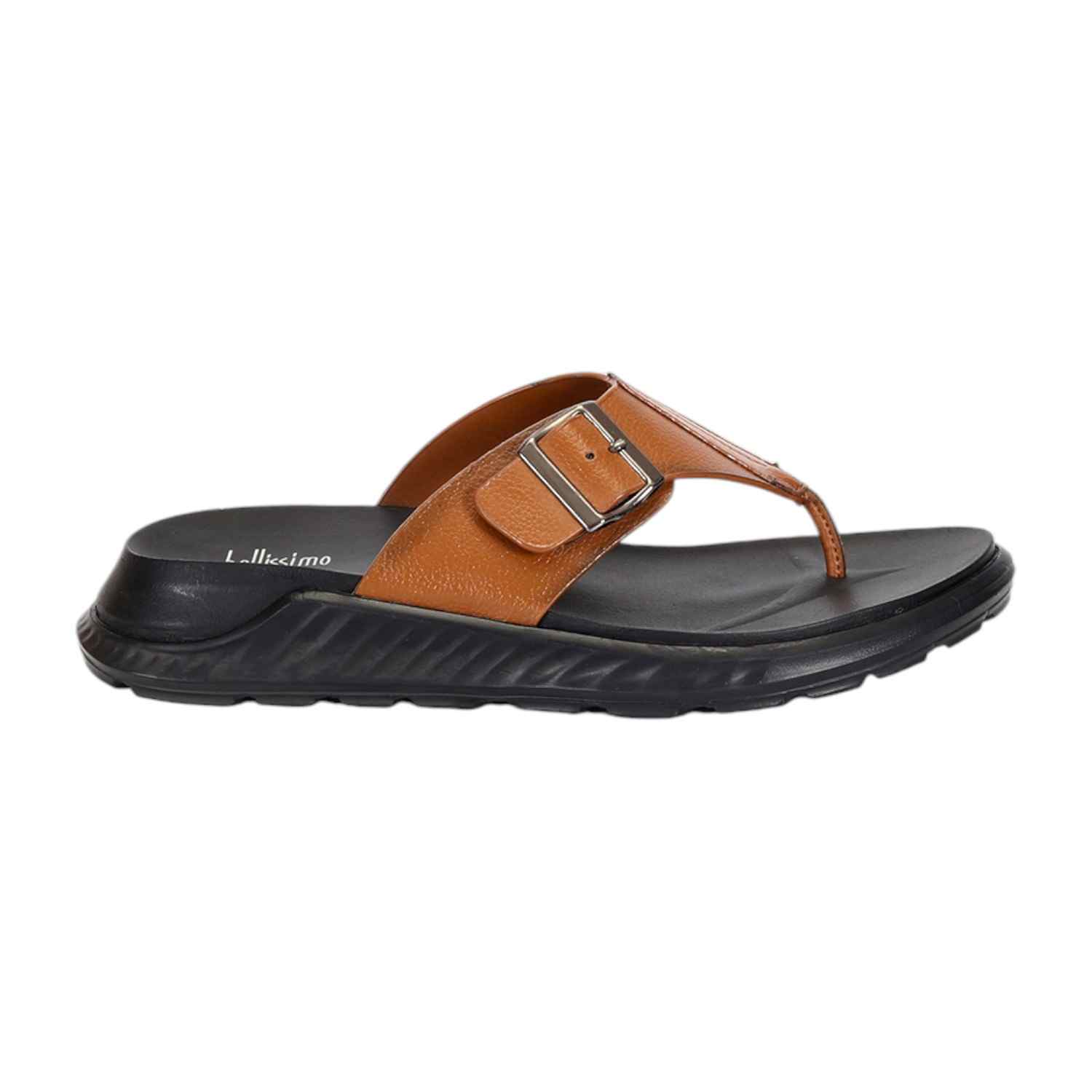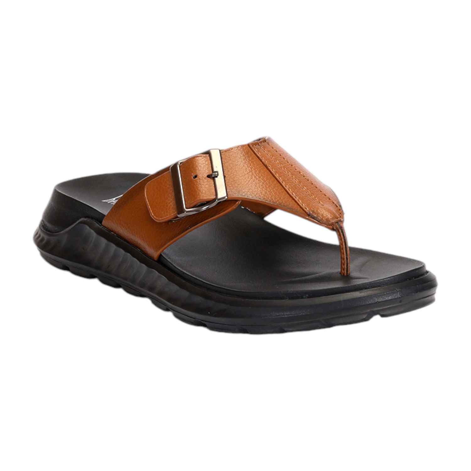 Embrace comfort and style with our Men Tan Thong Sandals featuring a secure buckle closure and a durable synthetic upper. Designed for everyday wear, these sandals offer a modern twist on a classic design, ensuring a snug fit and excellent support. The sleek black finish adds versatility, making them perfect for both casual outings and relaxed days at home. Crafted with high-quality materials, these thong sandals are built to withstand wear while keeping your feet comfortable. Step into effortless style this season with these must-have sandals!