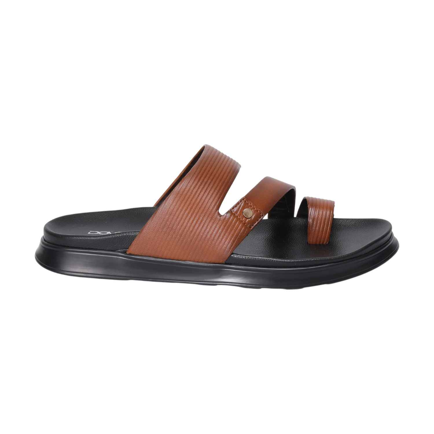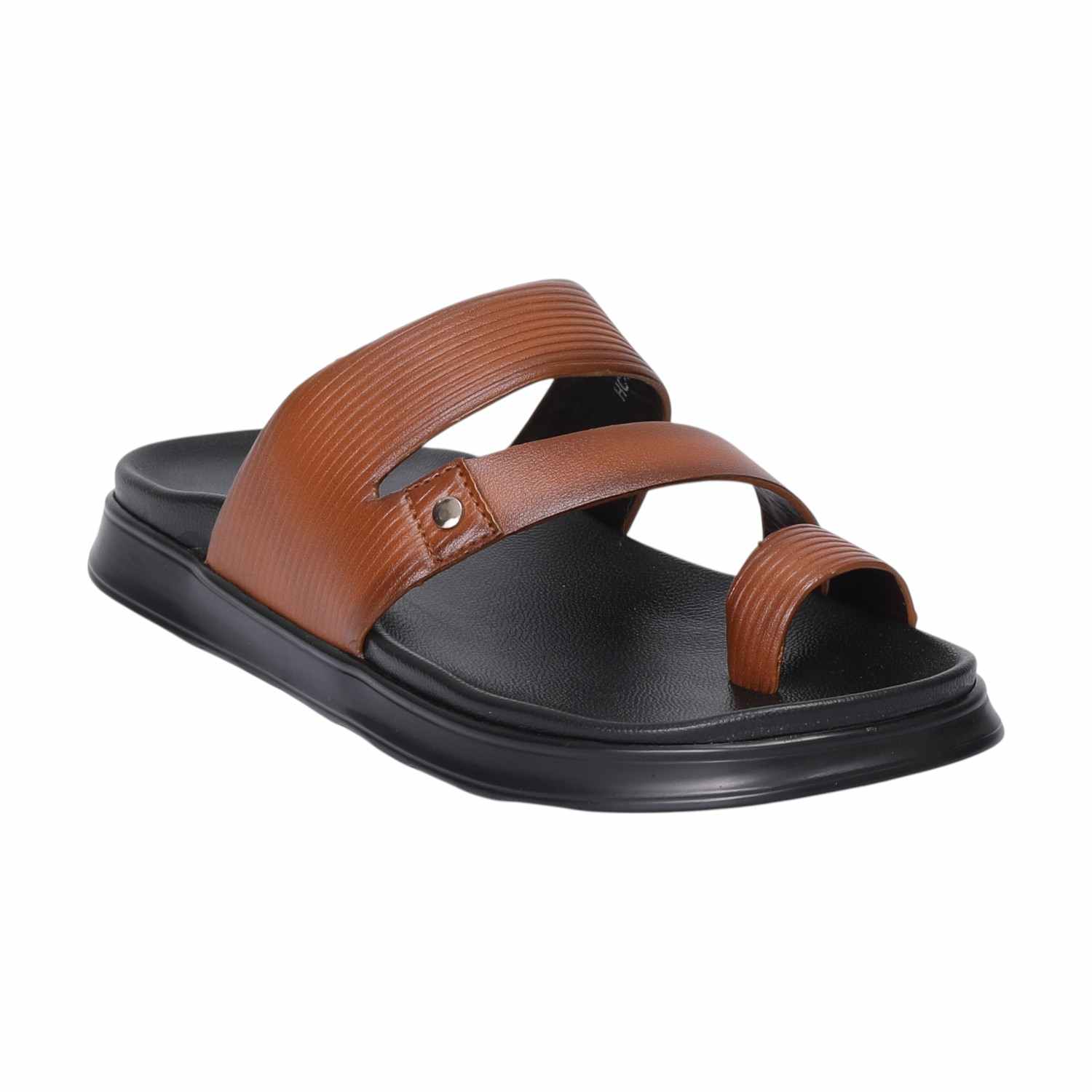 Add a touch of contemporary style to your casual look with this Men Tan Toe-Loop Chappal. Featuring a unique dual-strap upper with a secure toe loop, this slide-style chappal blends elegance with everyday comfort. The textured tan upper adds a refined finish, while the soft cushioned footbed ensures all-day wearability.