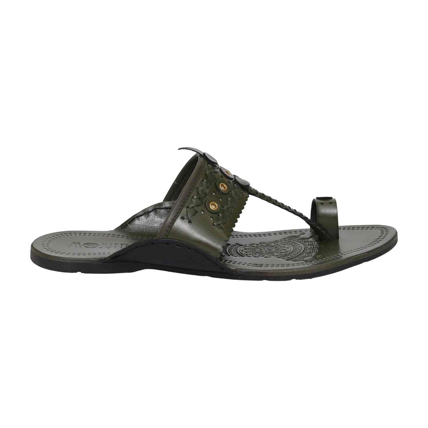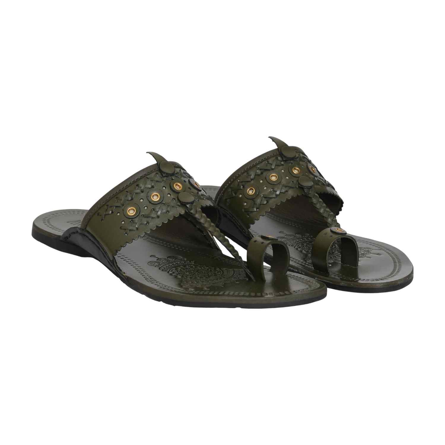A graceful fusion of heritage and style, this Kolhapuri embodies earthy elegance in a refreshing olive hue. Crafted for comfort and resilience, it brings a grounded sophistication ideal for modern men who appreciate cultural finesse with a contemporary edge.