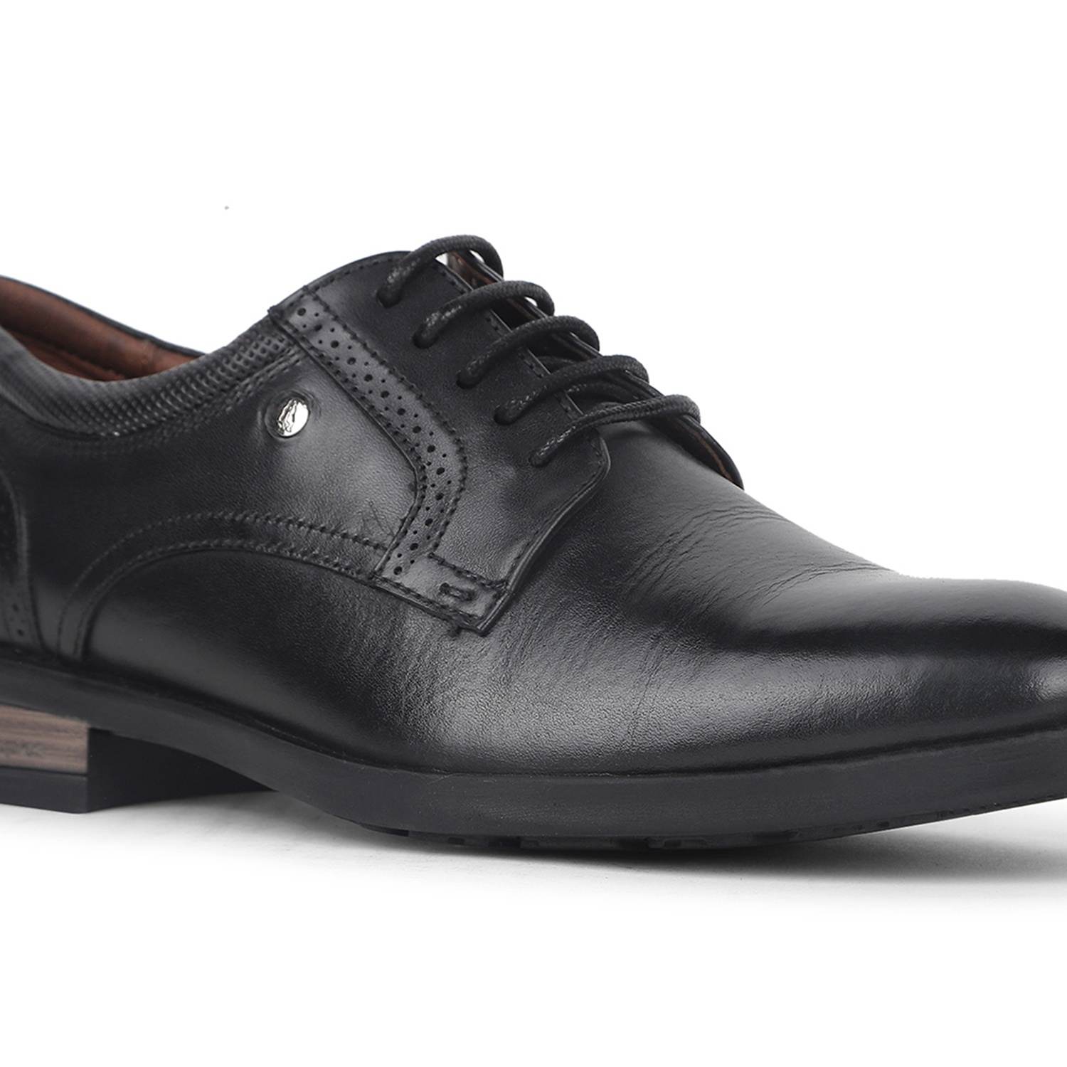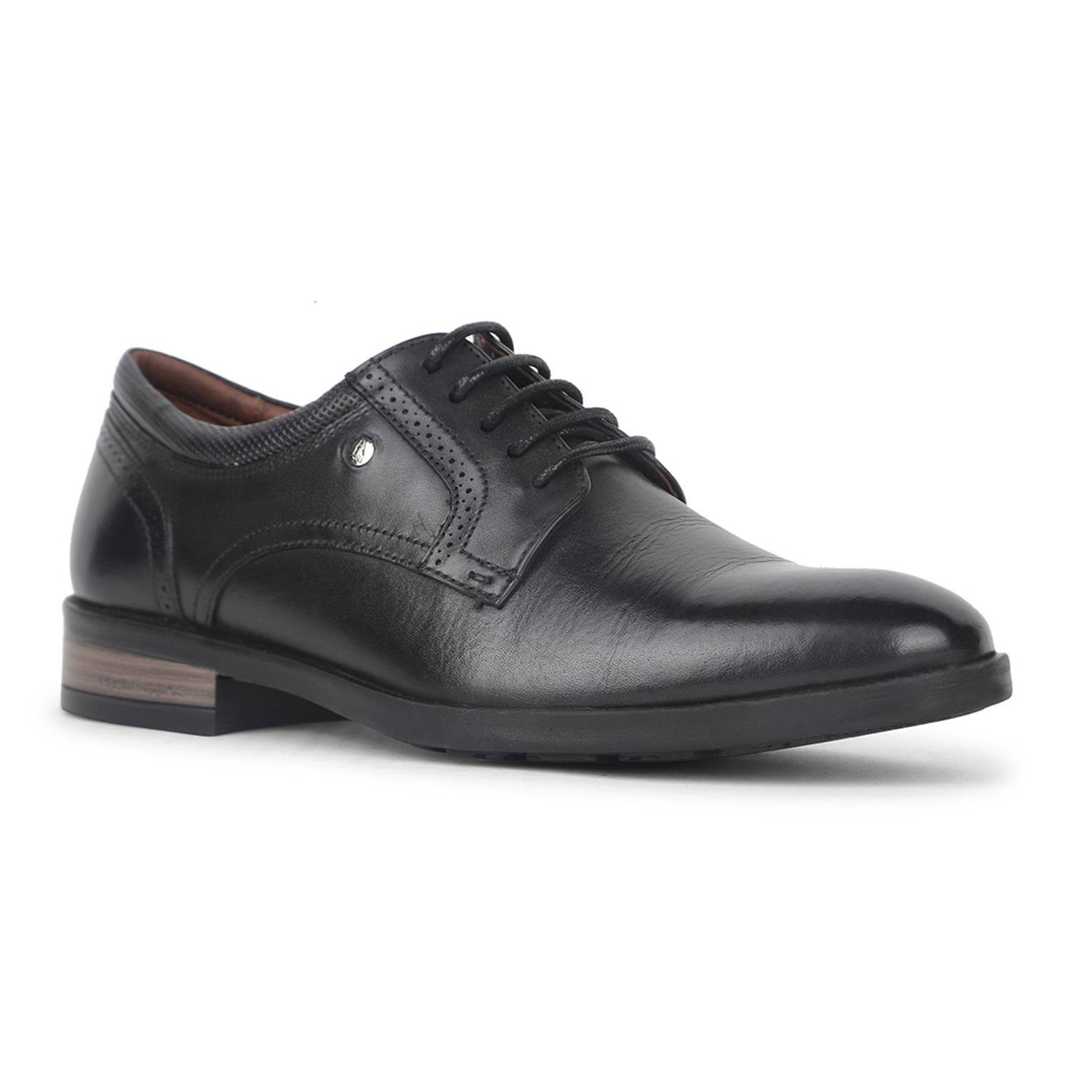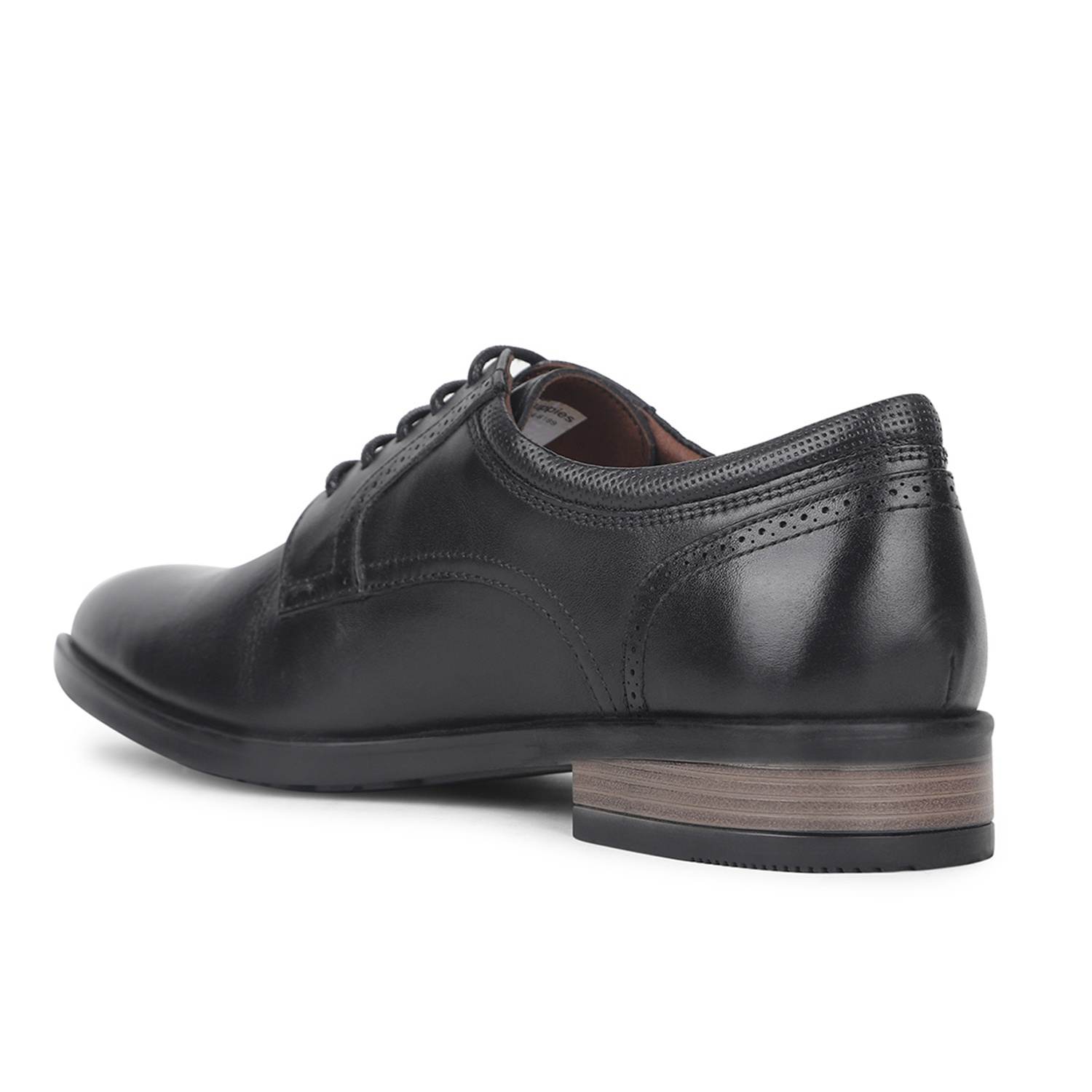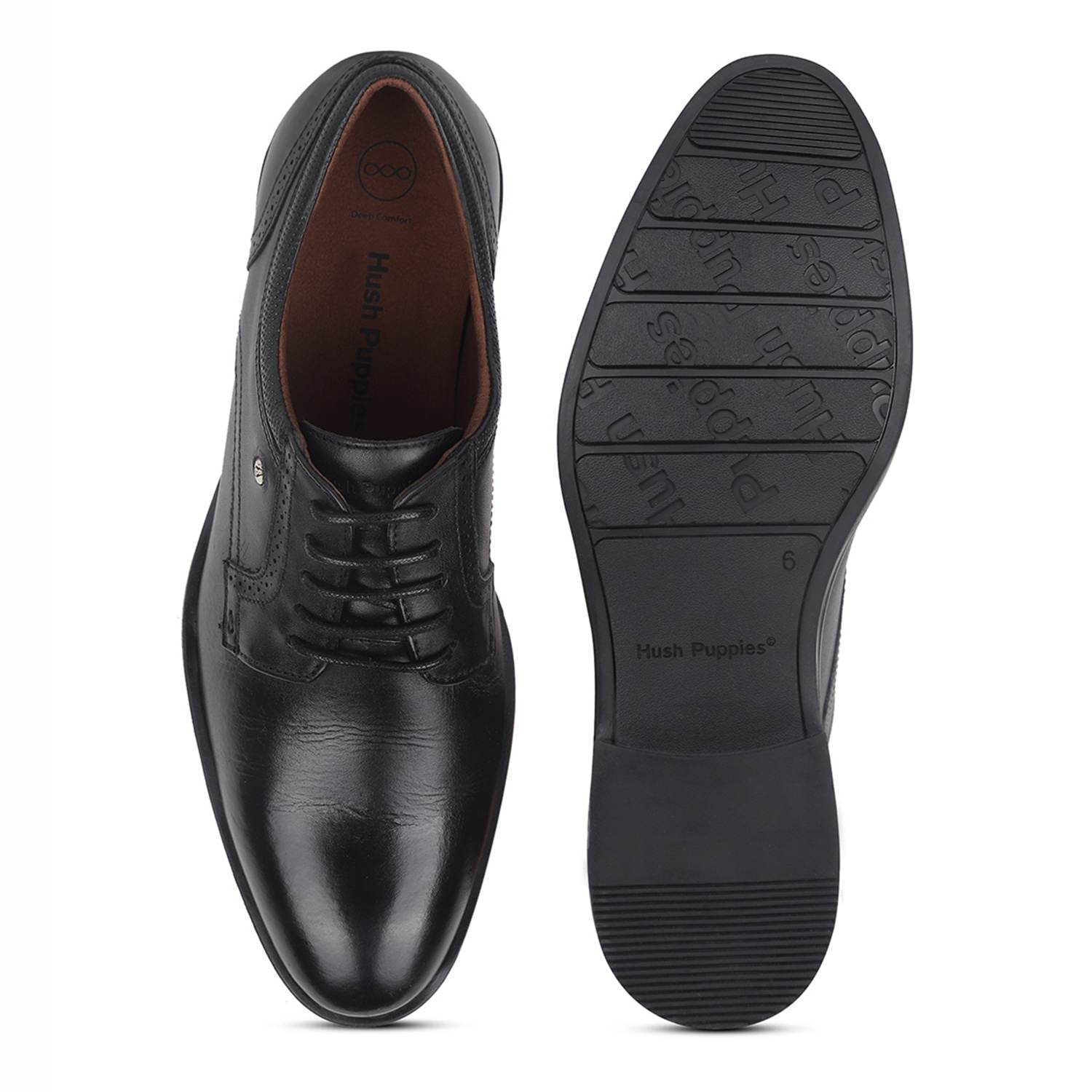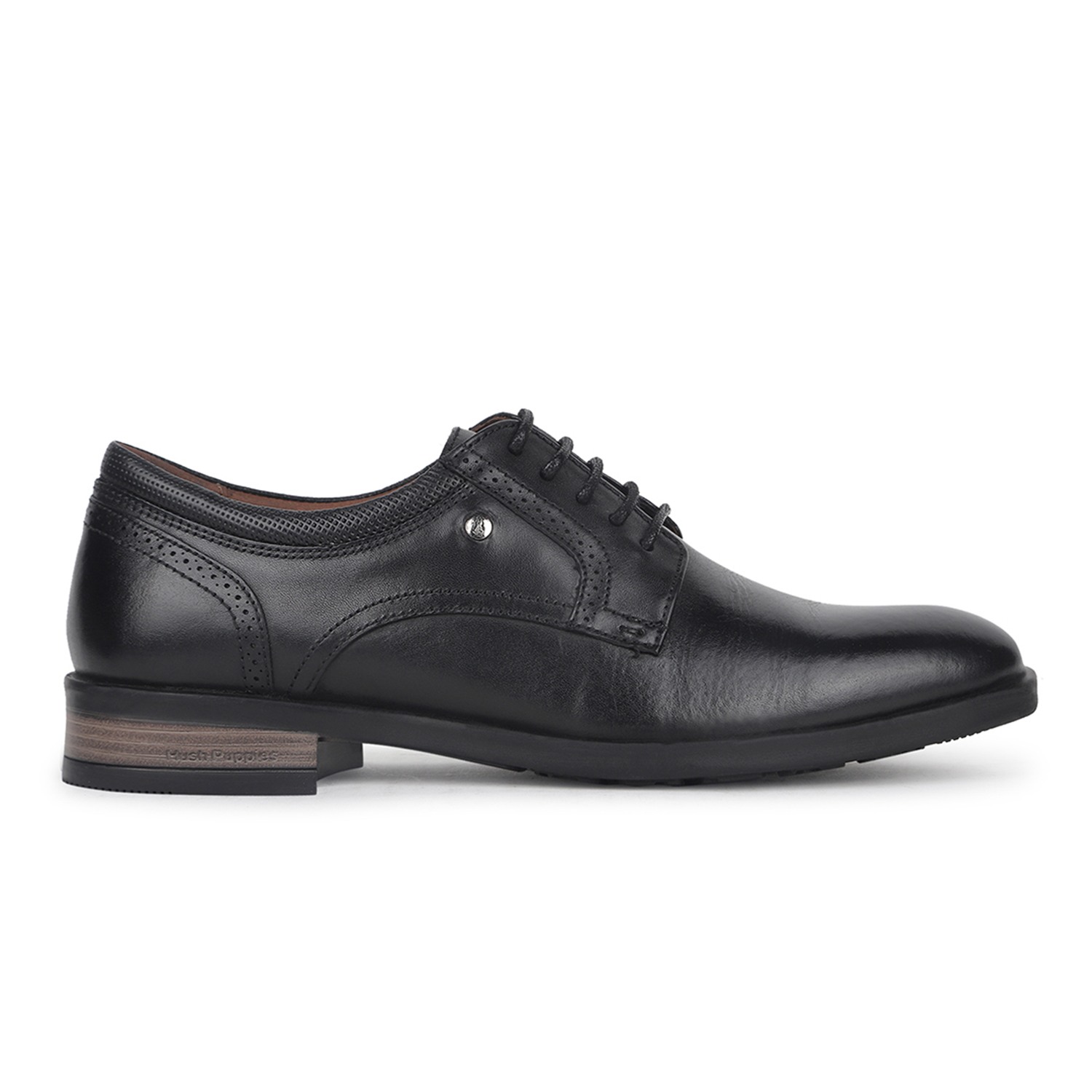 Step into sophistication with these black formal dress shoes from hush puppies. crafted from high-quality crust leather with a cellulose board sole, they exude elegance and style. the lace-up closure ensures a secure fit, making them perfect for any formal occasion. whether it's a business meeting or a special event, these derby shoes will add a touch of refinement to your ensemble.