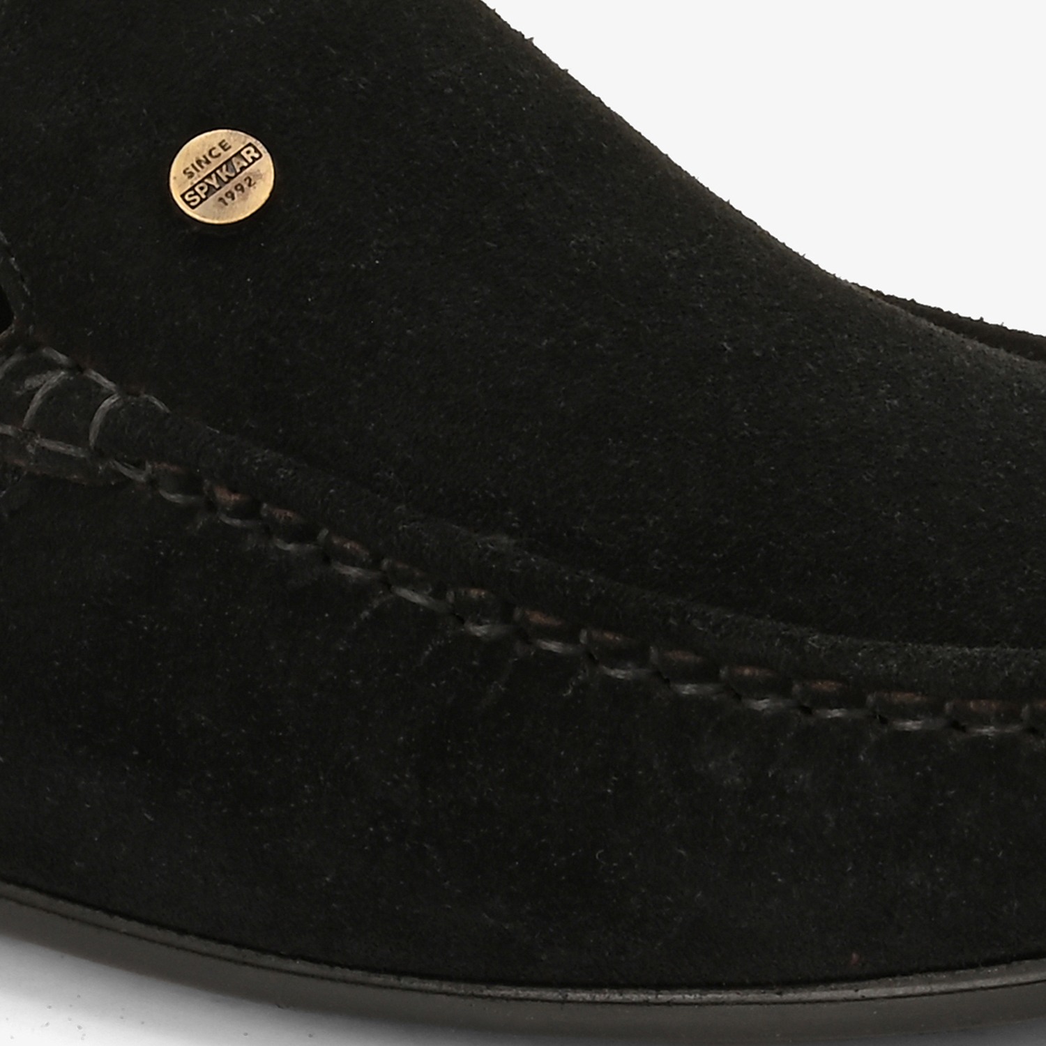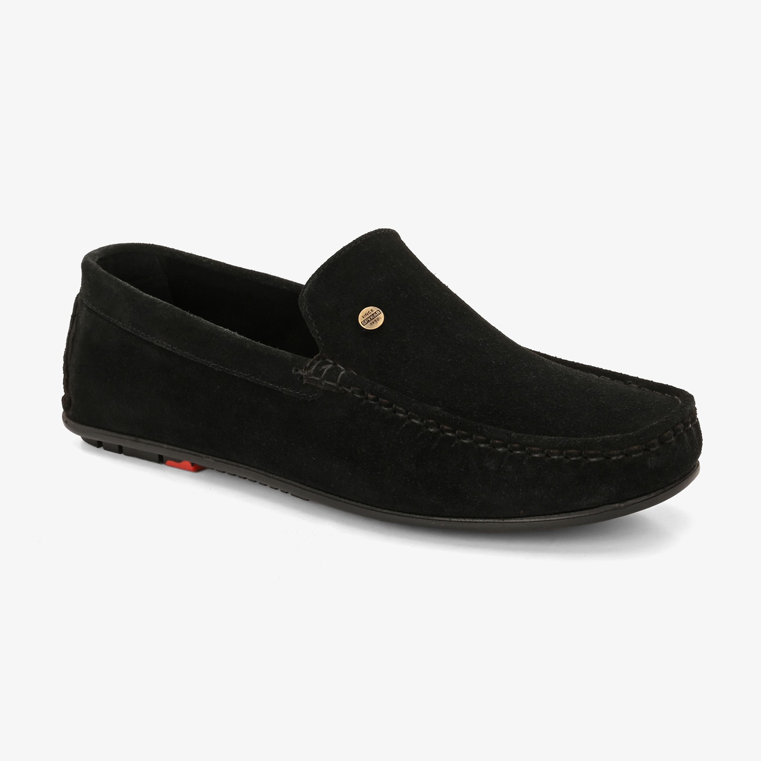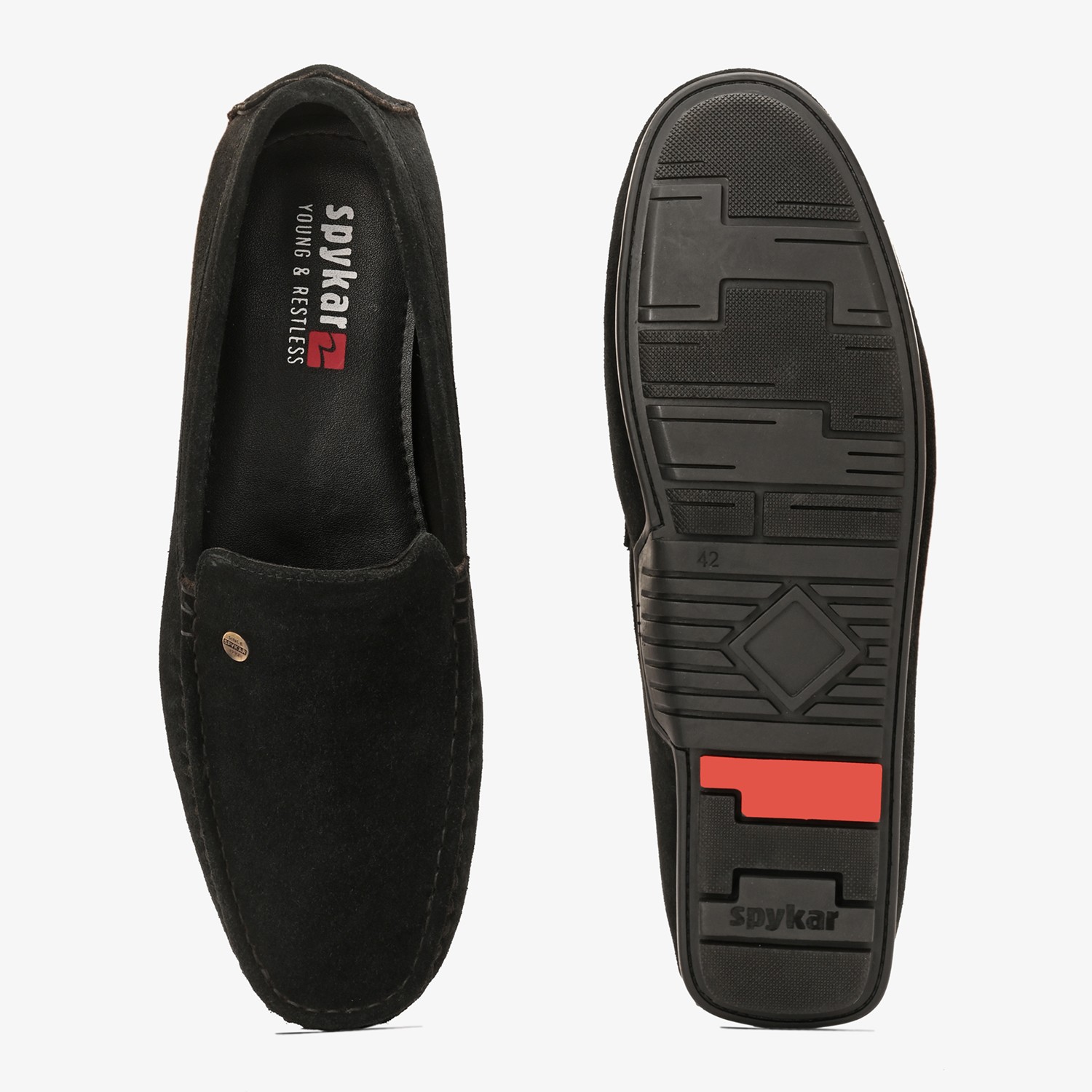 | Step into timeless elegance with these men's black slip-on loafers. Featuring a sleek suede-like finish and meticulous stitching, these loafers offer both style and comfort for any occasion. The flexible sole ensures ease of movement, while the slip-on design makes them quick to wear. Perfect for casual or formal settings, these black loafers are a versatile addition to your wardrobe. |