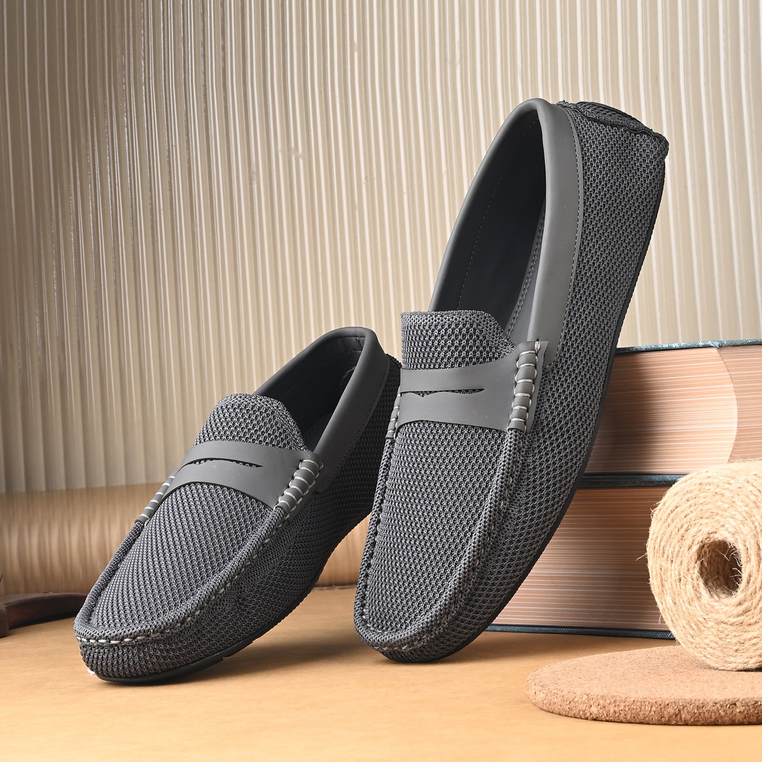 Add a touch of refined style to your everyday look with this pair of grey slip-on footwear. Designed with a breathable textured upper and sleek panel detailing, it blends comfort with modern elegance. The cushioned insole ensures lasting support, while the flexible sole offers easy movement throughout the day. Perfect for pairing with casual or smart-casual outfits.