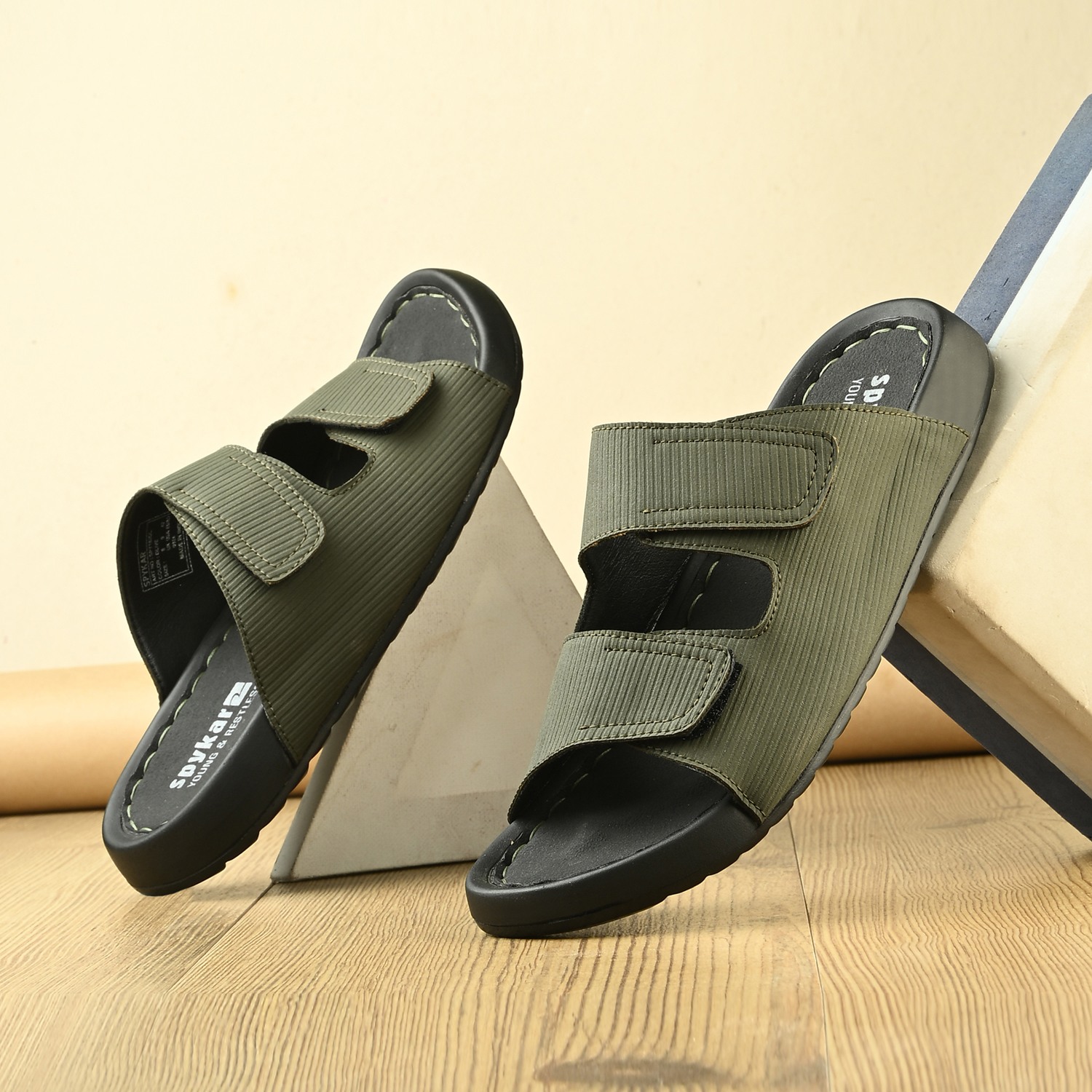 Stay cool and comfortable all day with this pair of casual olive sandals. Featuring a textured finish and double-strap closure, they offer a secure and adjustable fit. The cushioned insole provides superior comfort, while the lightweight sole ensures easy movement. Perfect for daily wear, relaxed outings, or warm-weather getaways.