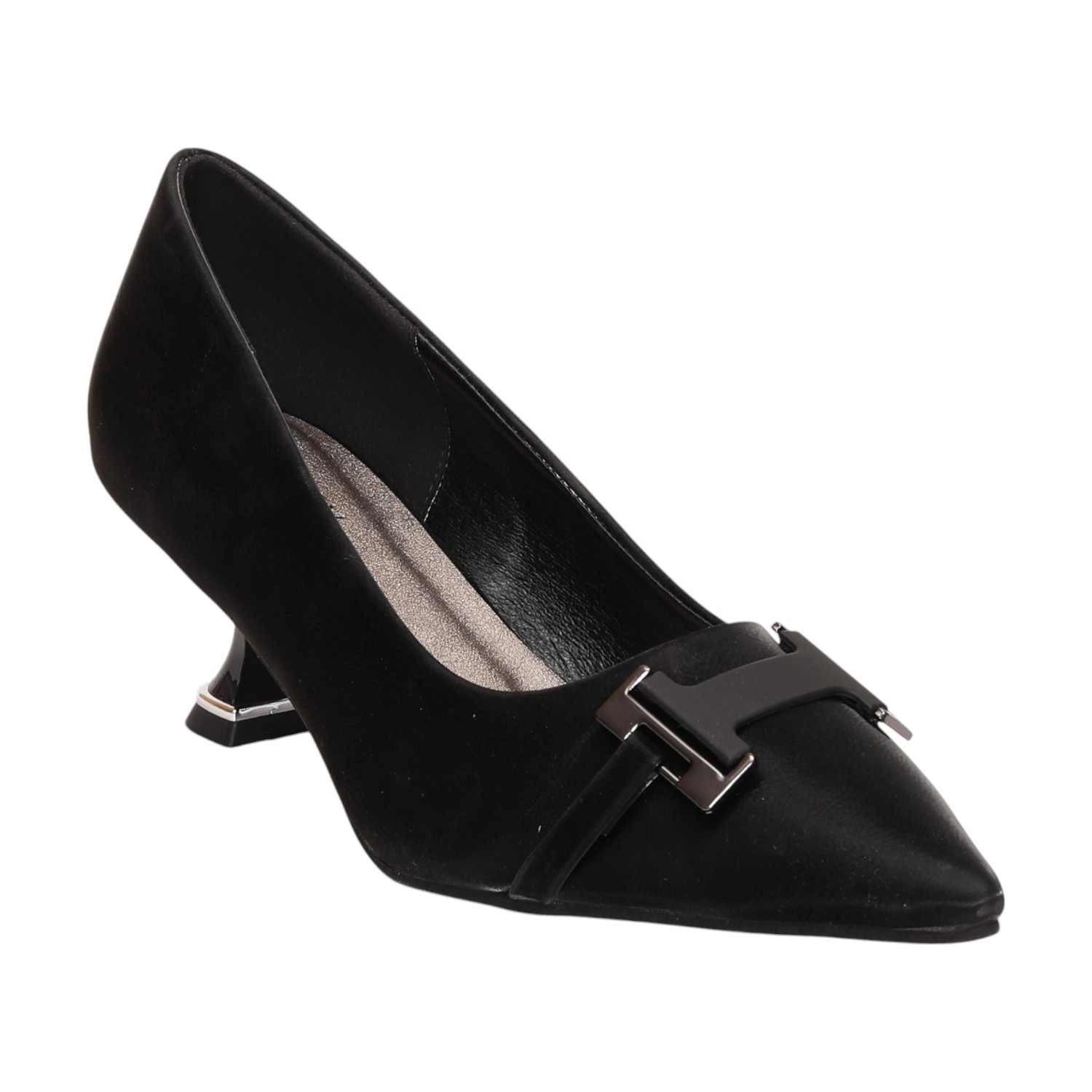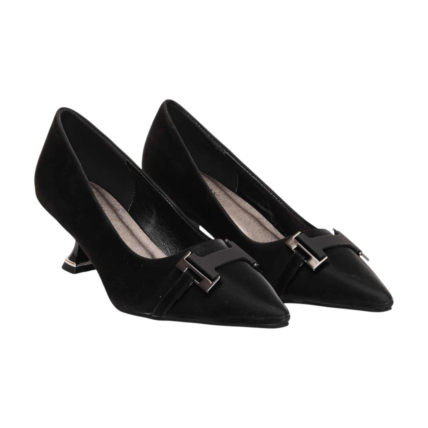 Elevate Your Style With These Sophisticated Kitten Heel Pumps. Featuring A Sleek Pointed-Toe Design And A Chic Metal Buckle Accent On The Upper, These Shoes Blend Elegance With Modern Fashion. The Low, Sculpted Heel With Metallic Detailing Provides A Subtle Yet Stylish Lift, Ensuring Comfort For All-Day Wear.