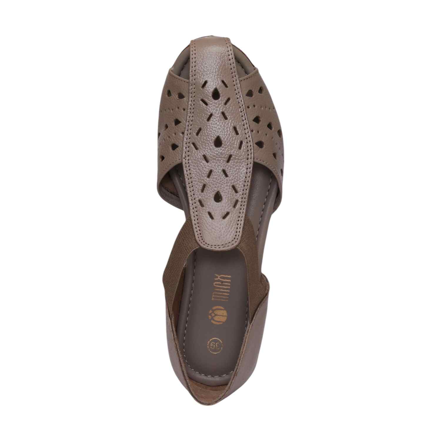 Infuse your look with natural elegance and practical comfort with these chikoo peep-toe cutout flats. Their distinctive cutout design and supportive flat silhouette make them an ideal choice for casual outings or adding a refined touch to your warm-weather attire, ensuring both flair and all-day ease.