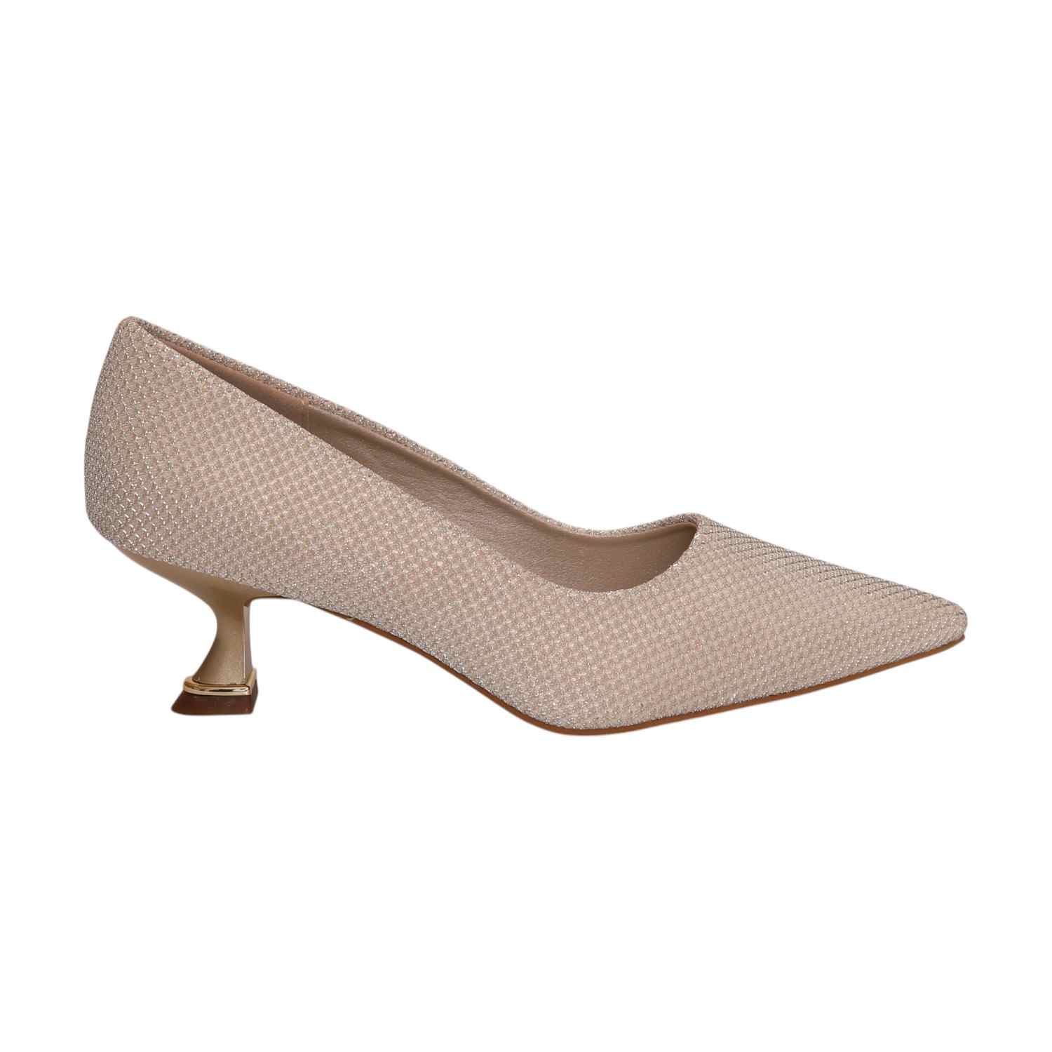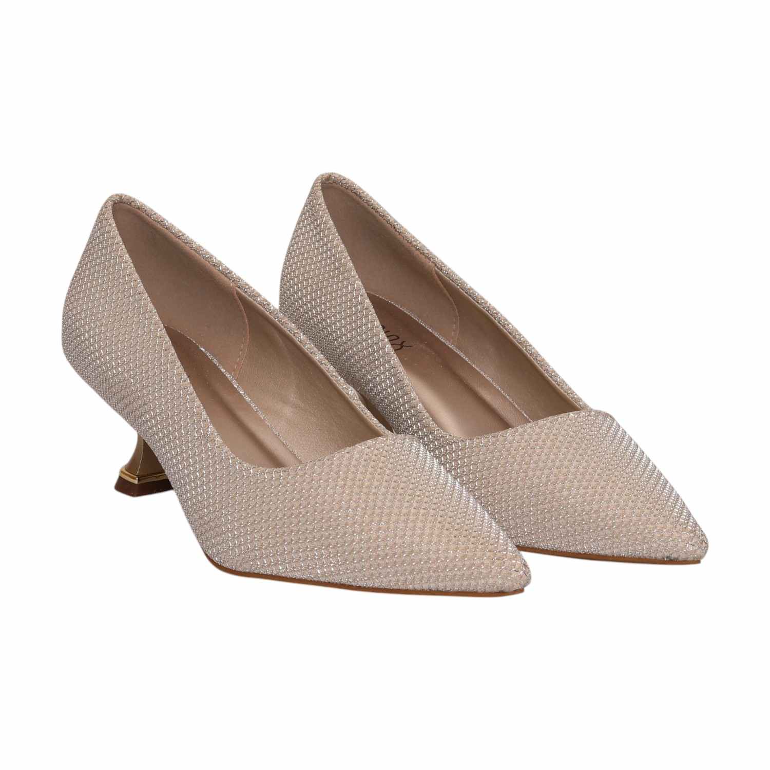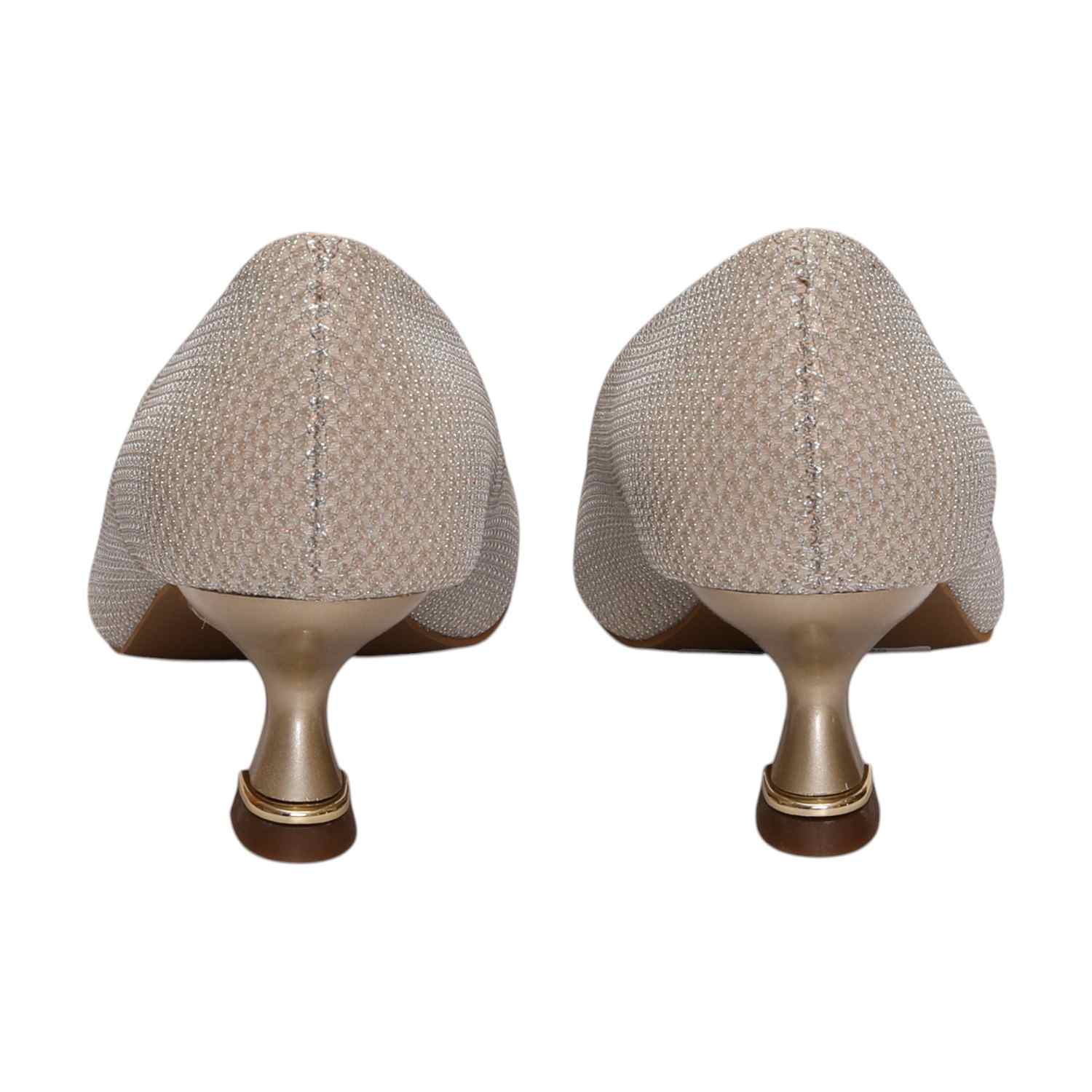 Add A Touch Of Elegance To Your Wardrobe With These Stunning Glitter Kitten Heel Pumps. Designed With A Shimmering Textured Finish And A Sleek Pointed Toe, These Heels Offer Both Sophistication And Comfort. The Unique Kitten Heel With Gold-Tone Detailing Enhances The Overall Chic Look, Making Them Perfect For Evening Parties, Formal Events, Or Special Occasions.