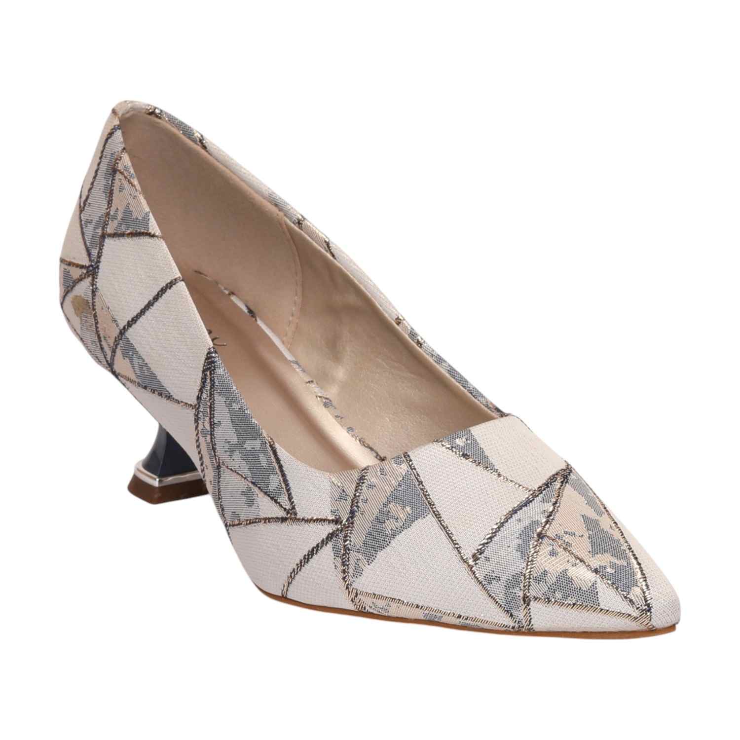 Add A Touch Of Sophistication To Your Wardrobe With These Stylish Pointed-Toe Kitten Heel Pumps. Featuring A Unique Geometric Pattern These Shoes Effortlessly Blend Modern Design With Classic Elegance. The Structured Yet Comfortable Fit, Along With The Low Sculpted Heel And Metallic Detailing, Makes Them Perfect For Both Casual And Formal Occasions. Elevate Your Outfit With These Versatile Statement Heels.