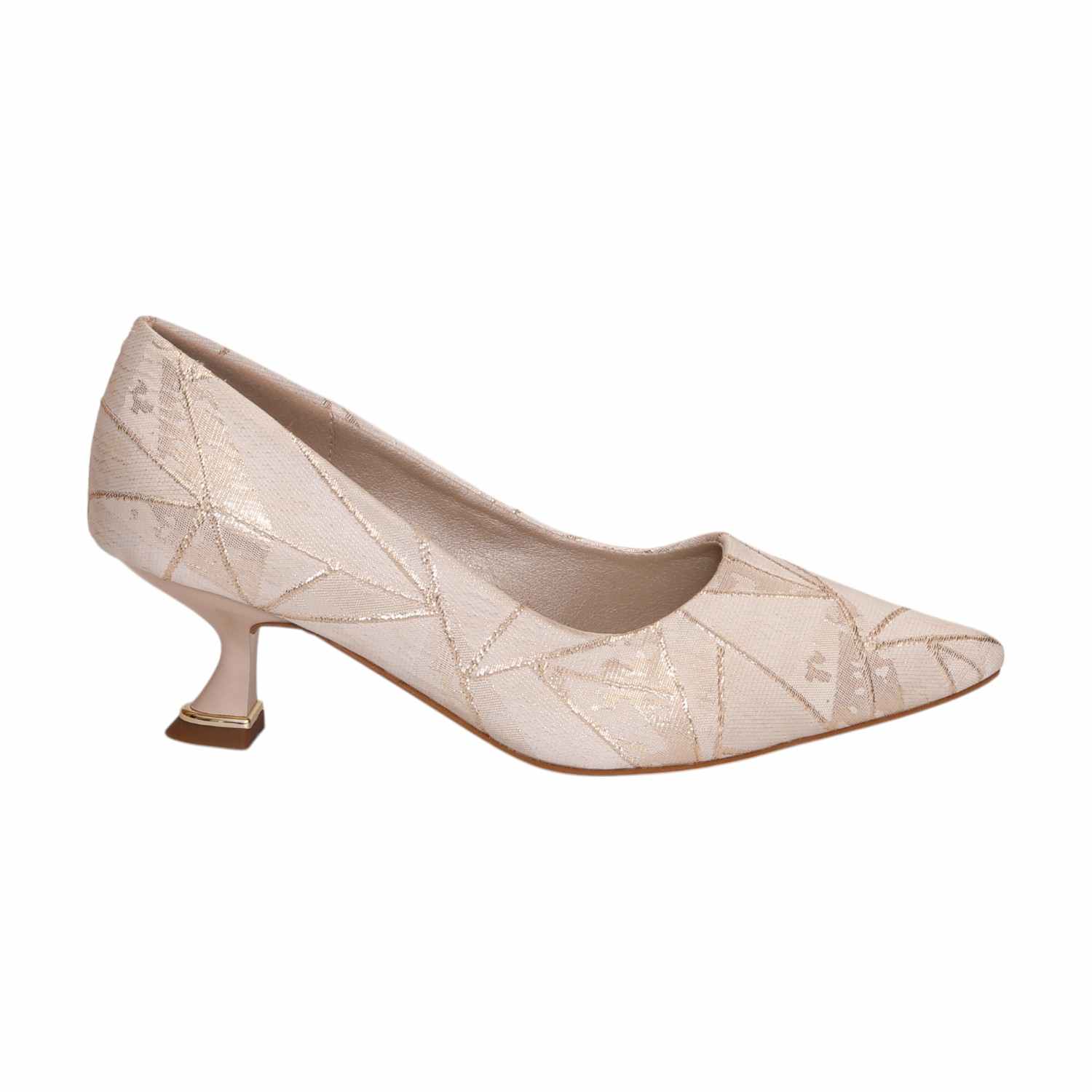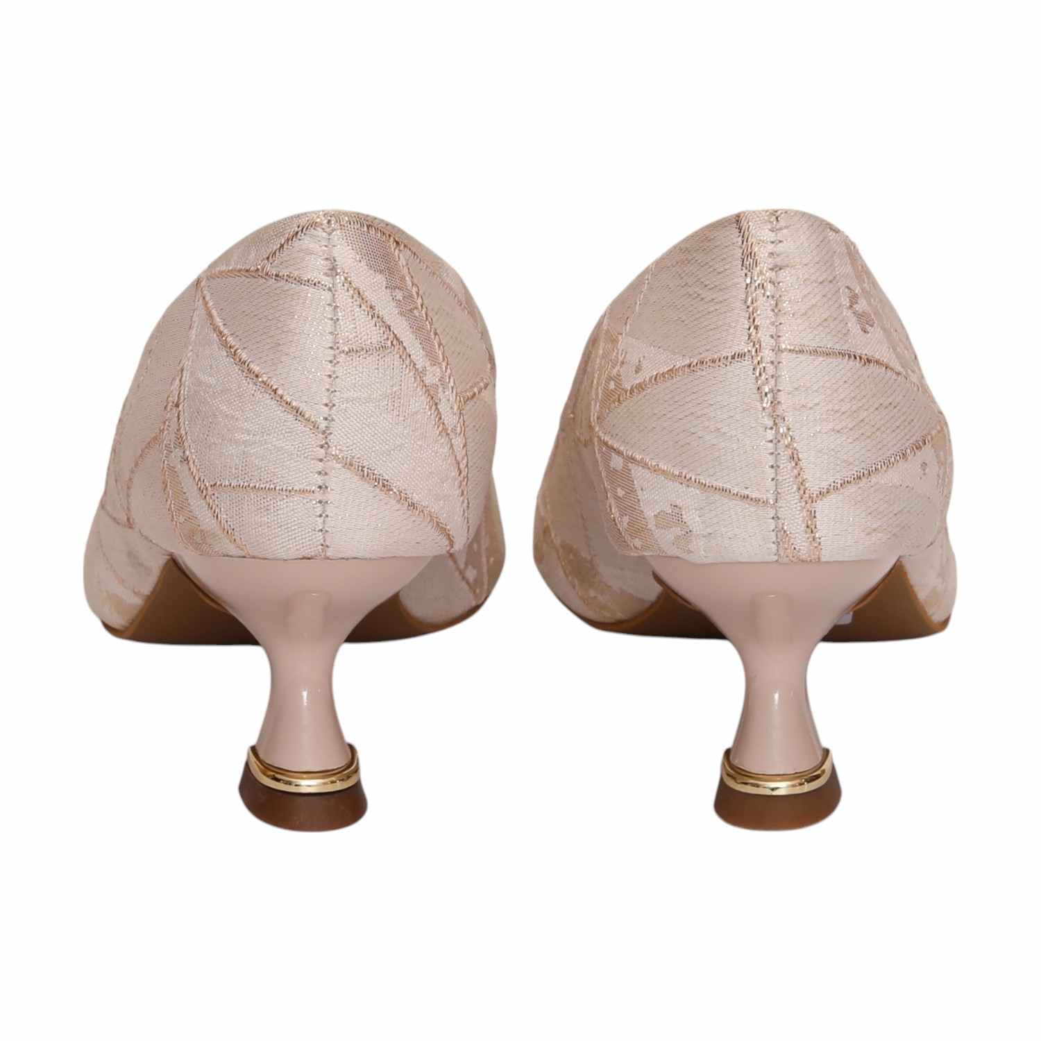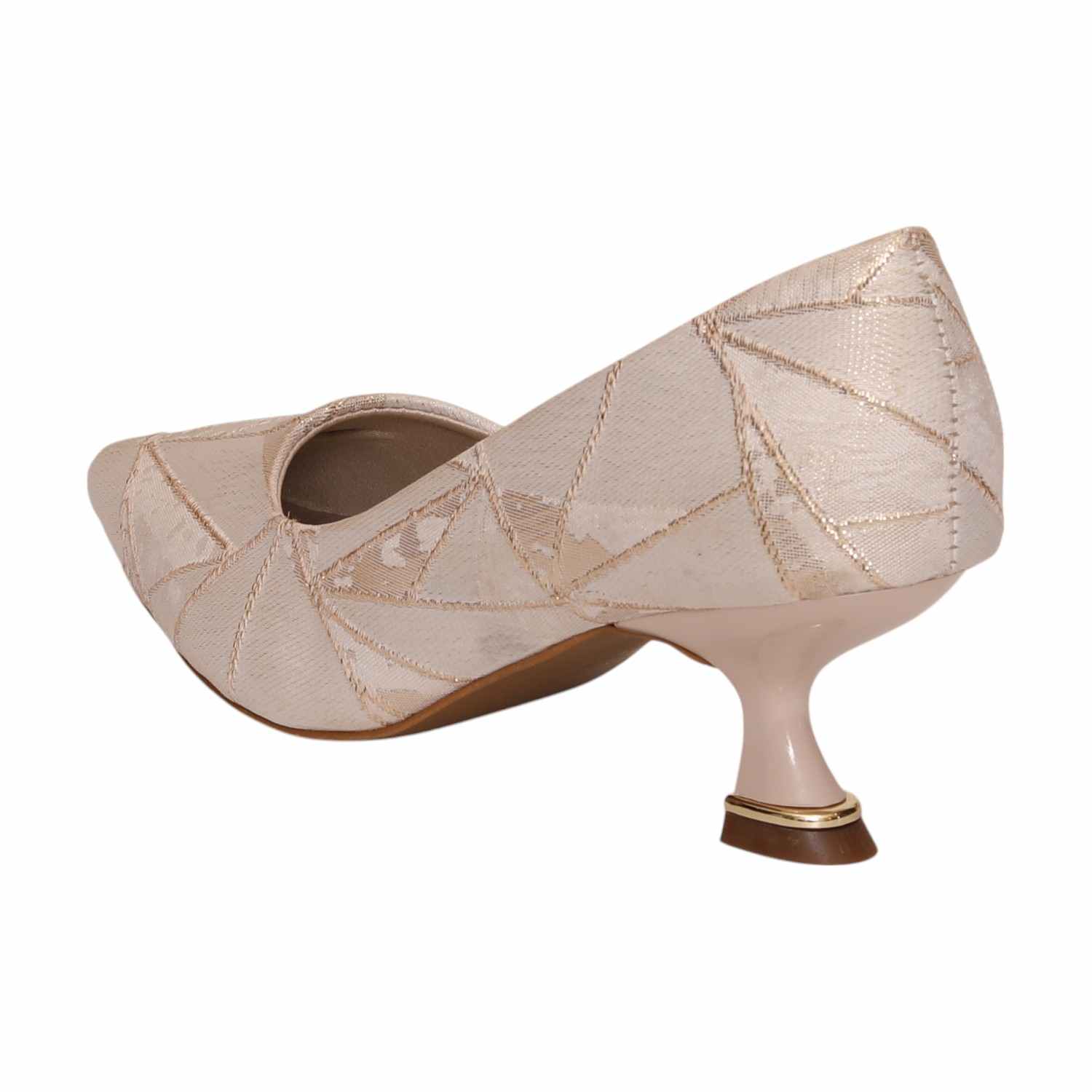 Add A Touch Of Sophistication To Your Wardrobe With These Stylish Pointed-Toe Kitten Heel Pumps. Featuring A Unique Geometric Pattern These Shoes Effortlessly Blend Modern Design With Classic Elegance. The Structured Yet Comfortable Fit, Along With The Low Sculpted Heel And Metallic Detailing, Makes Them Perfect For Both Casual And Formal Occasions. Elevate Your Outfit With These Versatile Statement Heels.