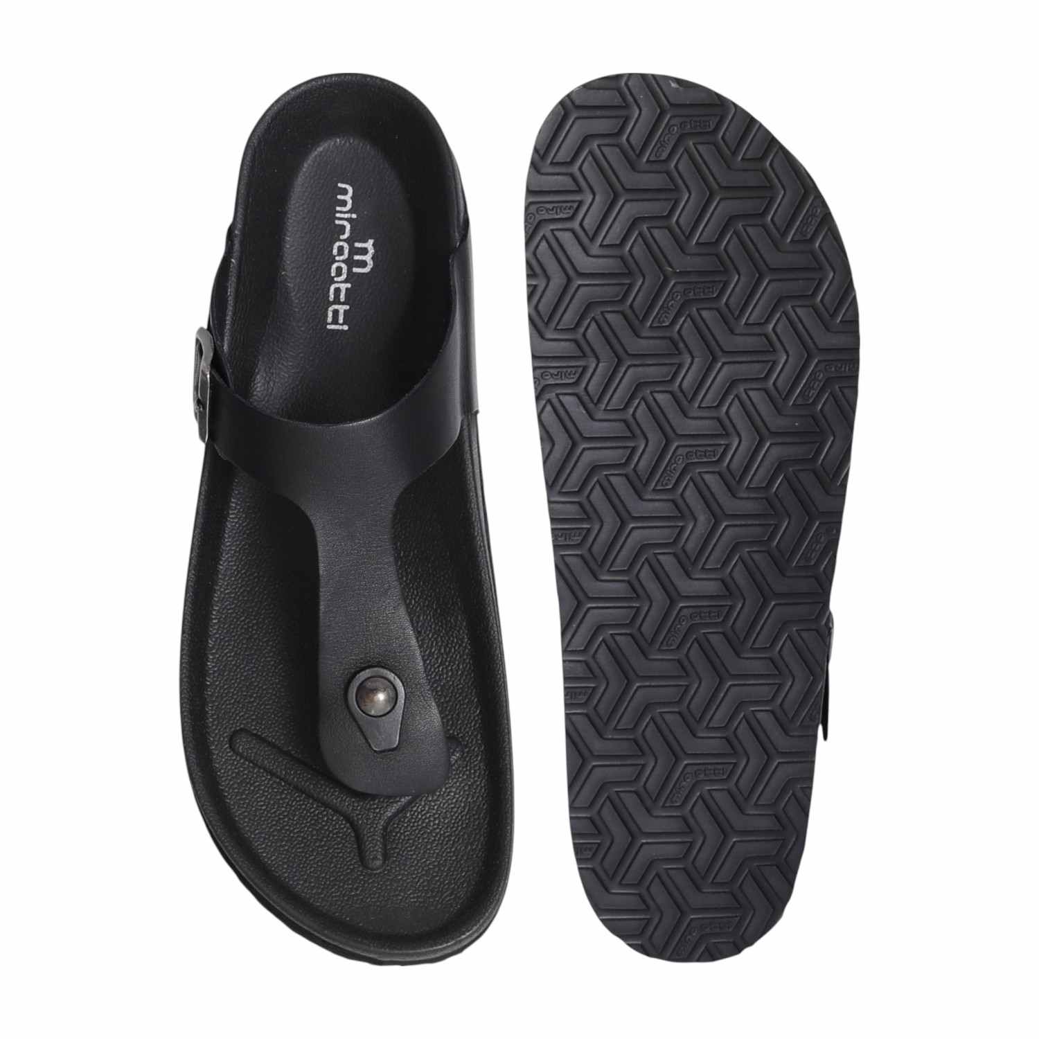 The MIRAATTI Men Black Comfort Flip Flops are the perfect combination of style, comfort, and practicality. Designed for everyday casual wear, these flip-flops are ideal for relaxed outings, beach days, or lounging at home.A versatile and stylish design that can easily be paired with a variety of casual outfits.These flip-flops are designed for both comfort and style, offering a relaxed and practical footwear option for everyday use.