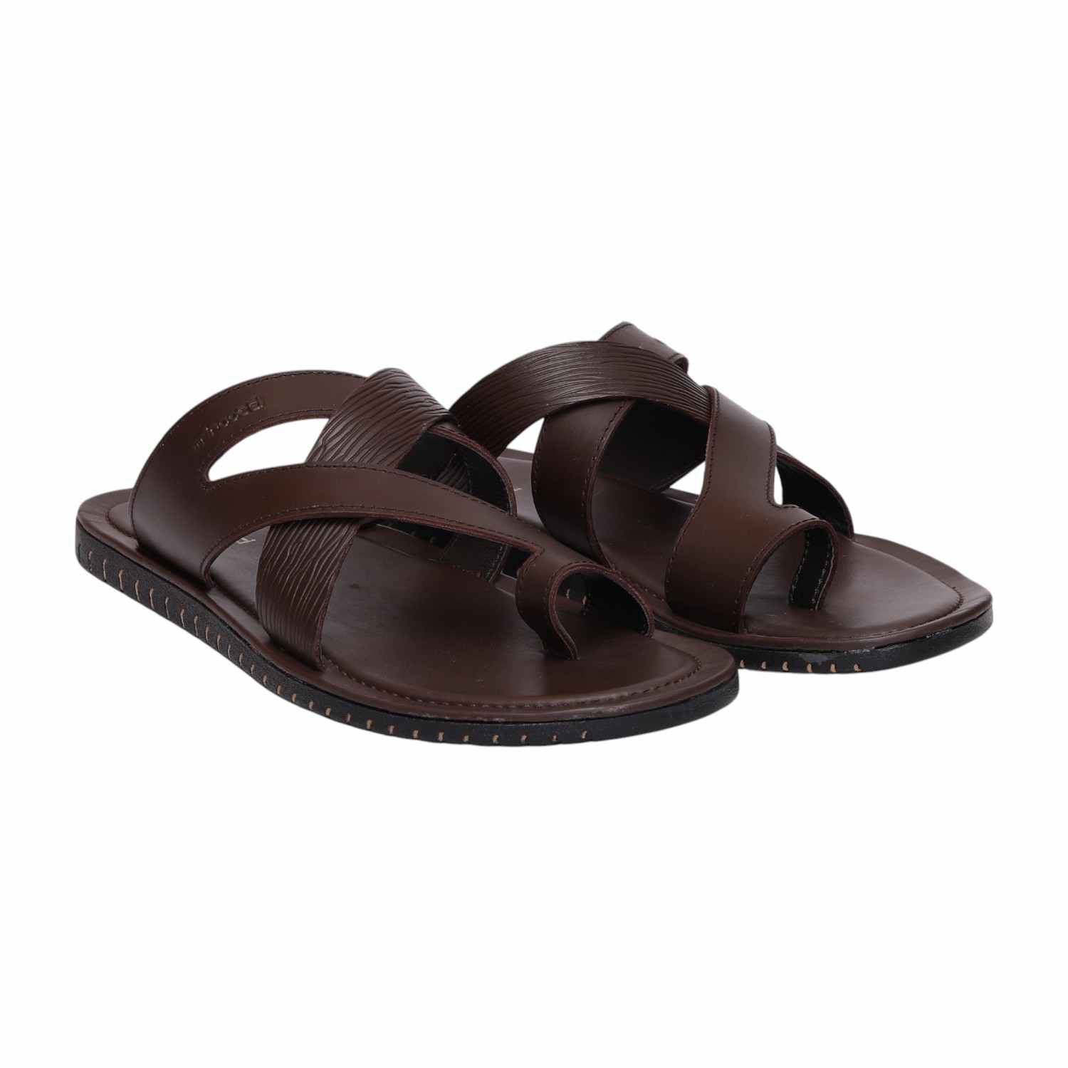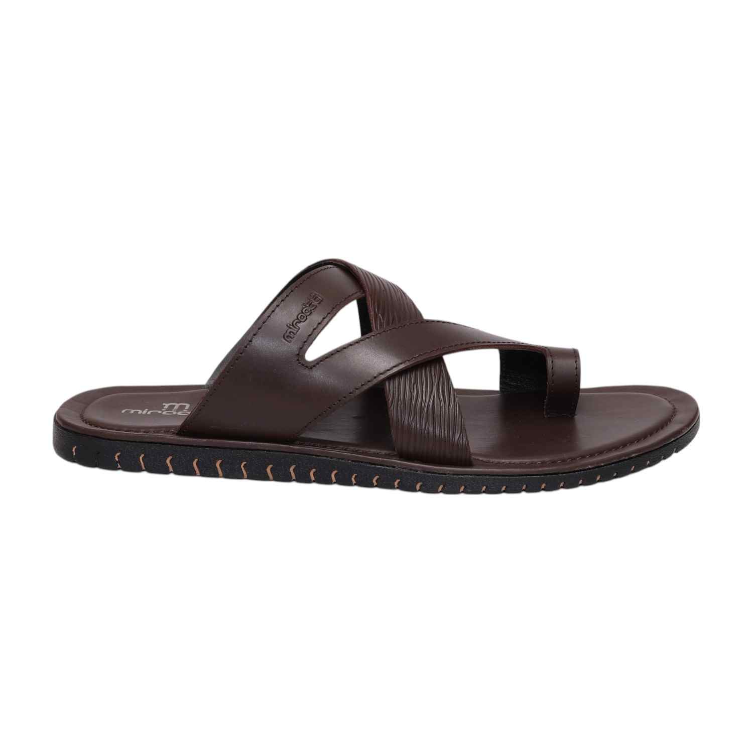 Men Brown Toe-Ring Cross-Strap Sandals