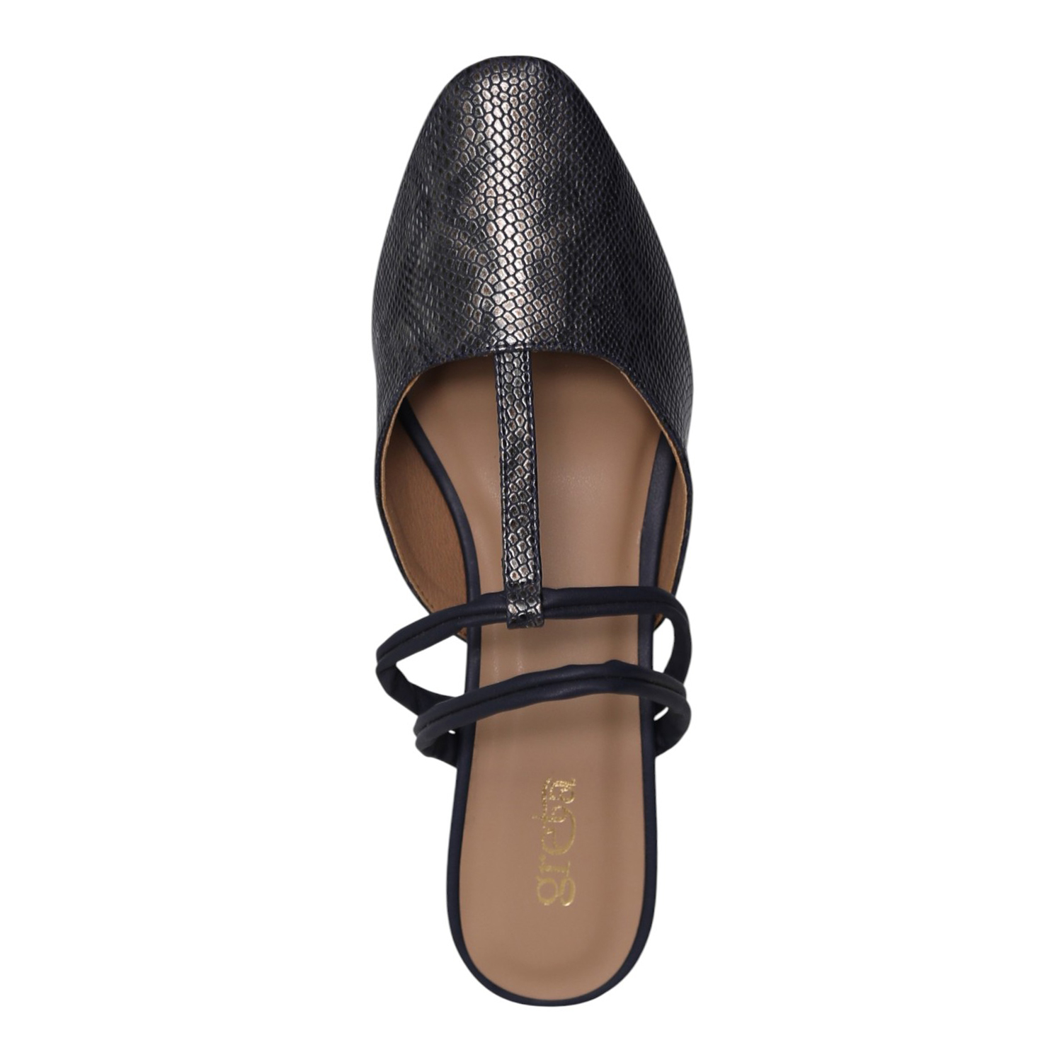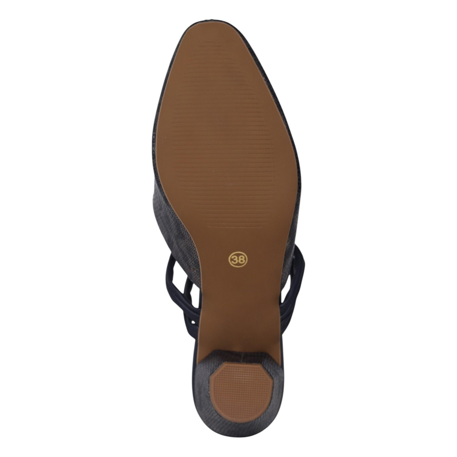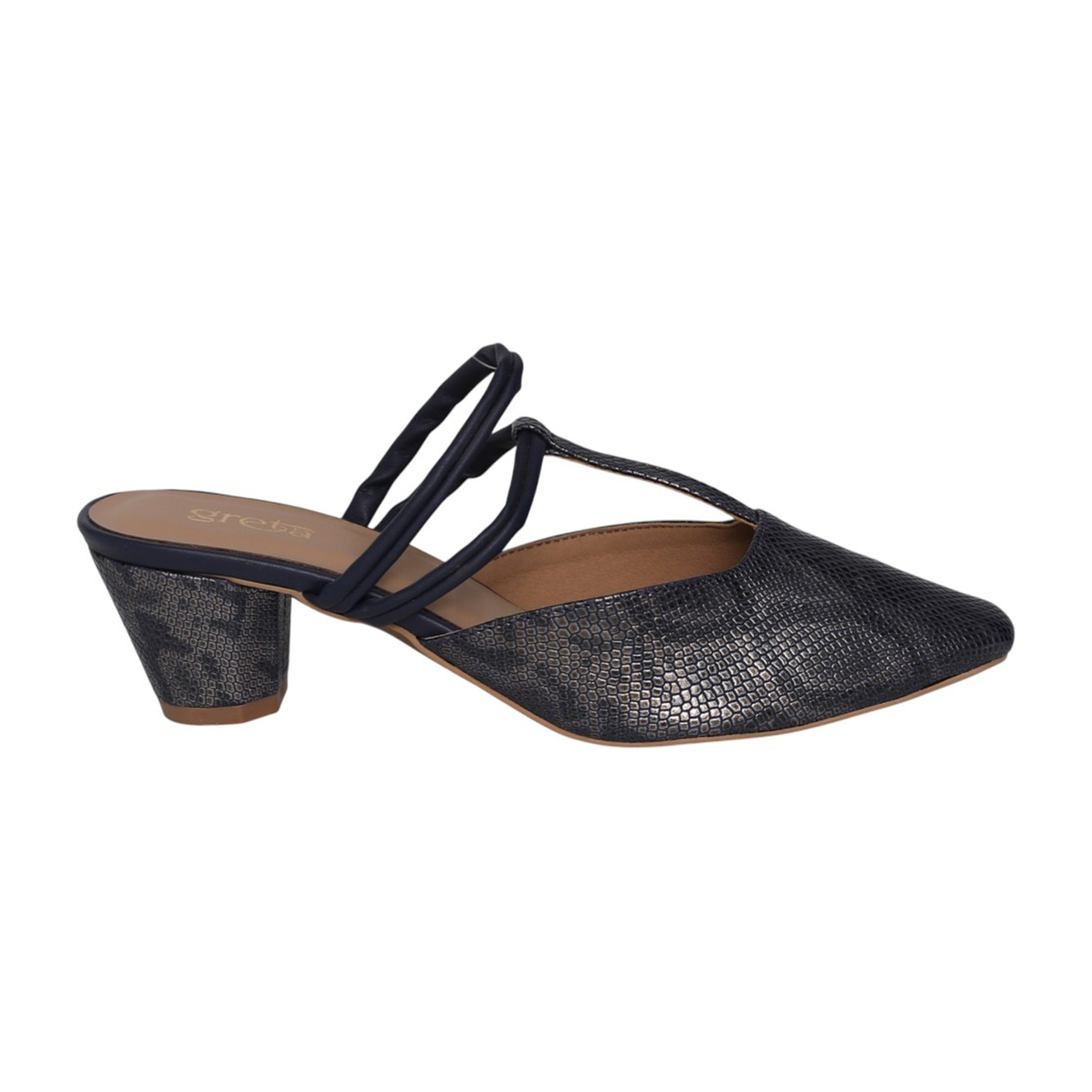 Step into elegance with these navy blue mules, designed for the modern woman who values both style and stability. Featuring a sophisticated faux-snakeskin texture and a unique multi-strap design, these heels offer a contemporary twist on a classic silhouette. Perfect for transitioning from the office to an evening dinner, they provide a refined finish to any outfit.
