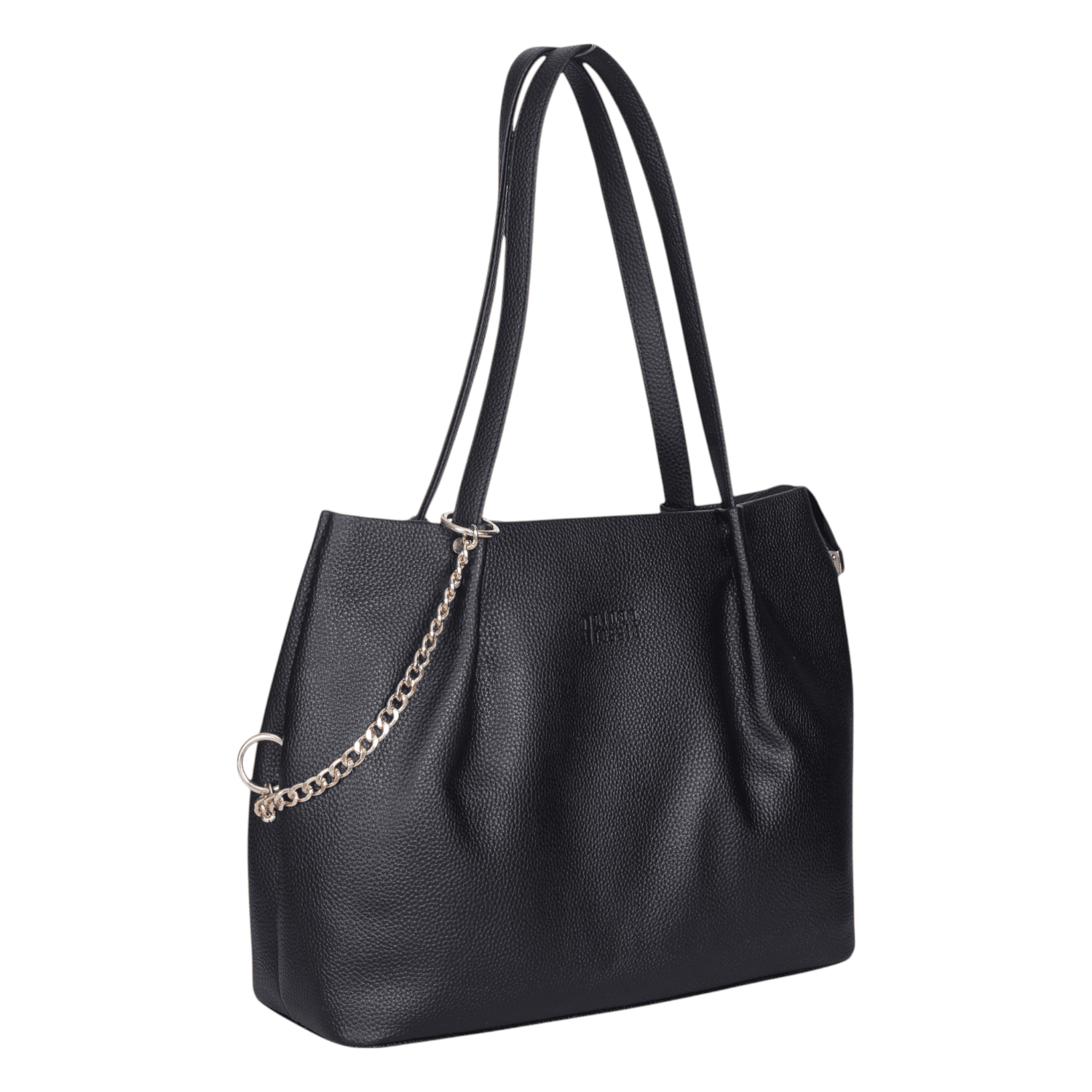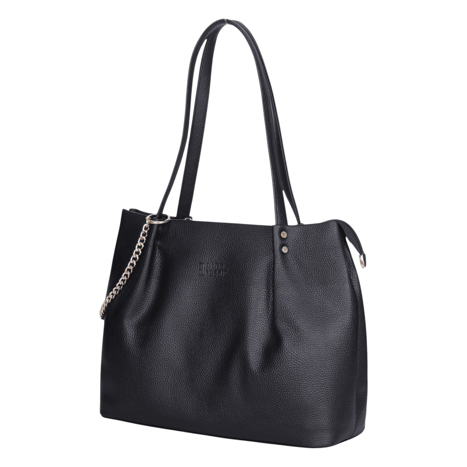 Embrace timeless style and functionality with this classic black shoulder tote, designed to be your go-to bag for any occasion. Crafted from supple faux leather, its rich hue and elegant design make it a versatile accessory that seamlessly complements both casual and professional attire