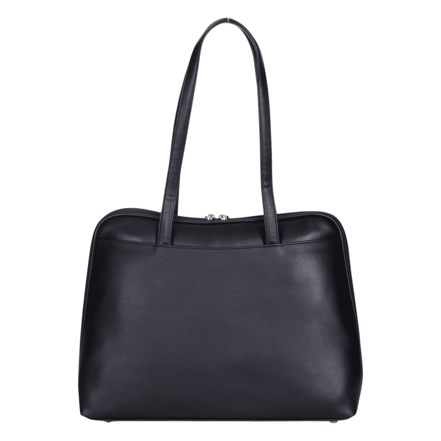 Command attention with this classic and highly functional black structured tote bag, designed for the sophisticated professional and organized individual. Crafted from smooth, high-quality faux leather, its clean lines and robust construction make it the epitome of polished style for the office and beyond.