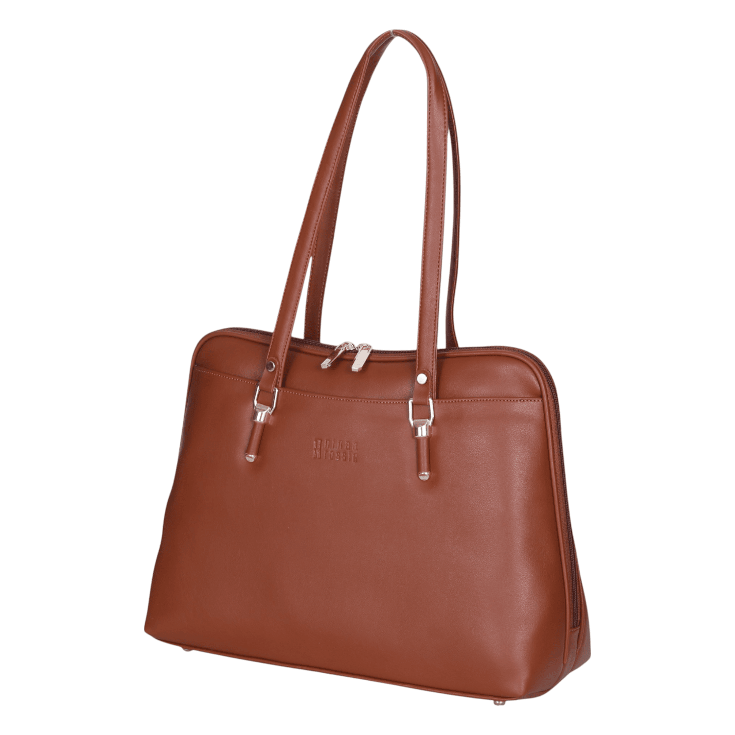 Command attention with this classic and highly functional tan coloured structured tote bag, designed for the sophisticated professional and organized individual. Crafted from smooth, high-quality faux leather, its clean lines and robust construction make it the epitome of polished style for the office and beyond.