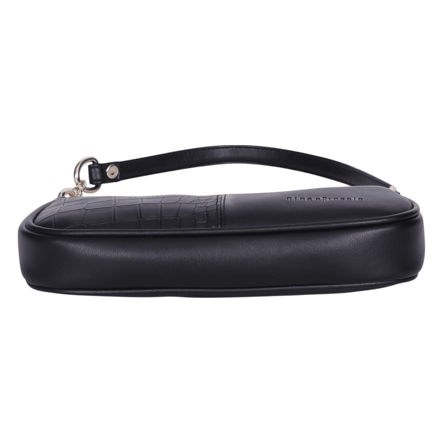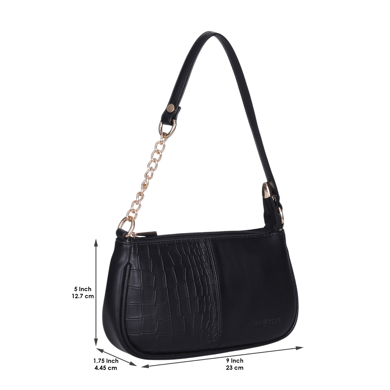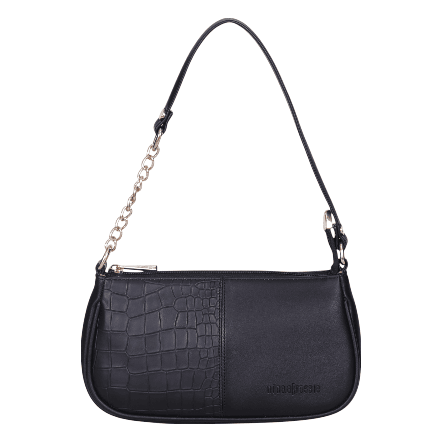 Elevate your style with this trendy and versatile black shoulder bag, a perfect blend of classic elegance and contemporary flair. Crafted from smooth faux leather with a stylish croc-embossed detail, this bag is designed for effortless everyday wear or a night out.