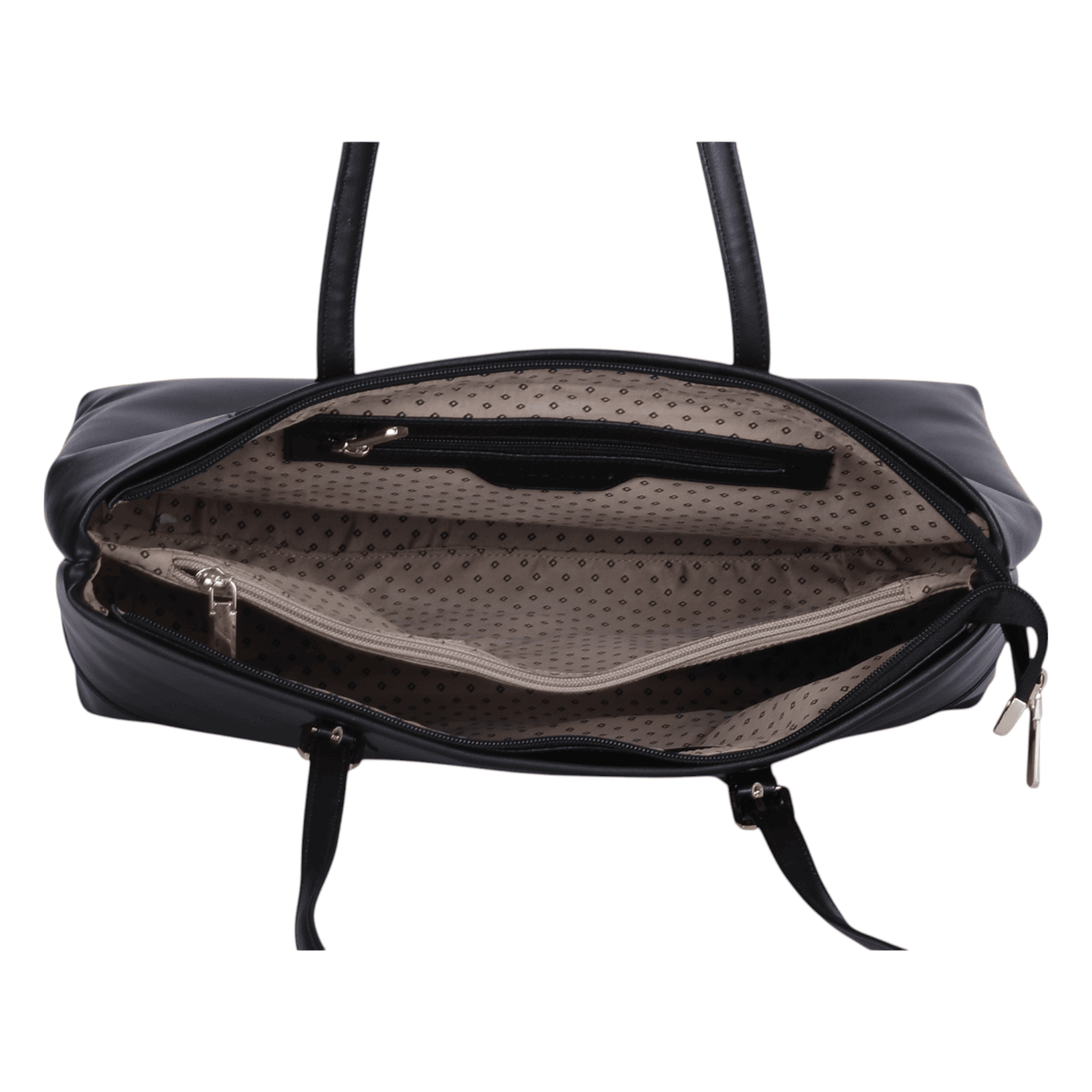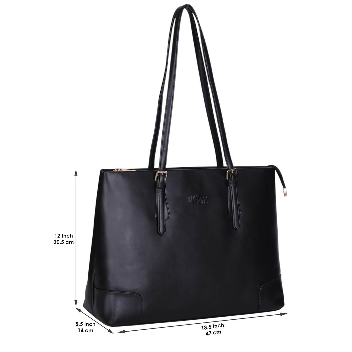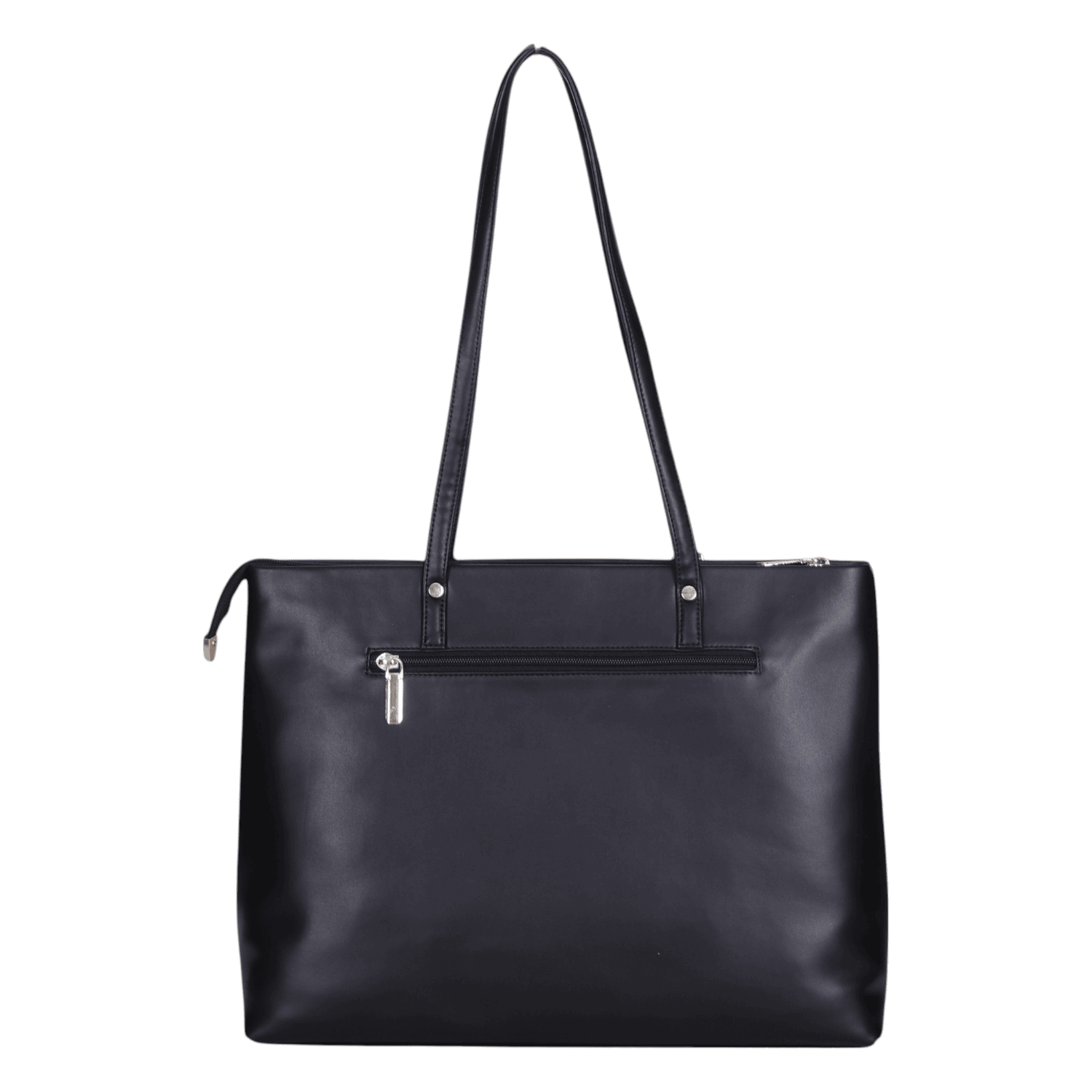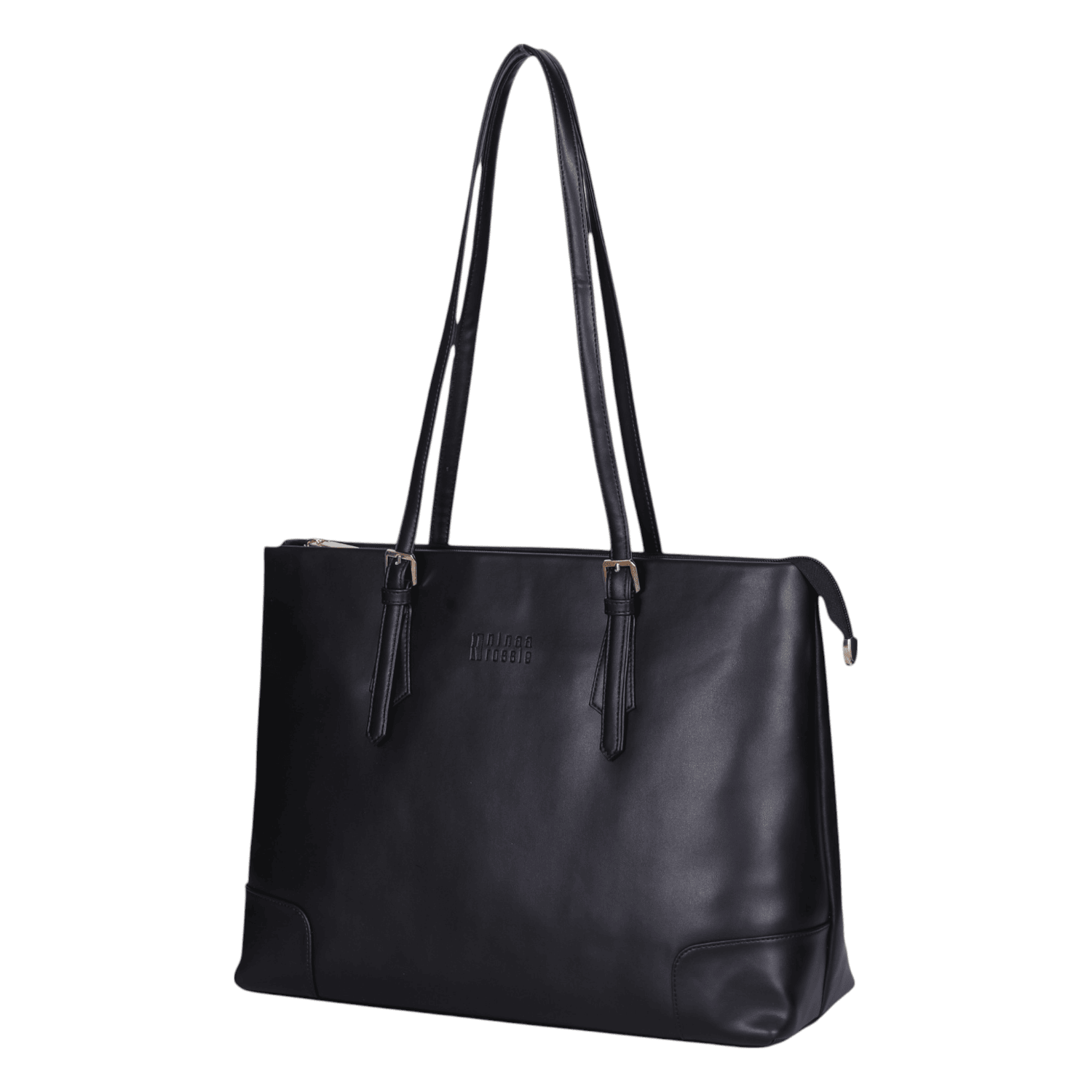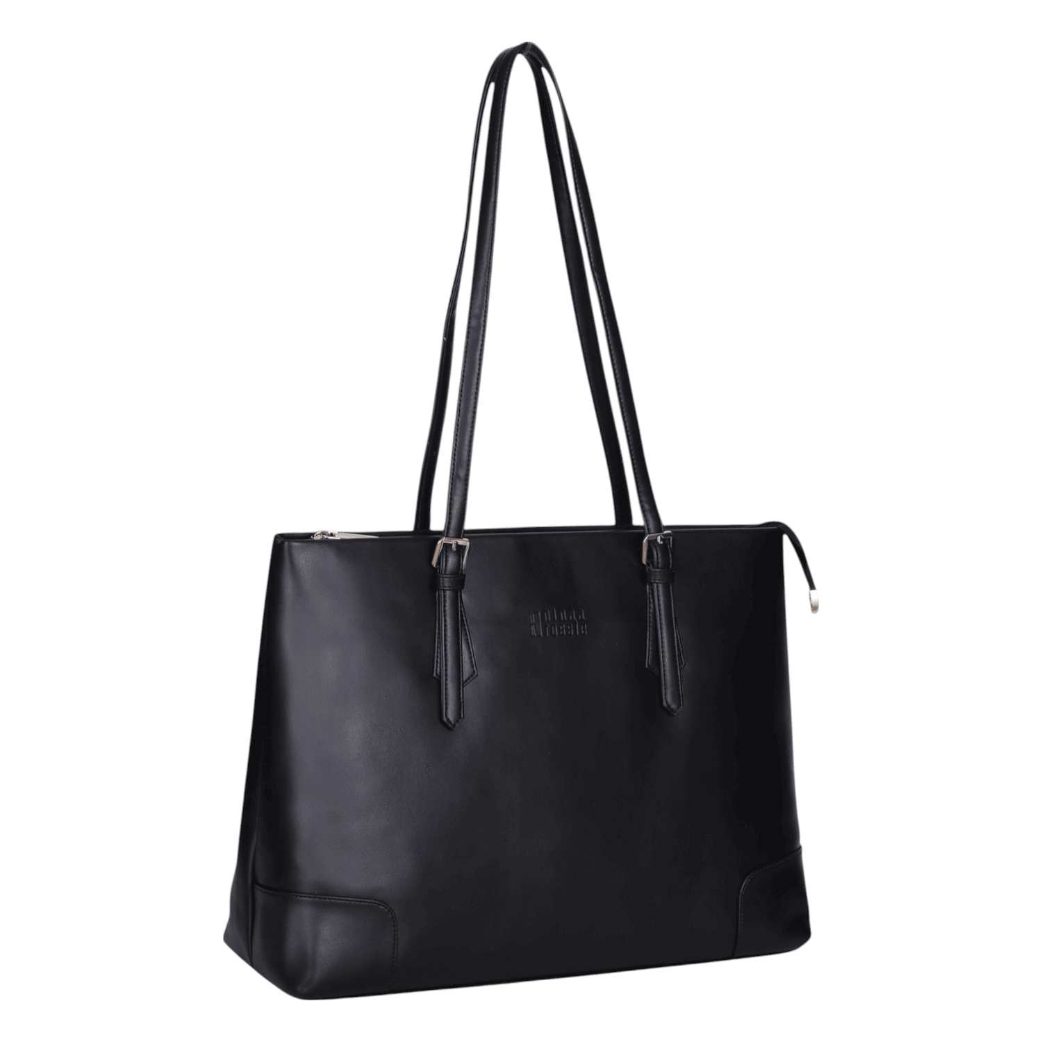 Elevate your professional and everyday carry with this sleek black shoulder tote, designed for the modern individual who values both minimalist style and superior organization. Crafted from smooth, high-quality faux leather, this bag offers a sophisticated look that seamlessly transitions from the boardroom to a casual outing.