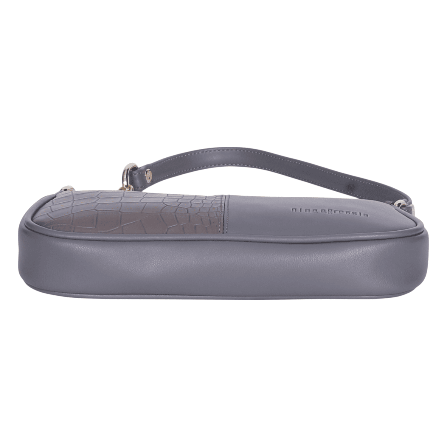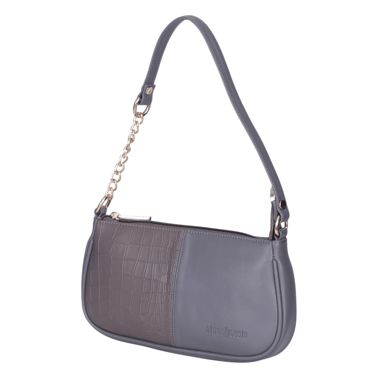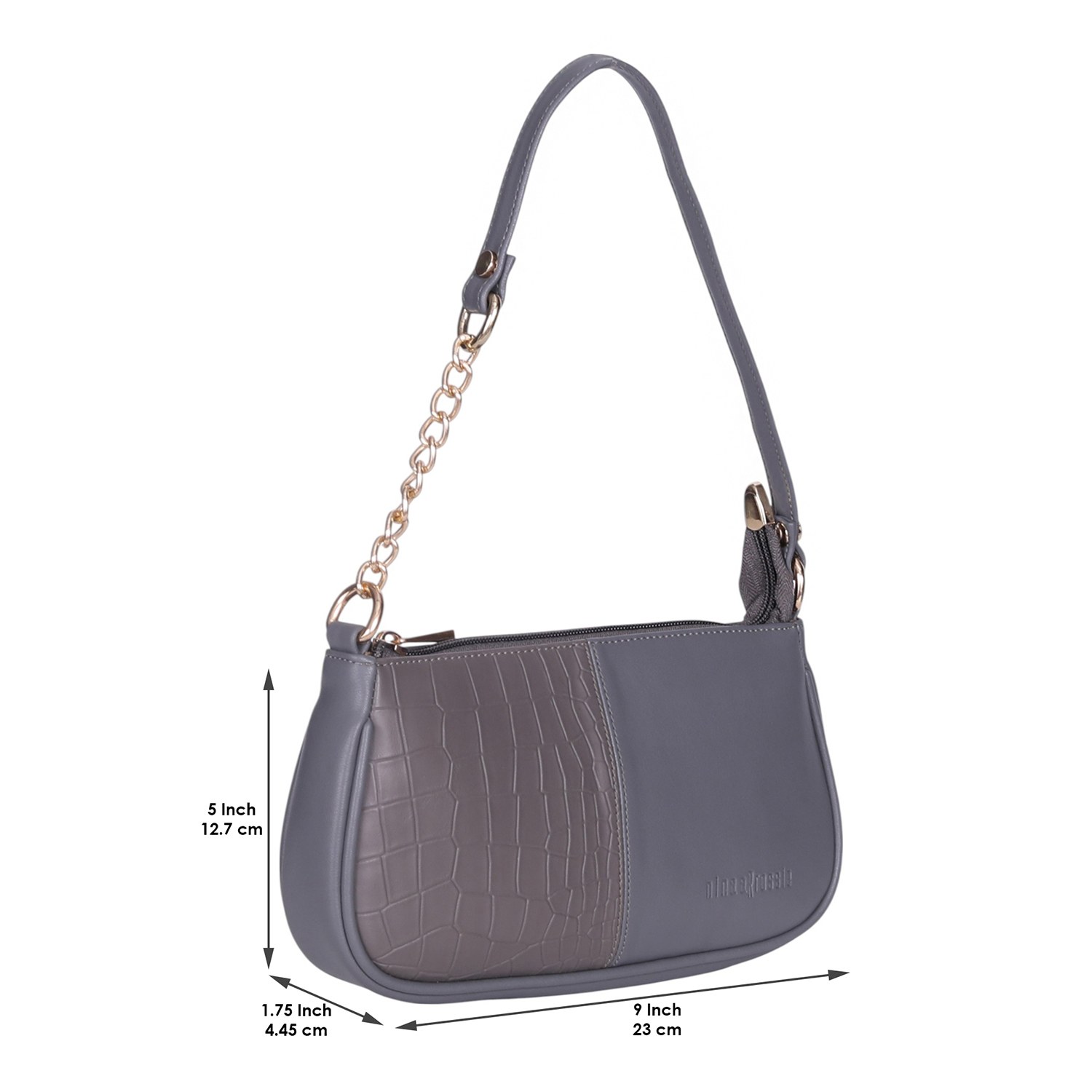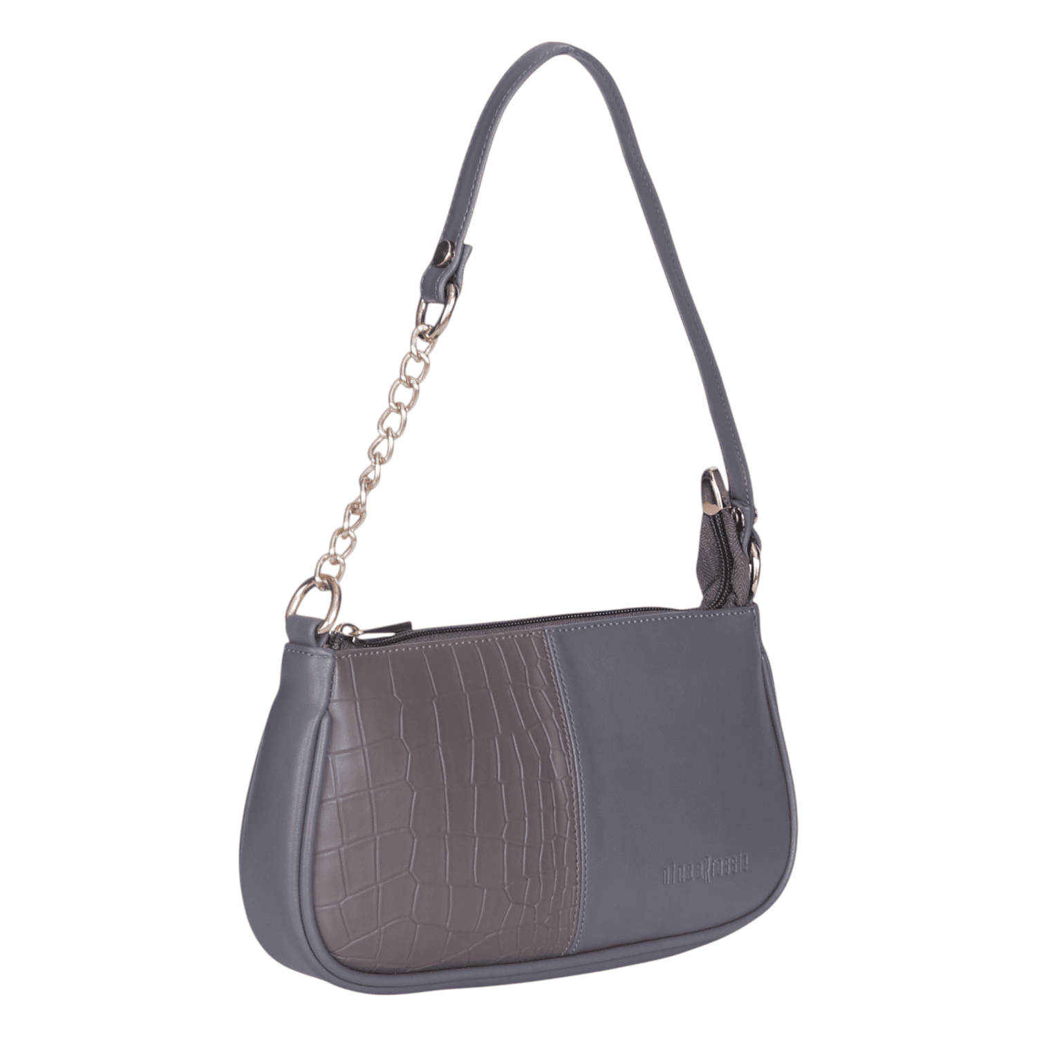 Elevate your style with this trendy and versatile grey shoulder bag, a perfect blend of classic elegance and contemporary flair. Crafted from smooth faux leather with a stylish croc-embossed detail, this bag is designed for effortless everyday wear or a night out.