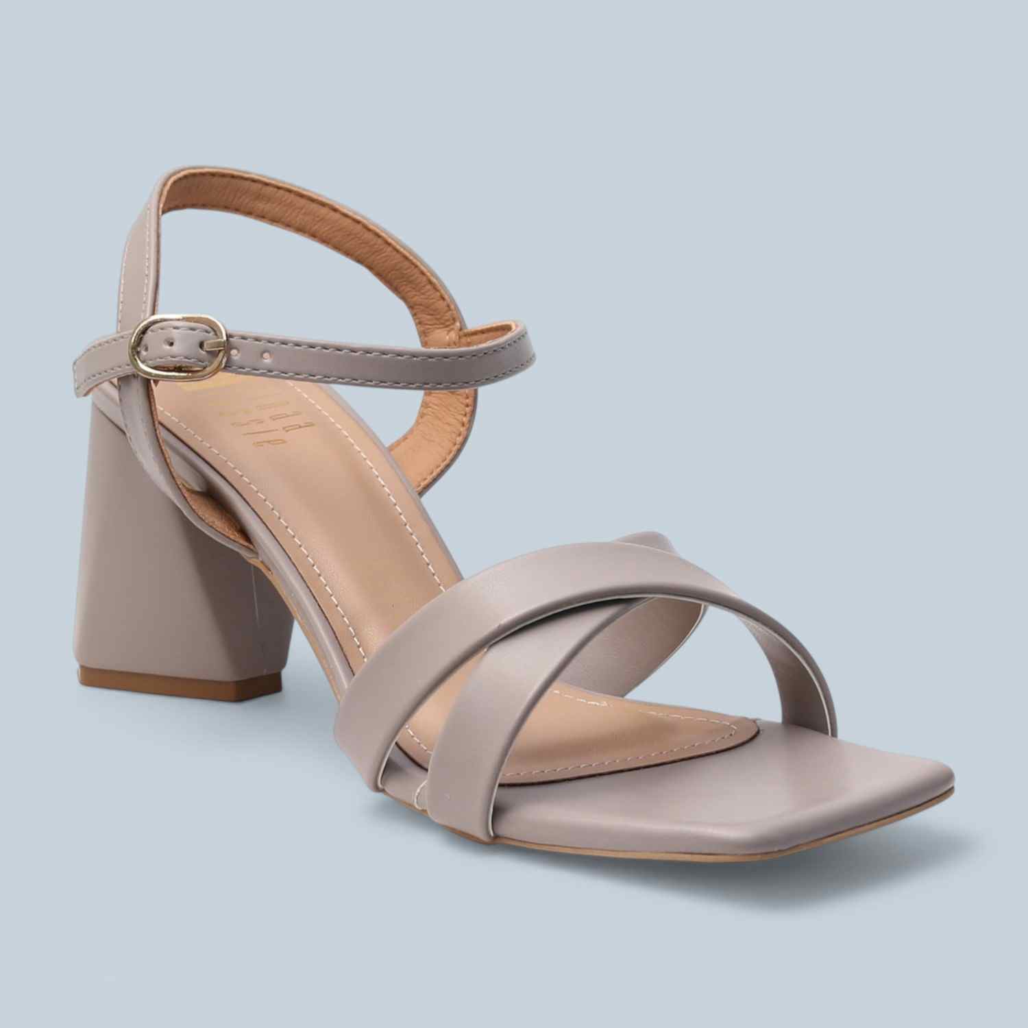Ninaa Rossie Women’s Stylish Cross-Strap Grey Block Heels