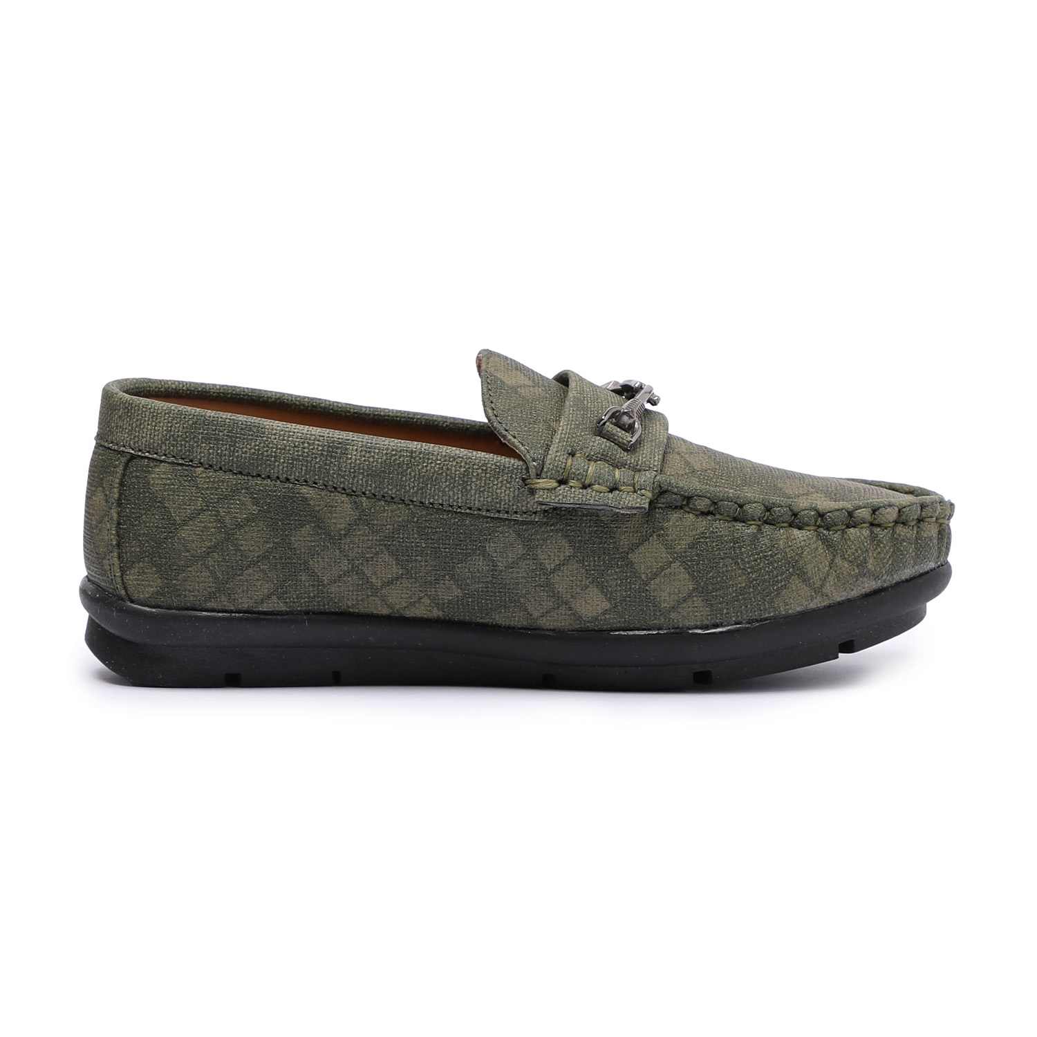 Olive Coloured Patterned Slip-Ons For Boys