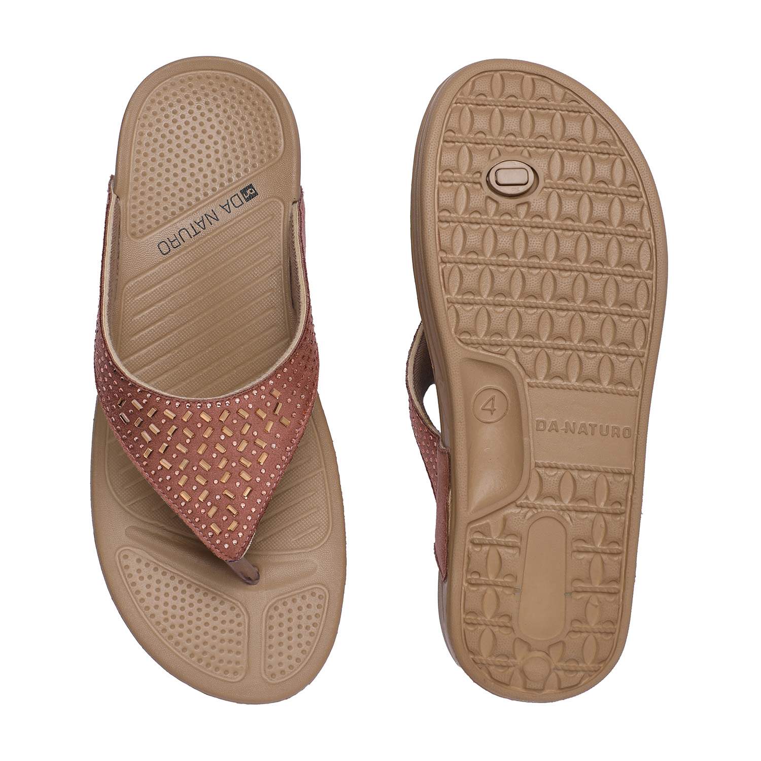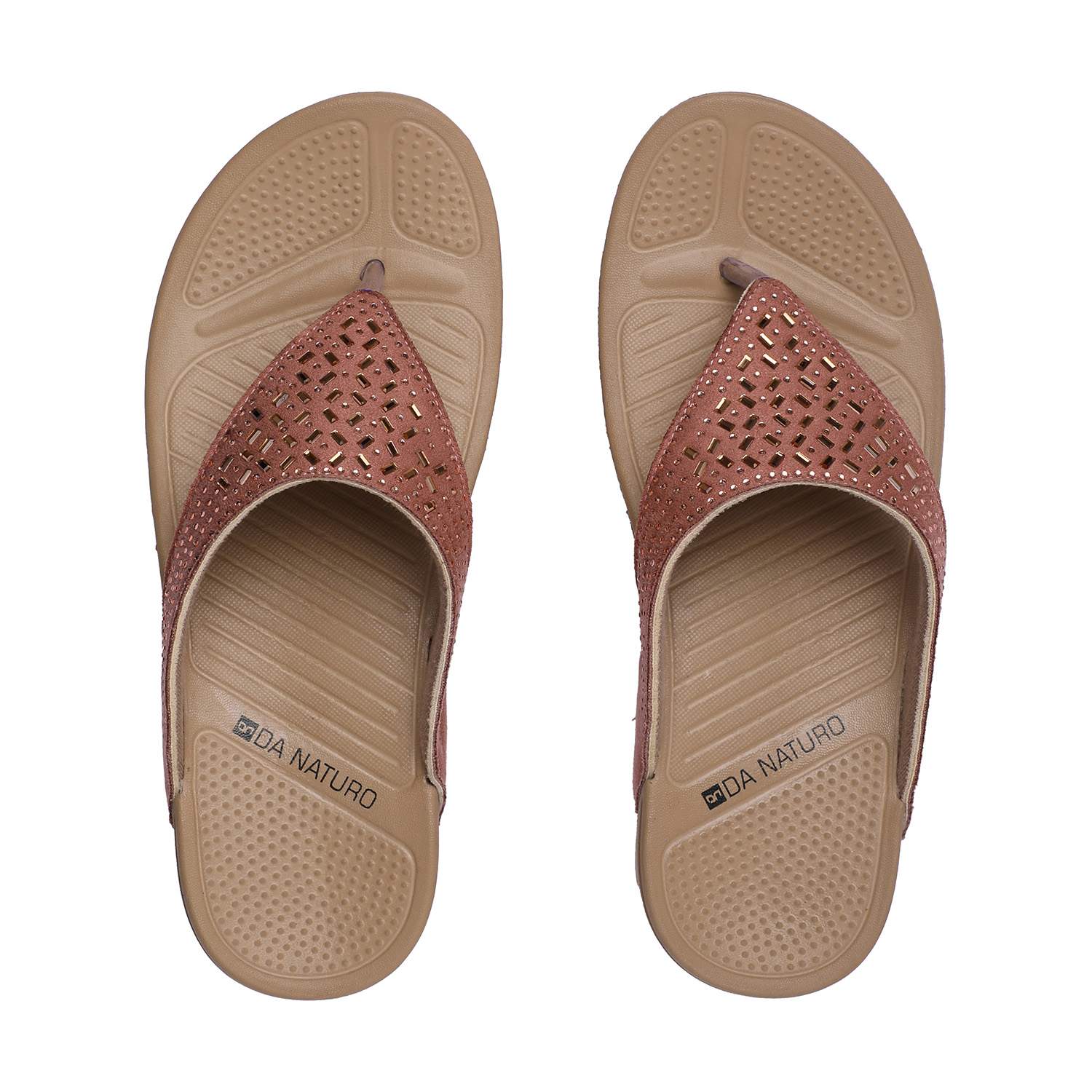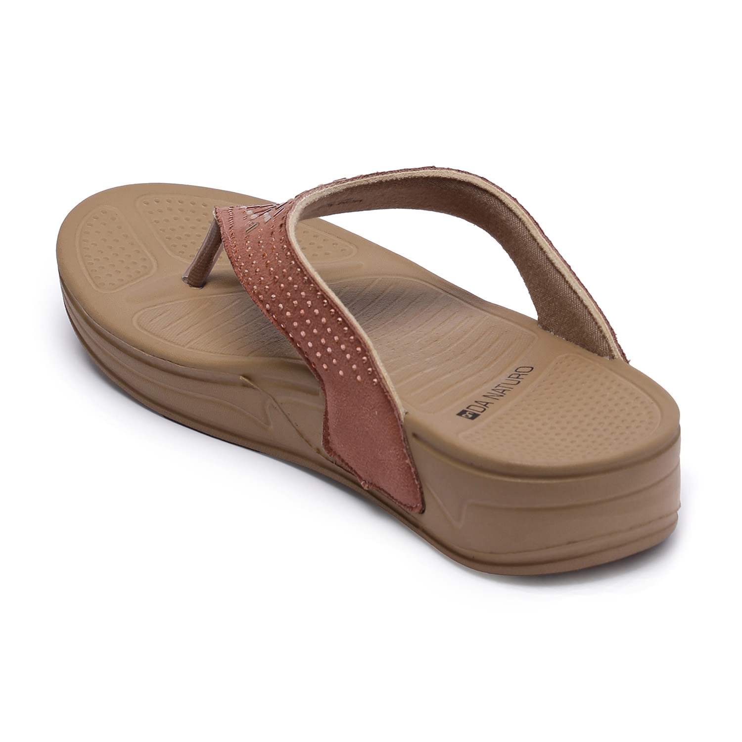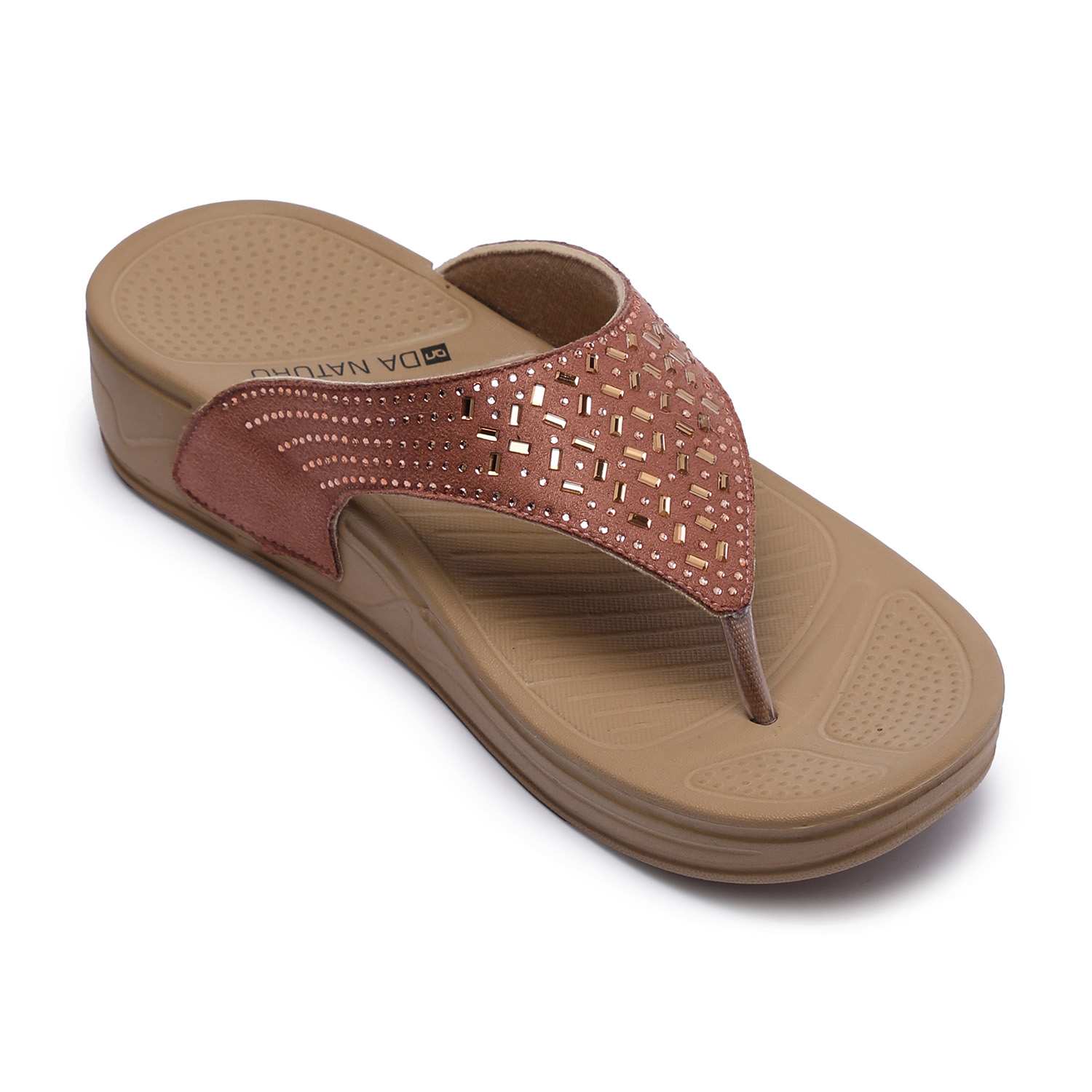 Elevate your everyday style with these chic peach flip-flops featuring a stylish cutwork design on the straps. Designed with a comfortable wedge sole and ergonomic footbed, these sandals offer both style and support. The upper strap is crafted with a subtle shimmer and geometric perforations, adding a touch of elegance to your casual ensemble.