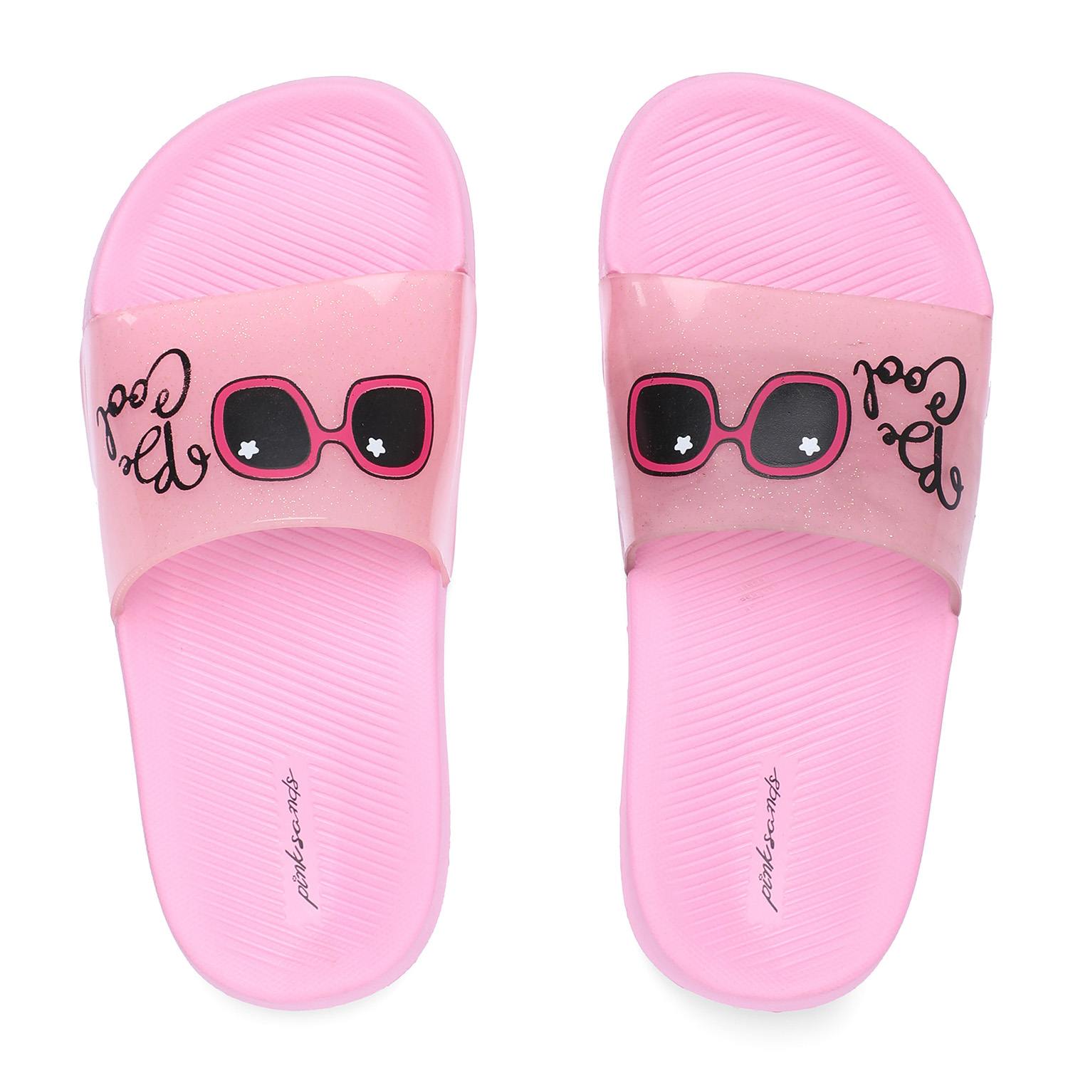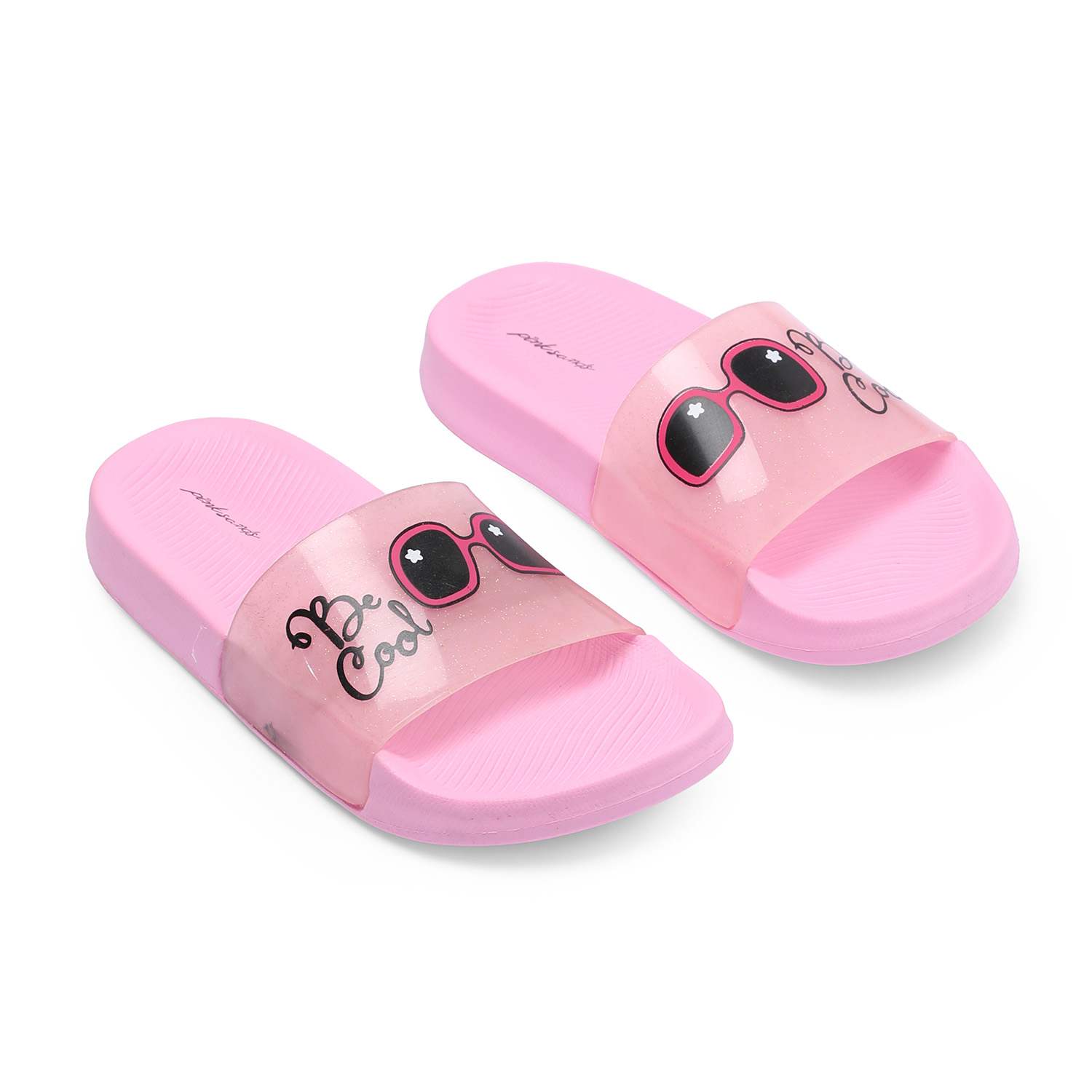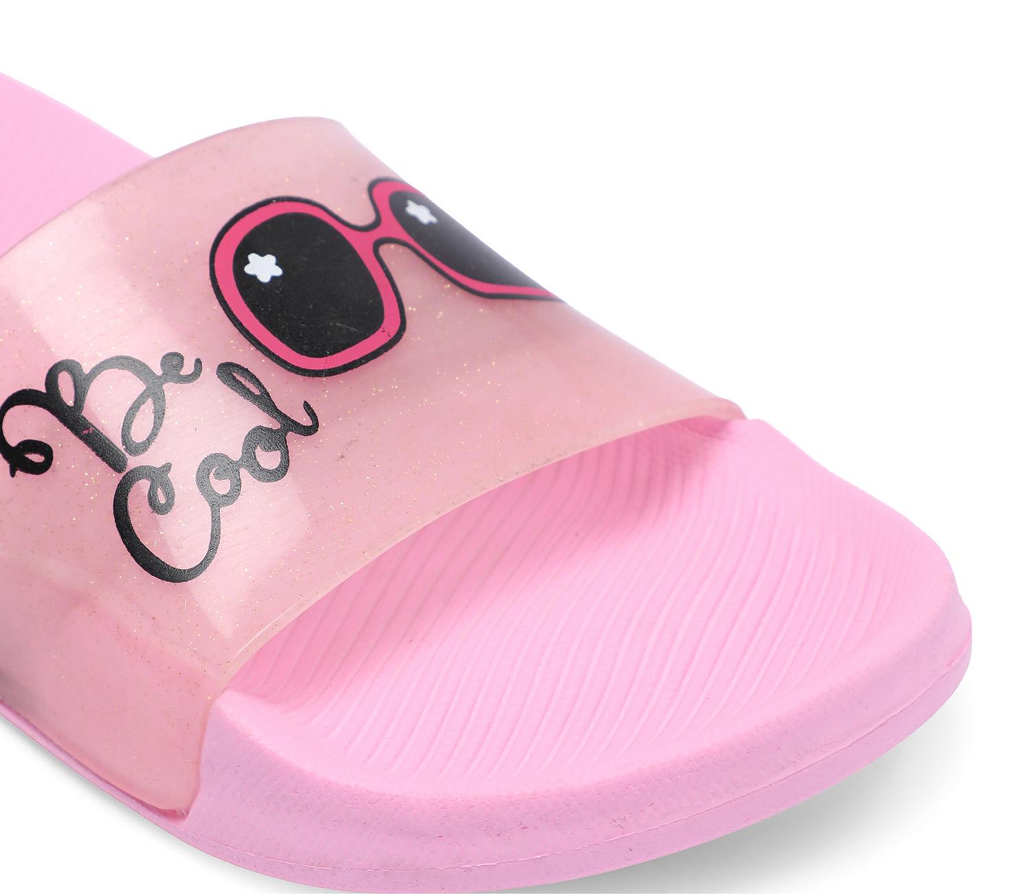 Let your little one step out in playful style with these Pink slide sandals, perfect for sunny days and casual outings. Featuring a fun Be Cool slogan and cute sunglasses graphic on the translucent strap, these sandals bring a splash of personality to every step. The soft, cushioned footbed ensures all-day comfort, while the slip-on design makes them easy to wear.