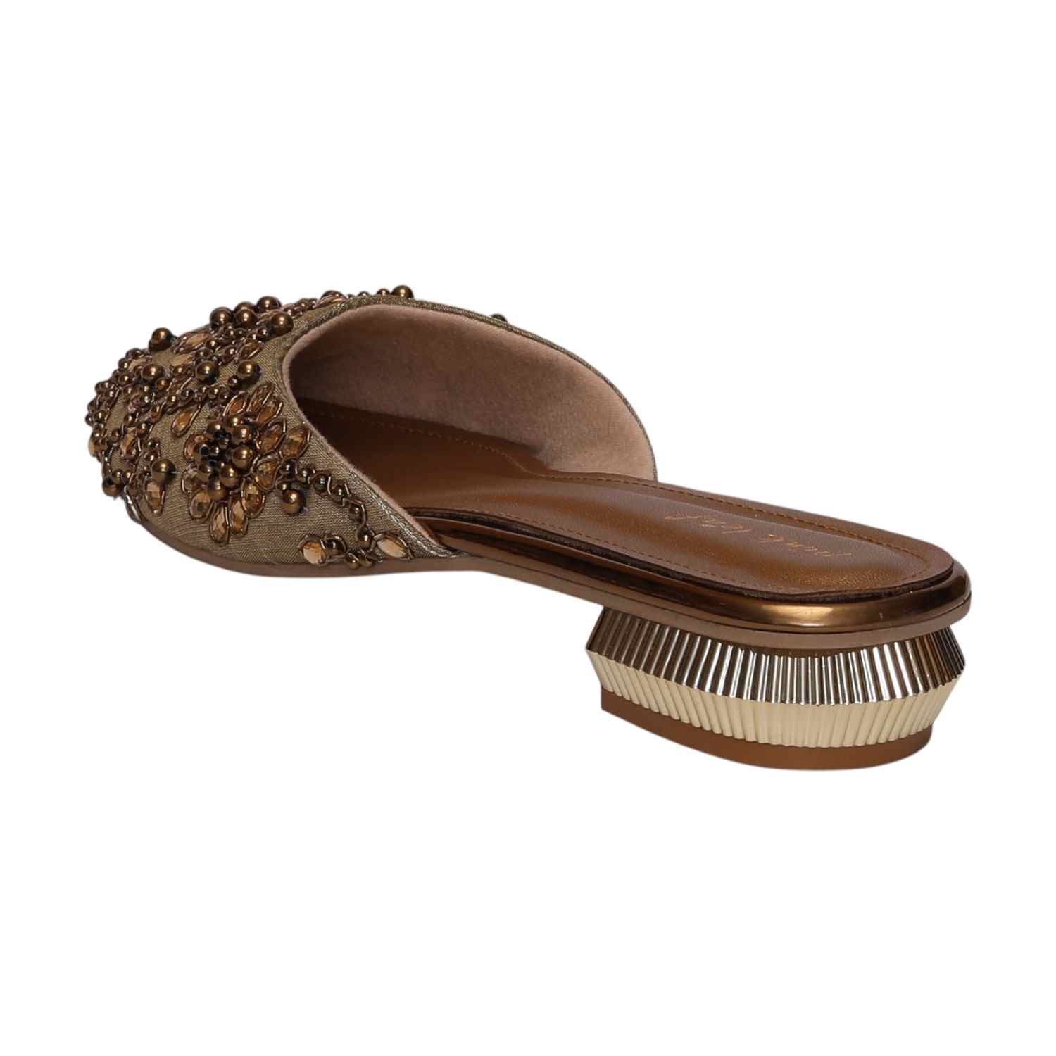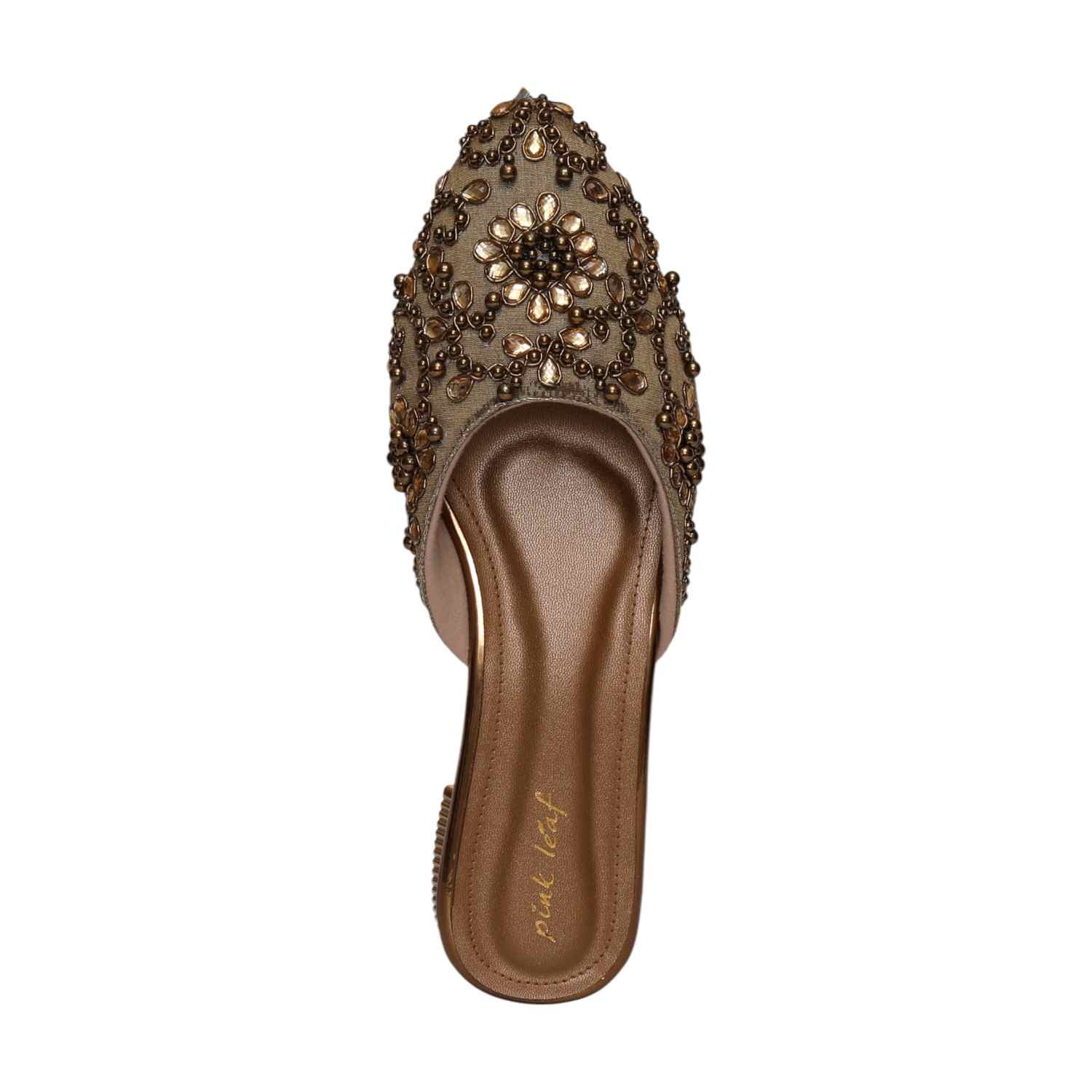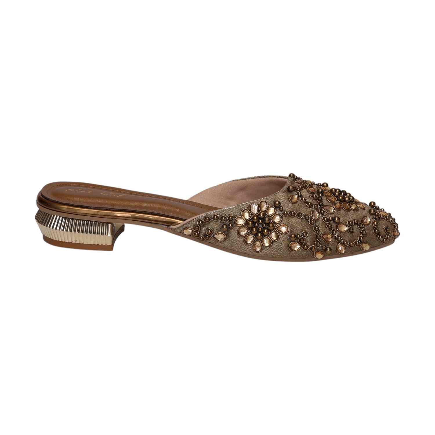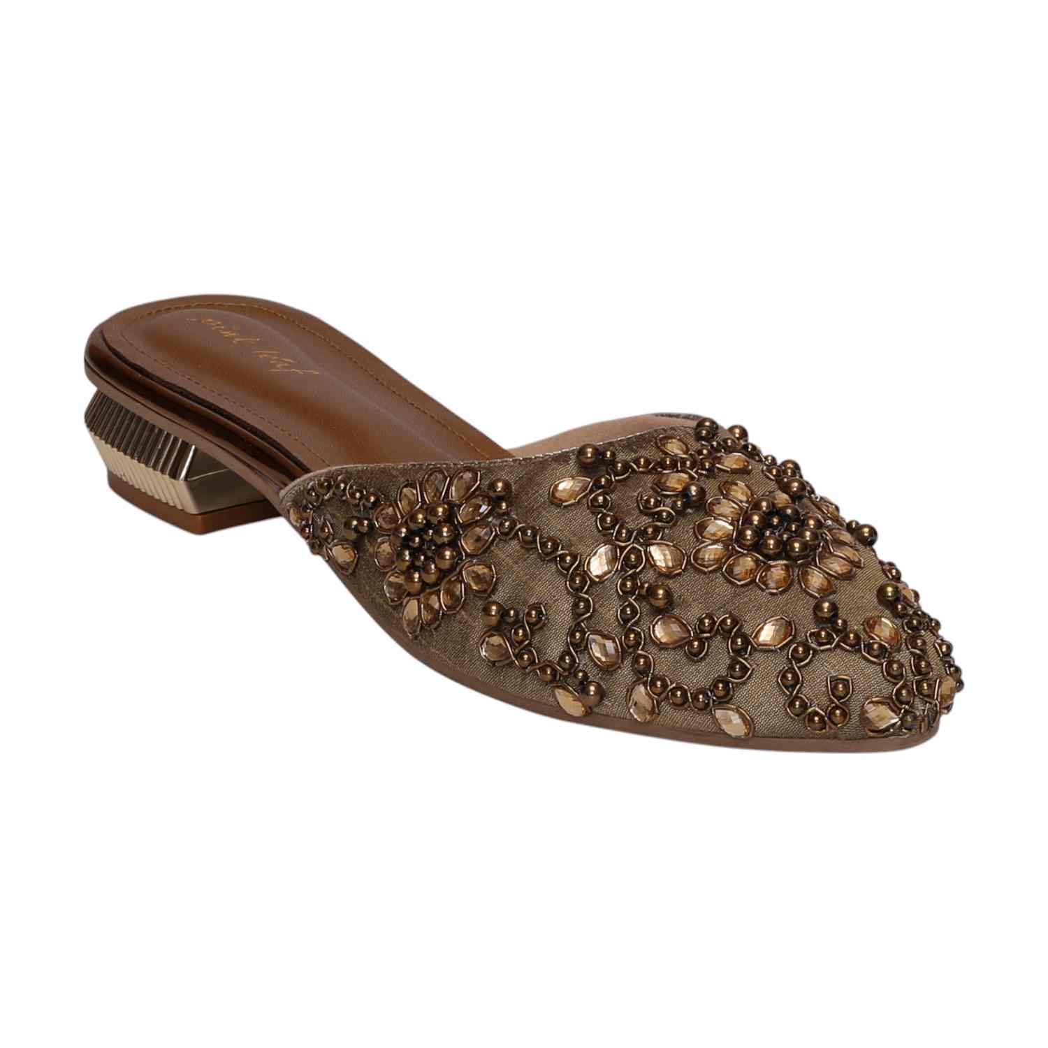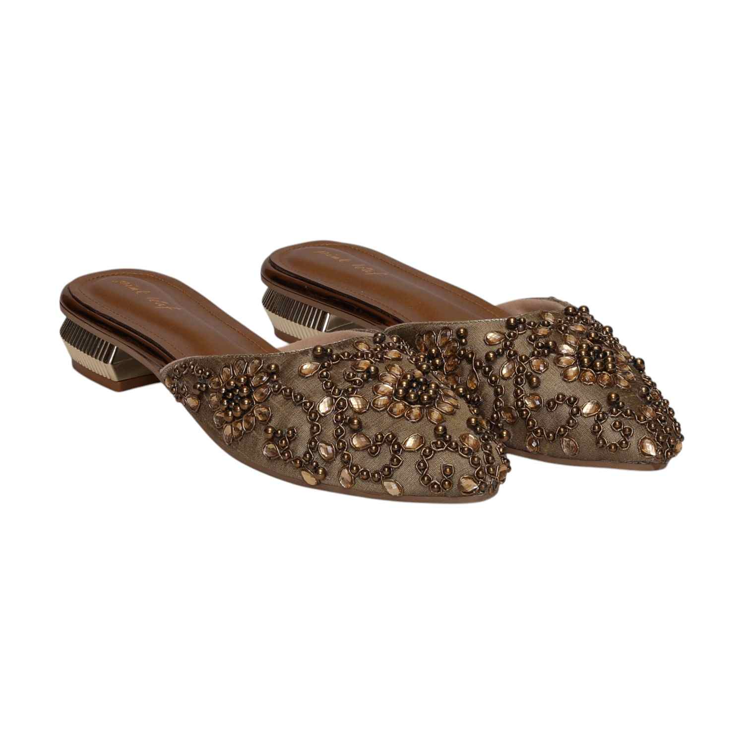 Elevate Your Ensemble With These Exquisite Slip-On Mules, Featuring Intricate Floral Embroidery And Dazzling Beadwork. The Luxurious Embellishments Create A Regal Aesthetic, While The Metallic-Accented Low Heel Adds A Modern Touch Of Sophistication. Designed For Both Comfort And Style