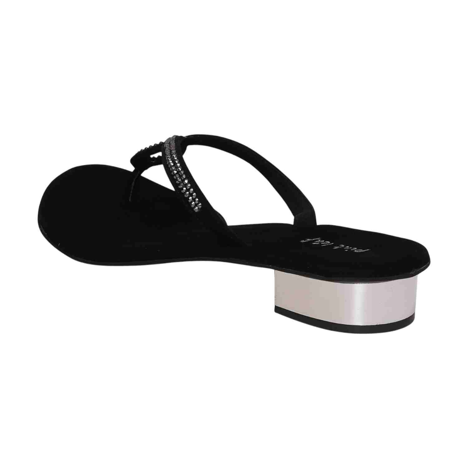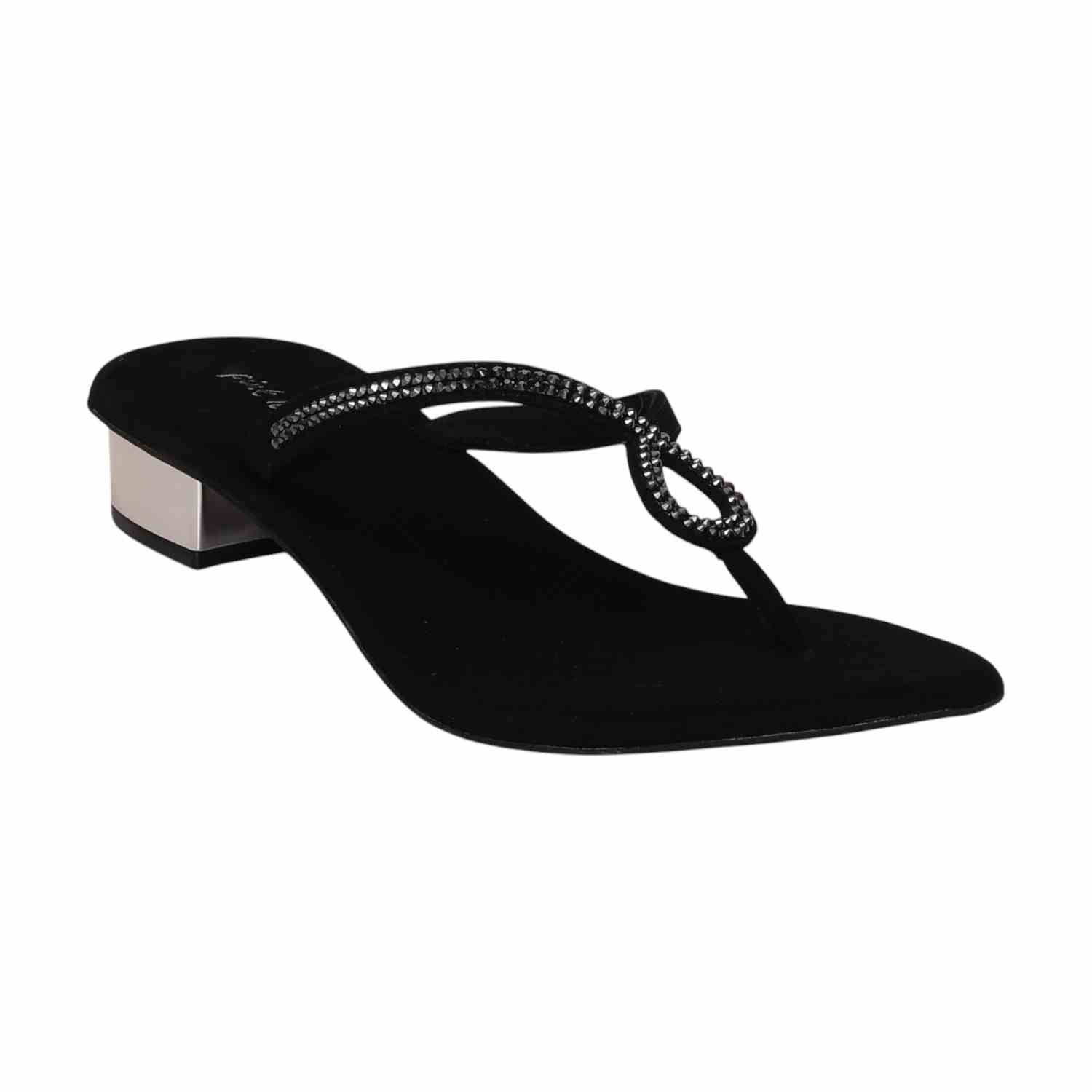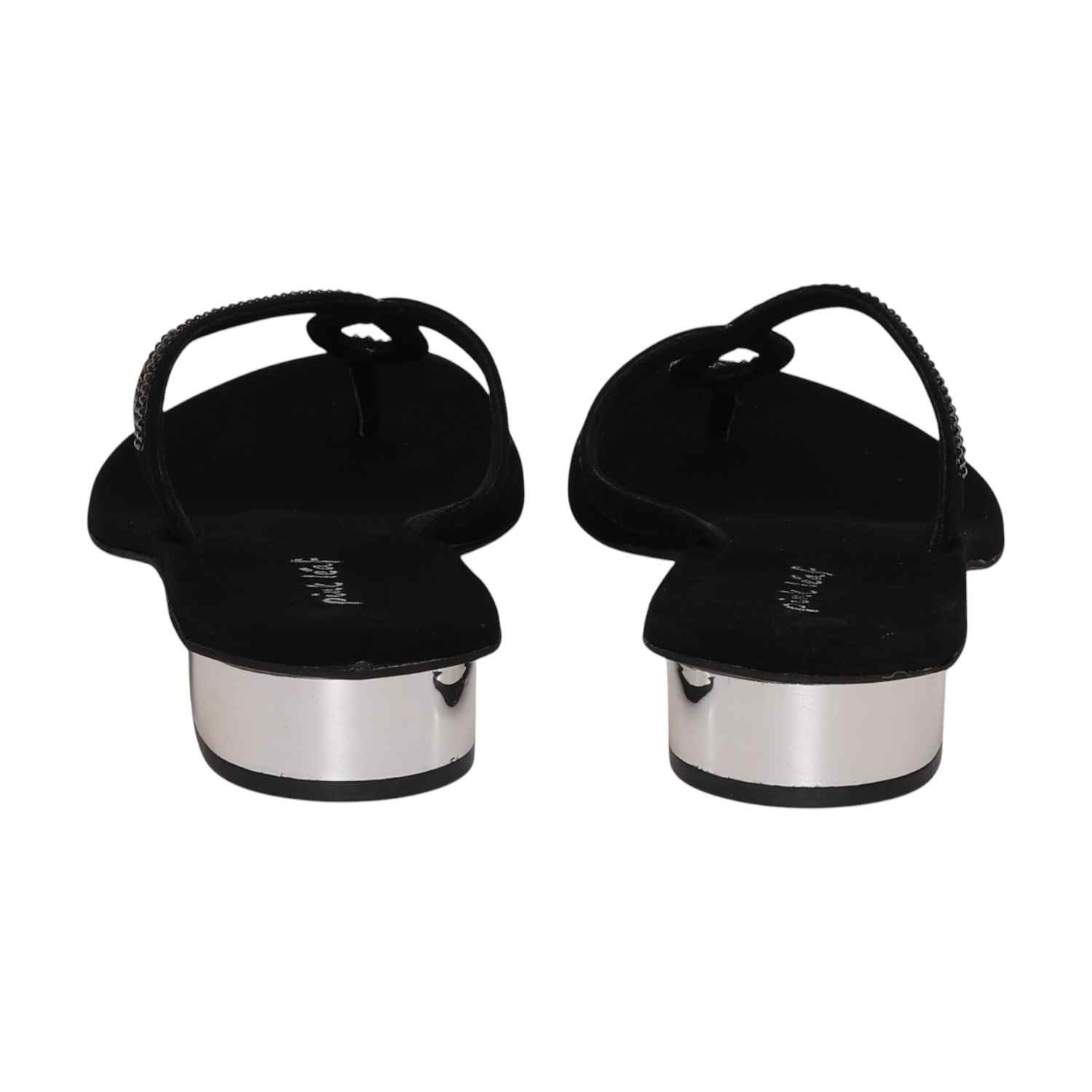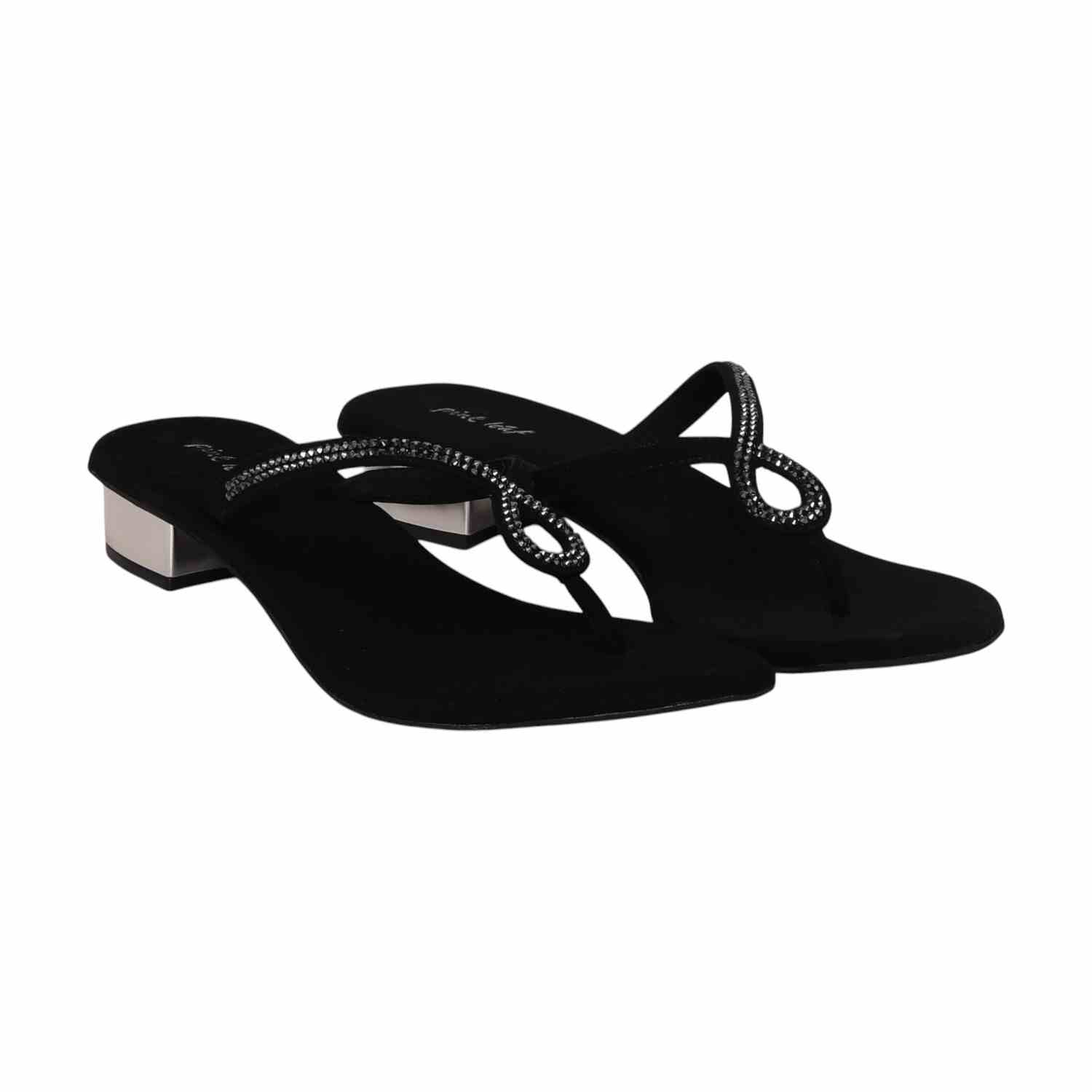 Elegant and effortless, the Antique Crystal Block Heel Sandals feature a refined toe-ring design with dazzling crystal embellishments. The low block heel adds just the right lift for comfort, while the sleek black finish makes them perfect for elevating both ethnic and contemporary outfits.
