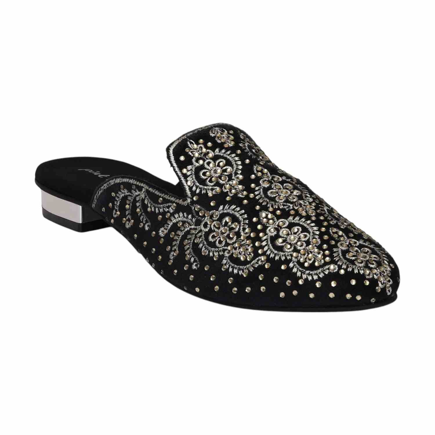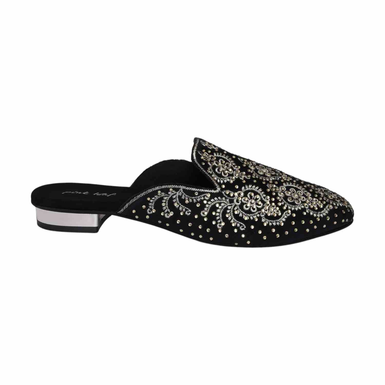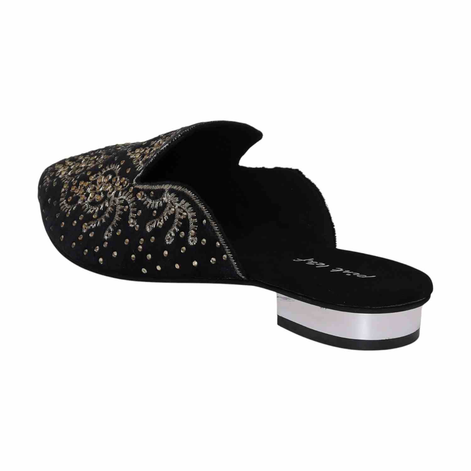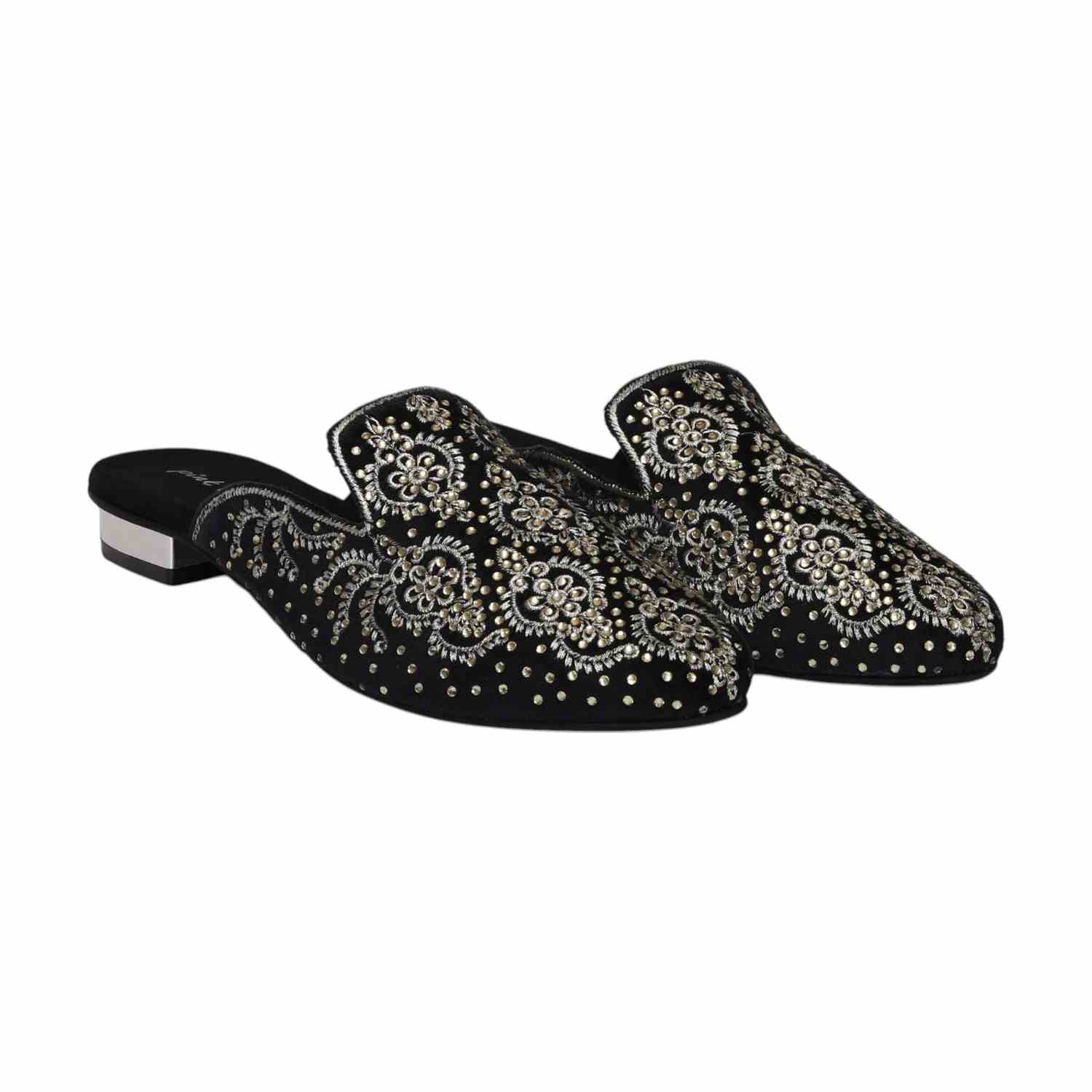 Timeless charm meets handcrafted beauty in the Noor Black Embroidered Mules. The soft finish and elegant detail make them your forever festive essential.