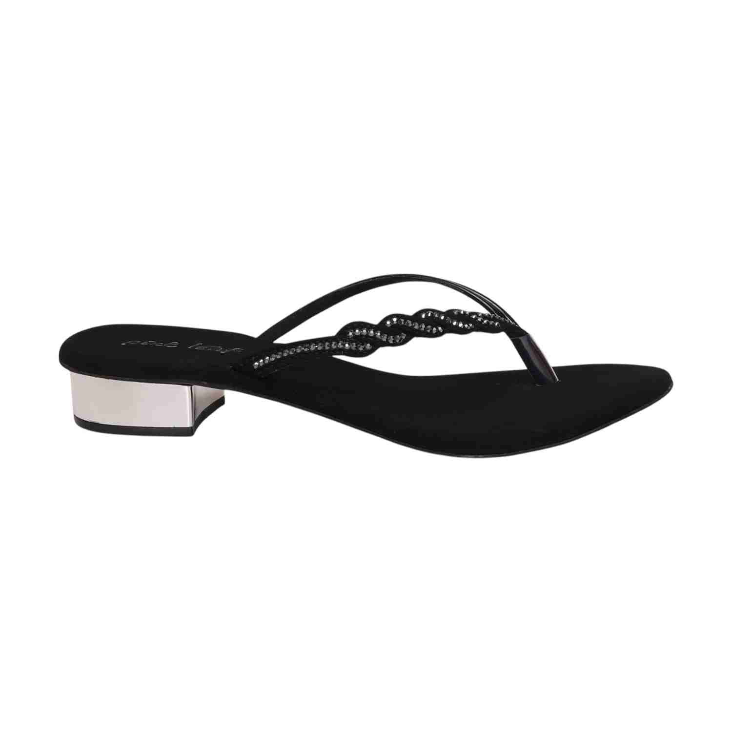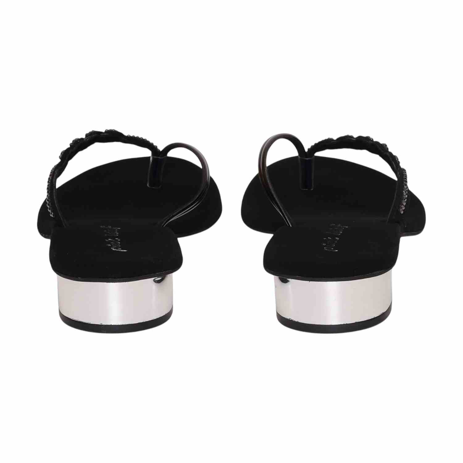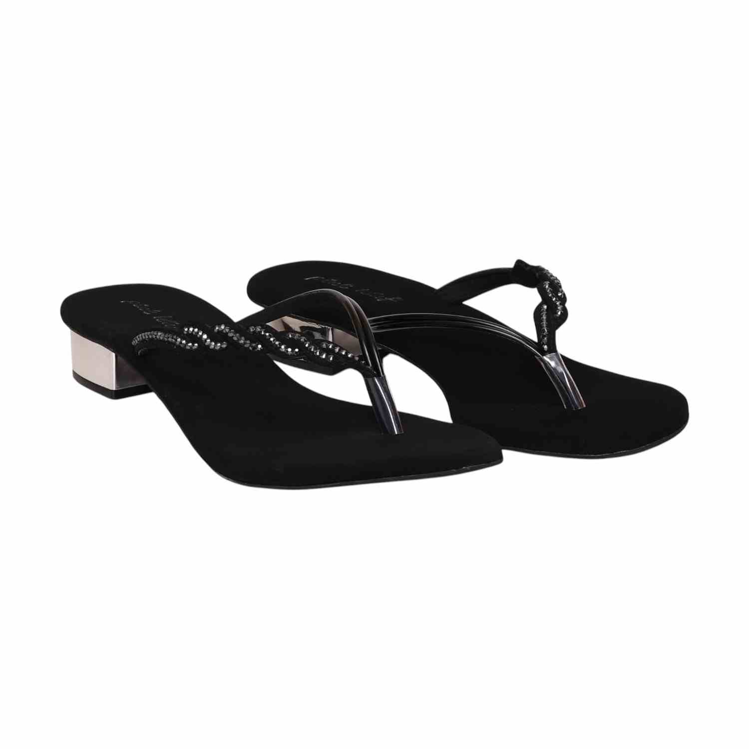 Add a touch of unique glamour to your footwear collection with these Black Twisted Sparkle Sandals. The distinctive twisted strap boasts a delicate shimmer, while the low heel ensures comfortable and chic wear throughout the day