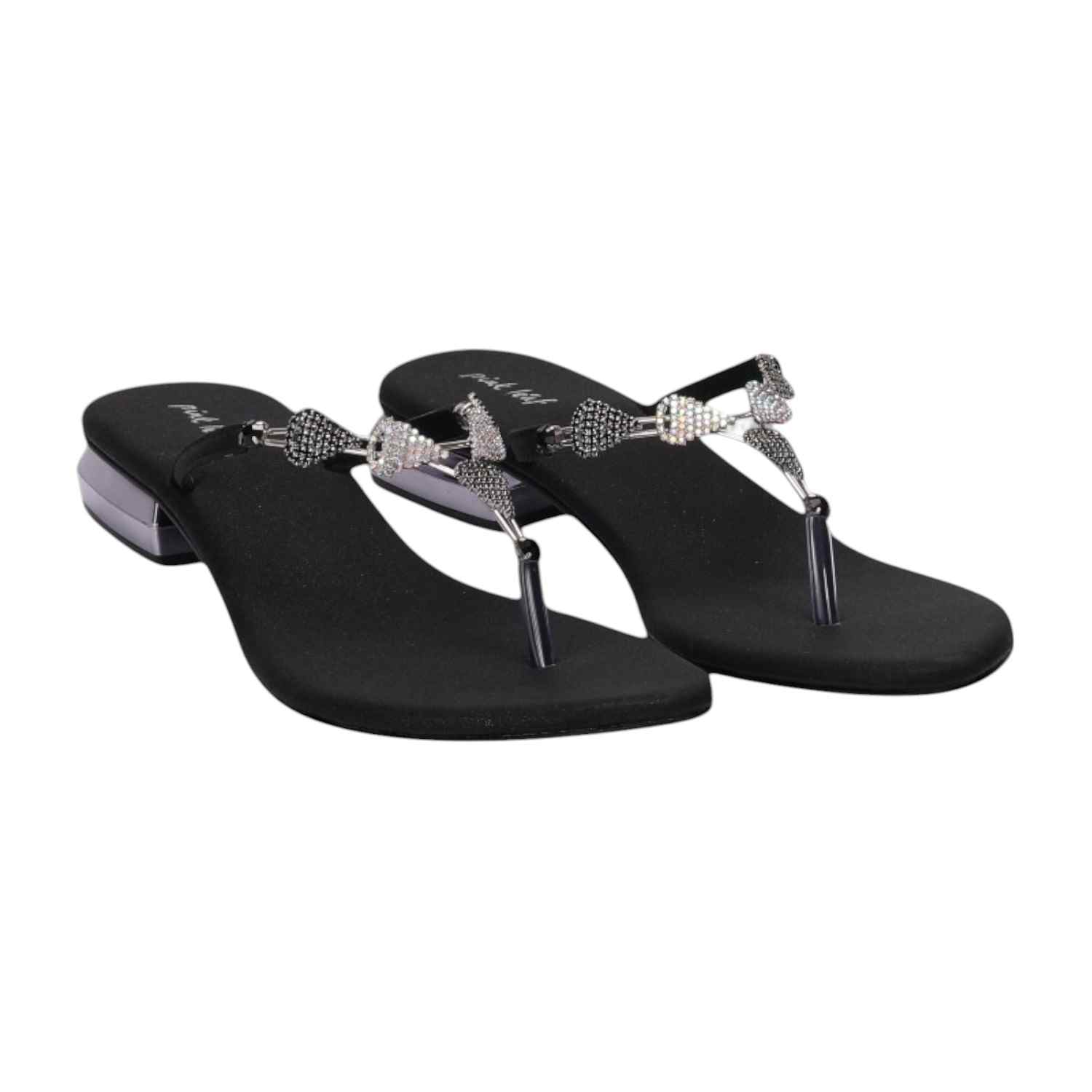 Home / Products / Pinkleaf / Women Black Spark Thong Block Flats
