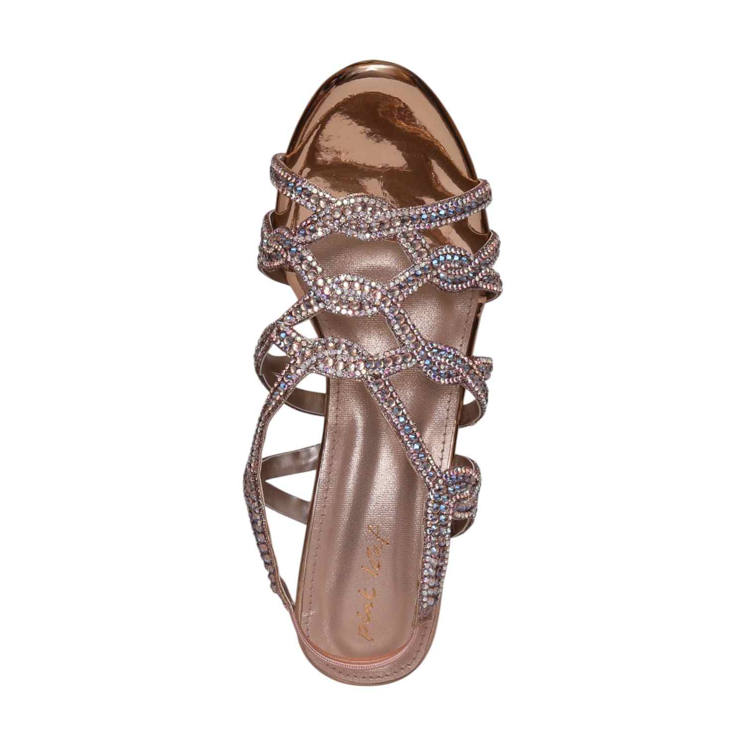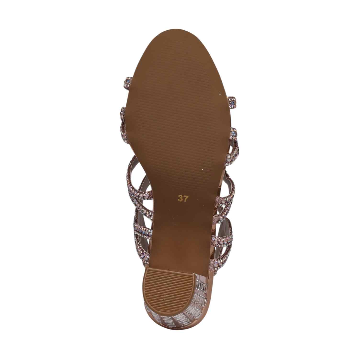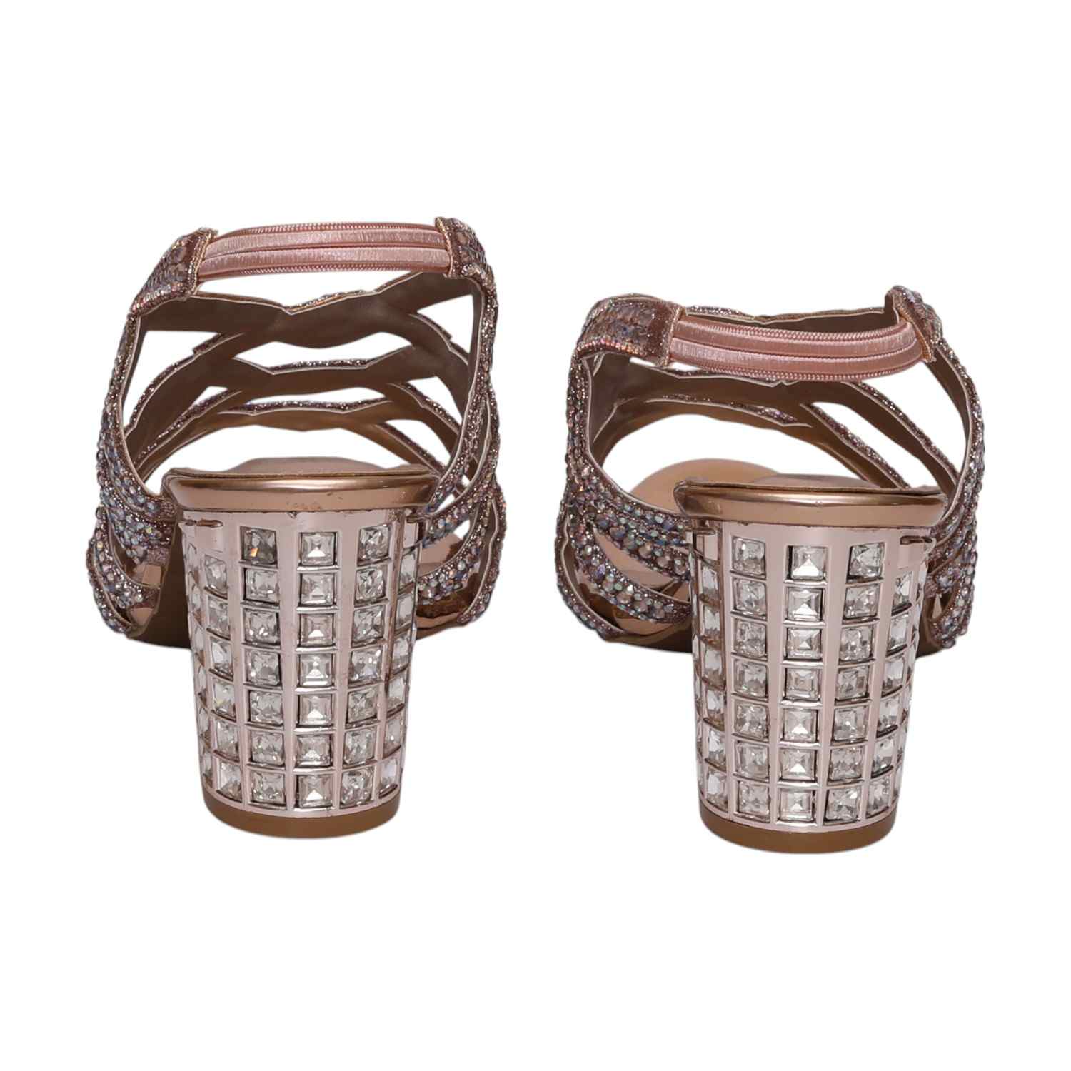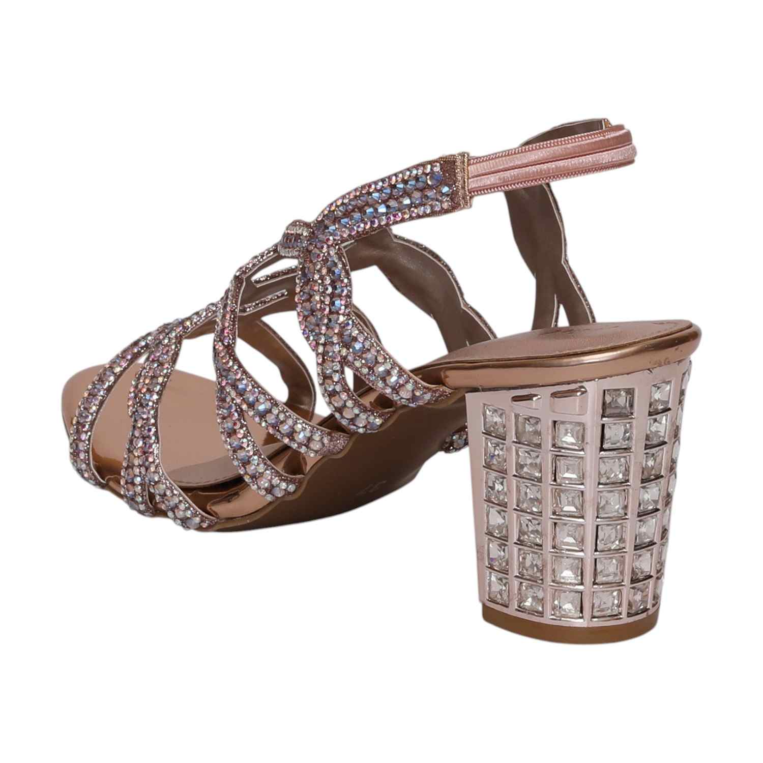 Shine bright in these glamorous Grand Gala Rosegold Block heeled sandals. Adorned with dazzling embellishments and featuring a comfortable block heel, they are the perfect choice for special occasions and adding a touch of luxurious sparkle.
