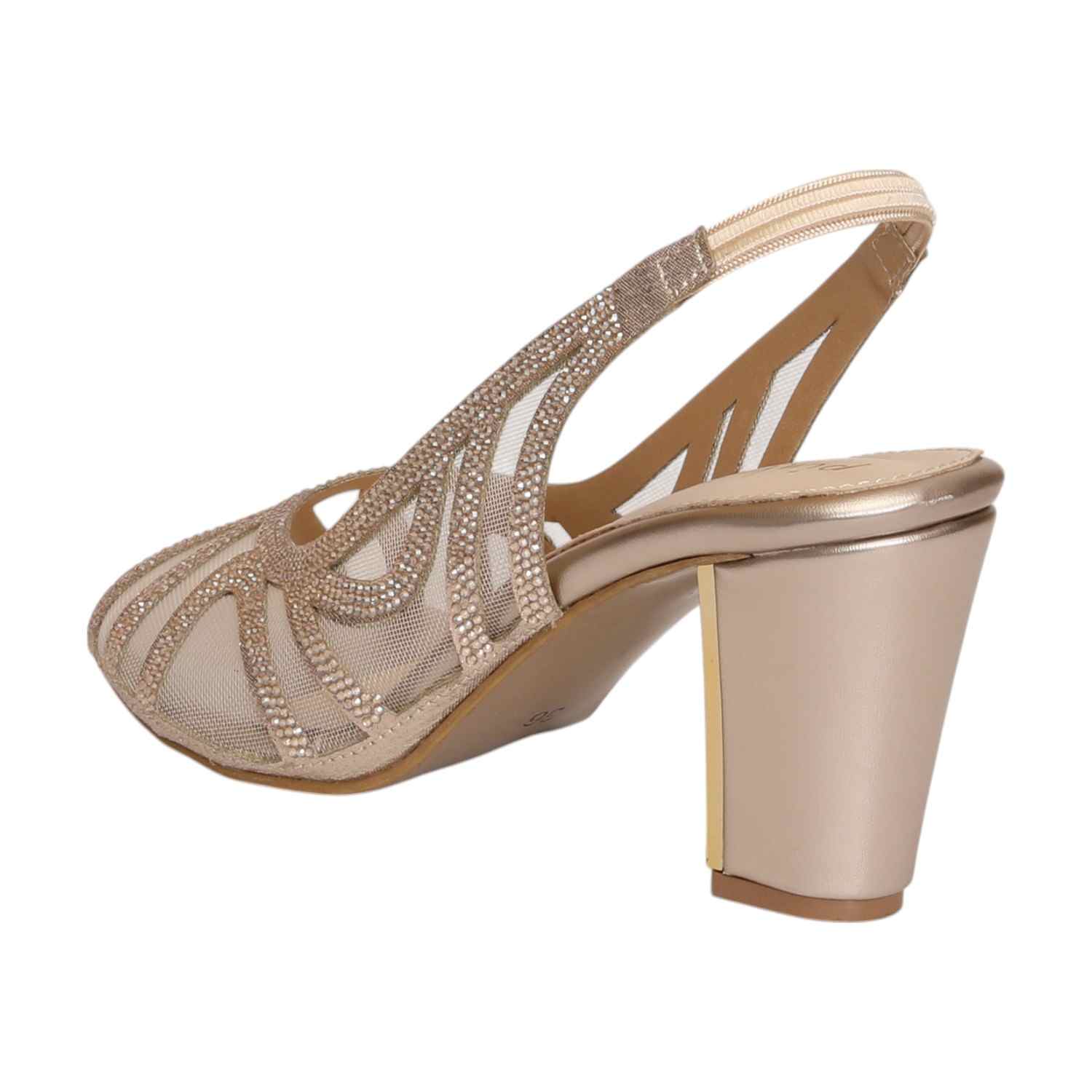 Elegance meets ease in these Golden Mirage Mesh Slingback Heels. Crafted with soft mesh panels and embellished with fine rhinestones, they offer breathable comfort while delivering high-impact sparkle. The cushioned insole supports all-day wear, while the glossy block heel adds stability and shine. A perfect blend of glamour and functionality — ideal for weddings, parties, and festive evenings