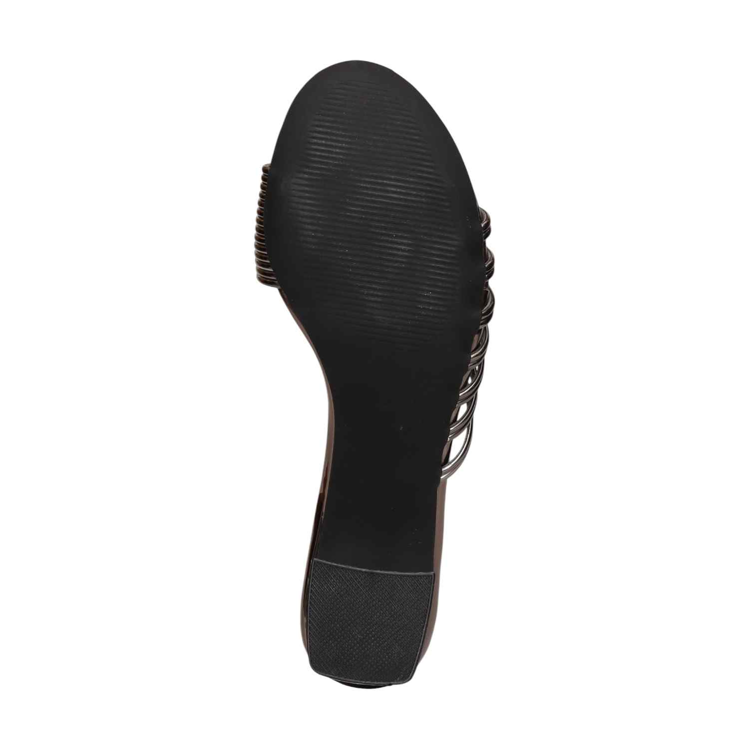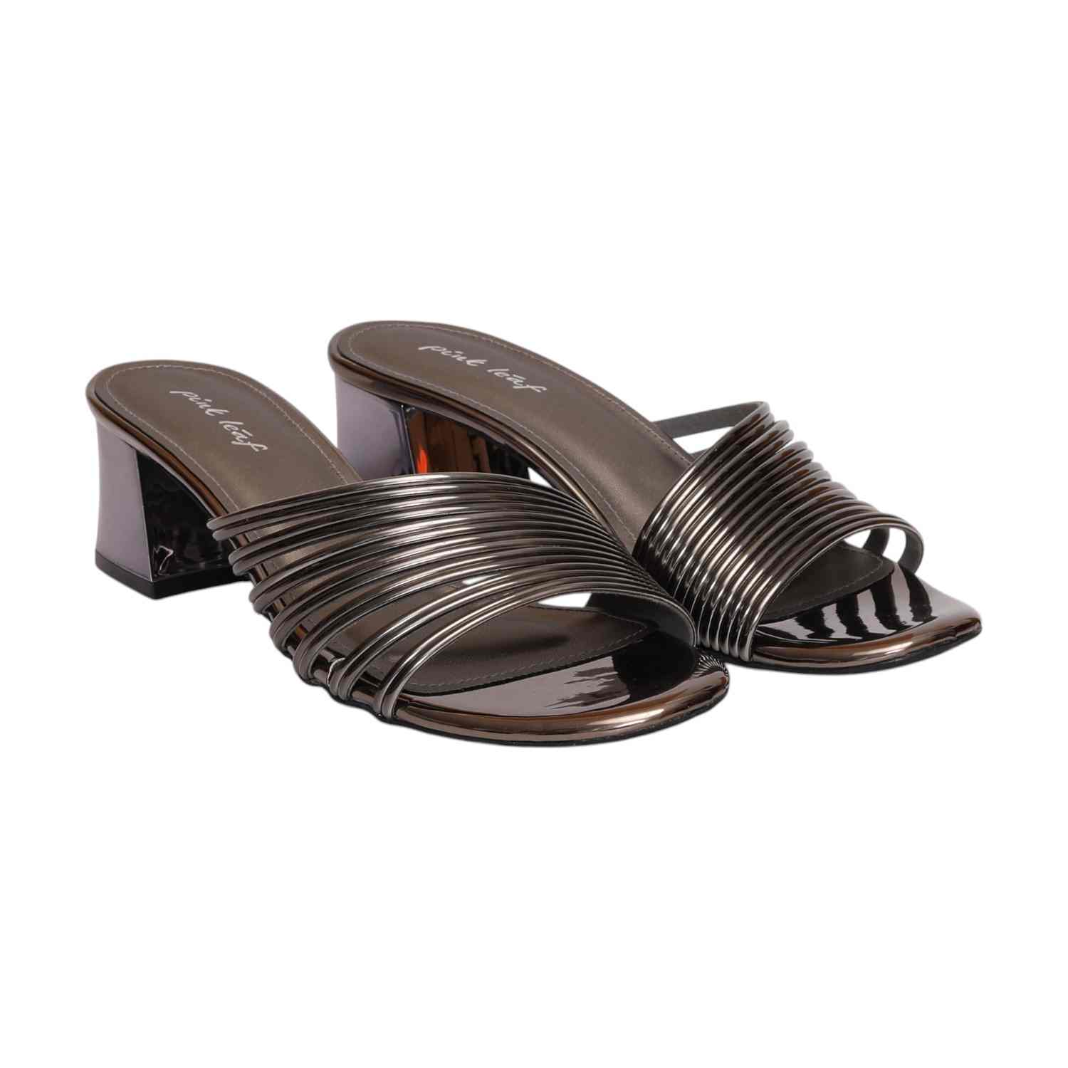 Elevate your look with these versatile Gunmetal strappy Chic block heel sandals. Featuring multiple slender straps and a comfortable block heel, they offer chic style and stable support for any occasion, day or night.