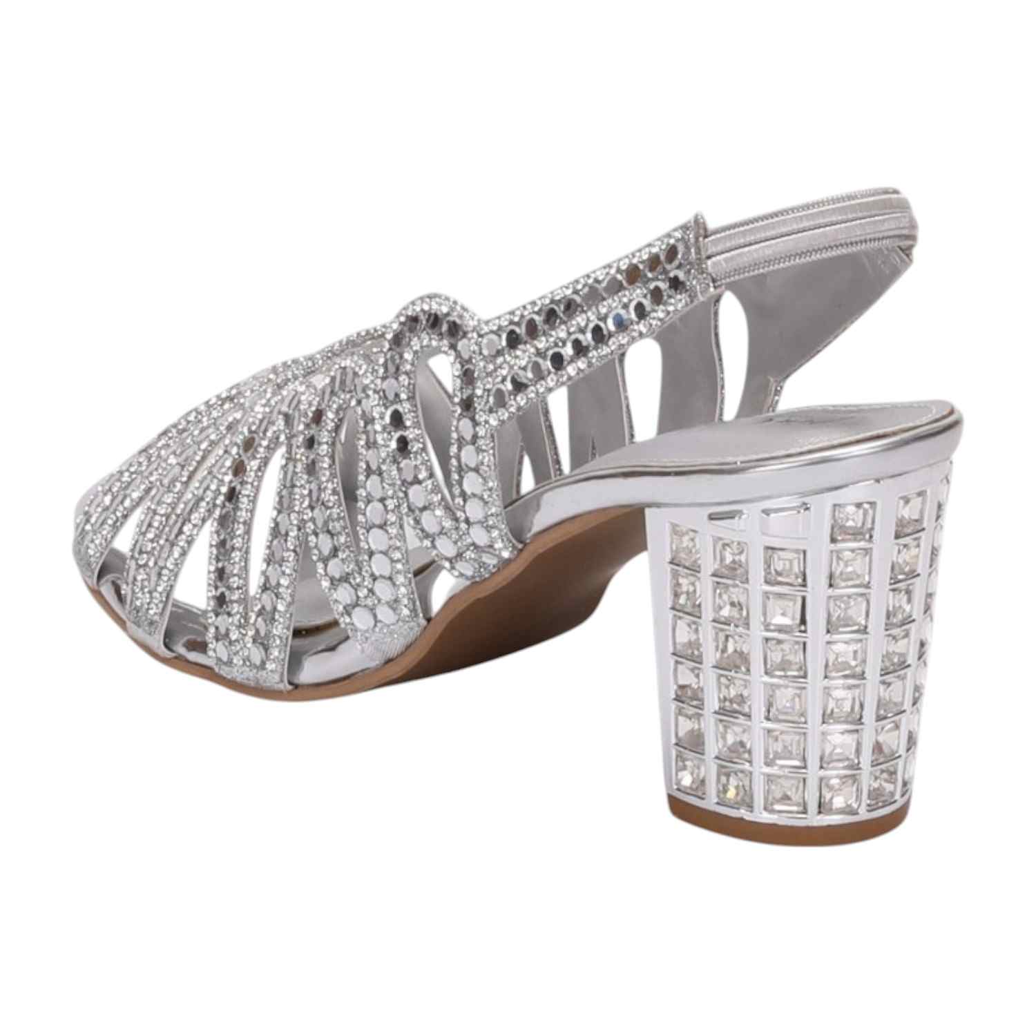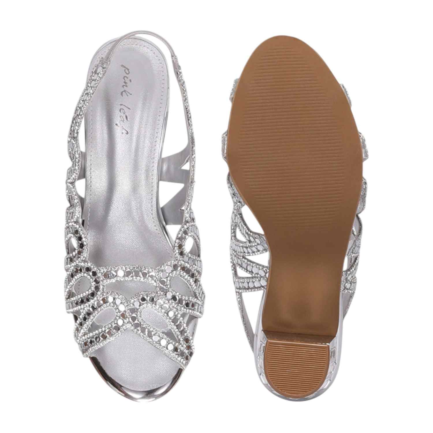 Make every step dazzle with the Shimmer Loop Silver Slingback Heels. Featuring a sculpted block heel and elegant cut-out loops adorned with crystals, these heels are perfect for festive evenings or cocktail glamour. The metallic silver finish adds a luxe edge, while the slingback strap ensures comfort and a secure fit.