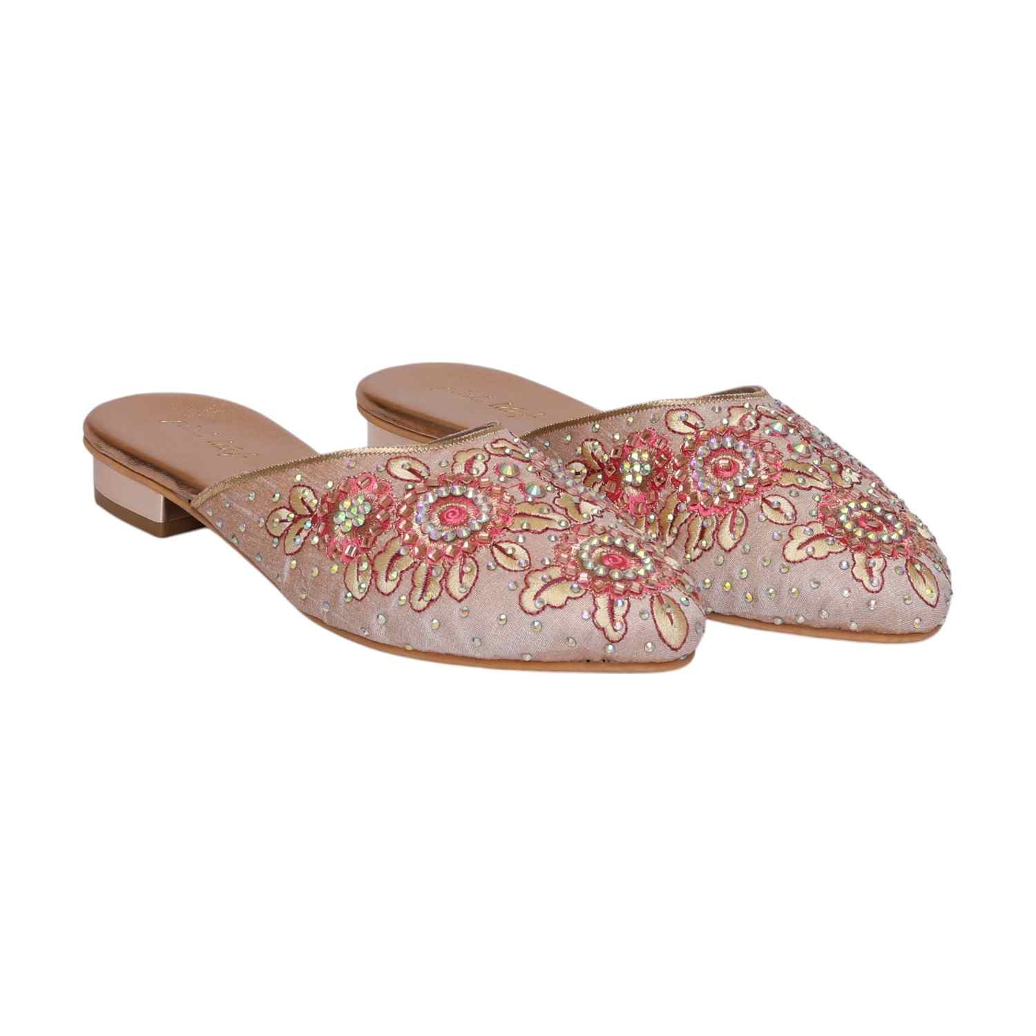 Add A Touch Of Elegance To Your Wardrobe With These Beautifully Embroidered Slip-On Mules. Crafted With Intricate Floral Beadwork, These Mules Exude Sophistication And Charm. The Shimmering Embellishments And Subtle Pearl Accents Enhance The Luxurious Appeal, While The Cushioned Sole Ensures Lasting Comfort.