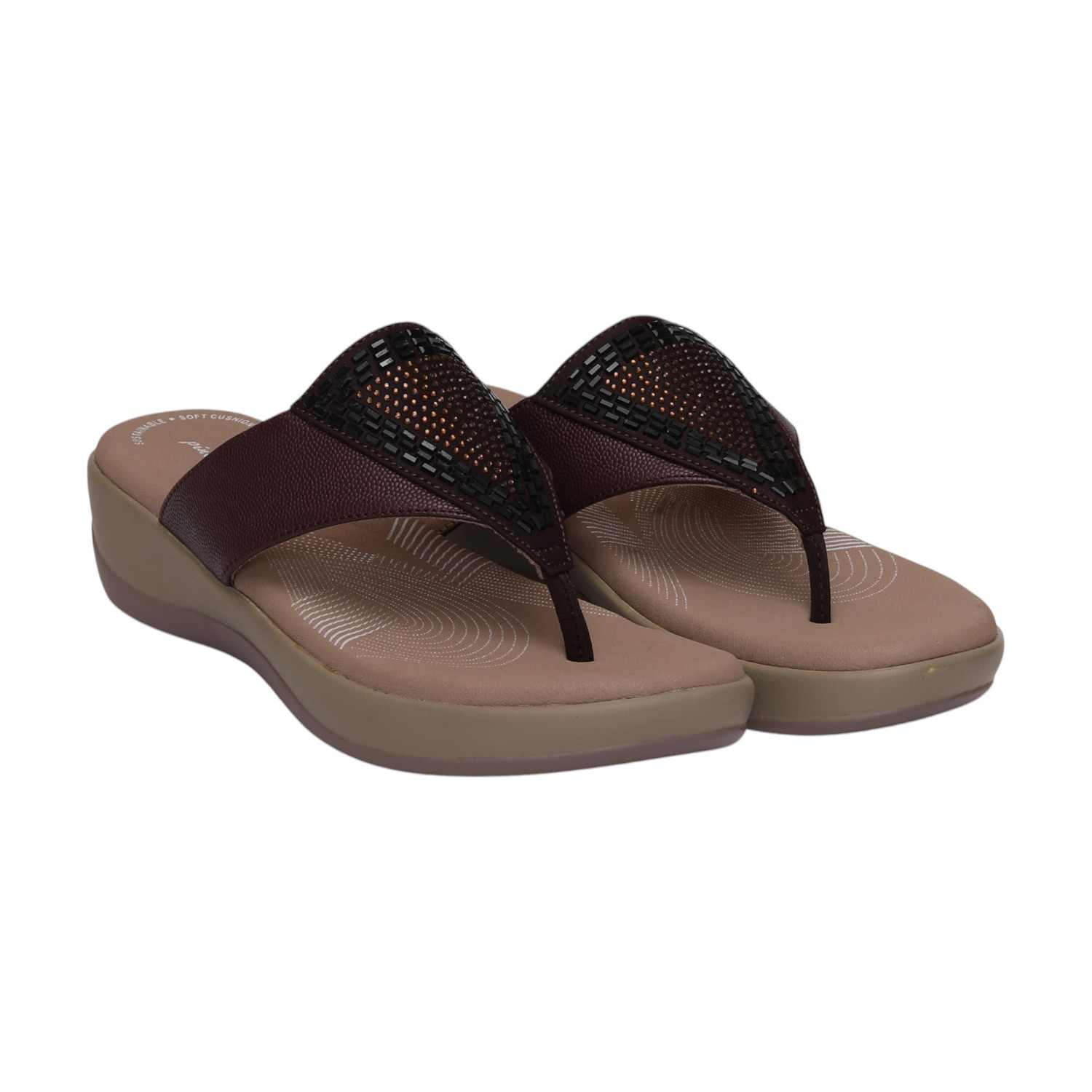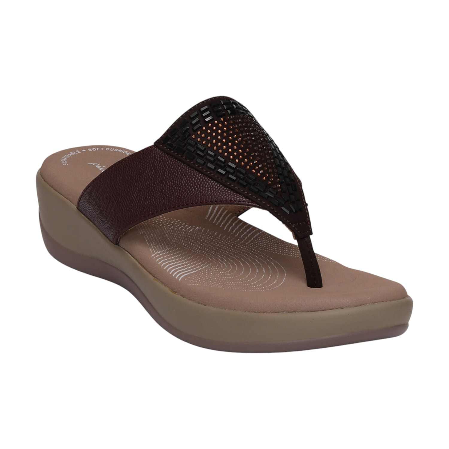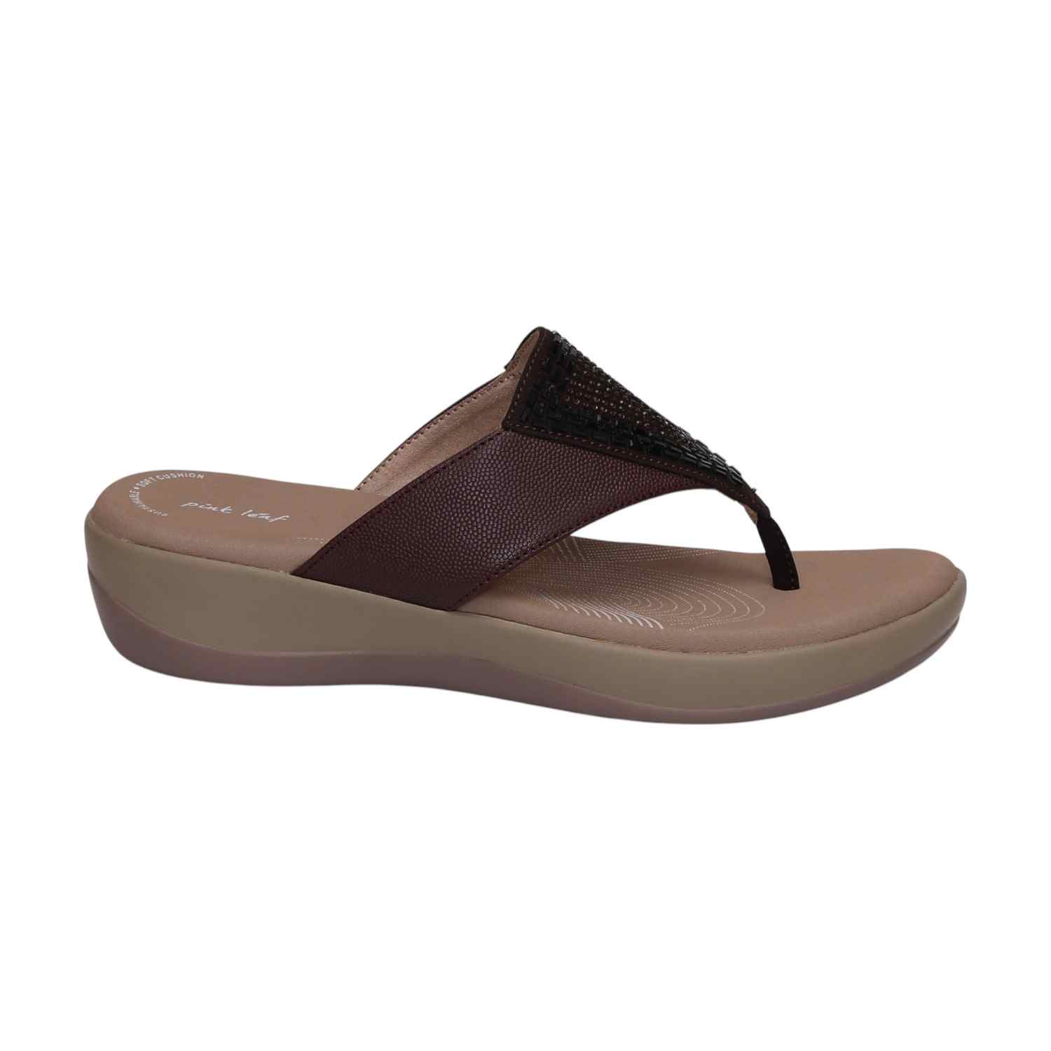 Command attention with these Wine wedge slide sandals, showcasing a prominently textured and embellished strap. Their supportive wedge platform ensures comfortable wear while adding a bold, modern edge to your look.