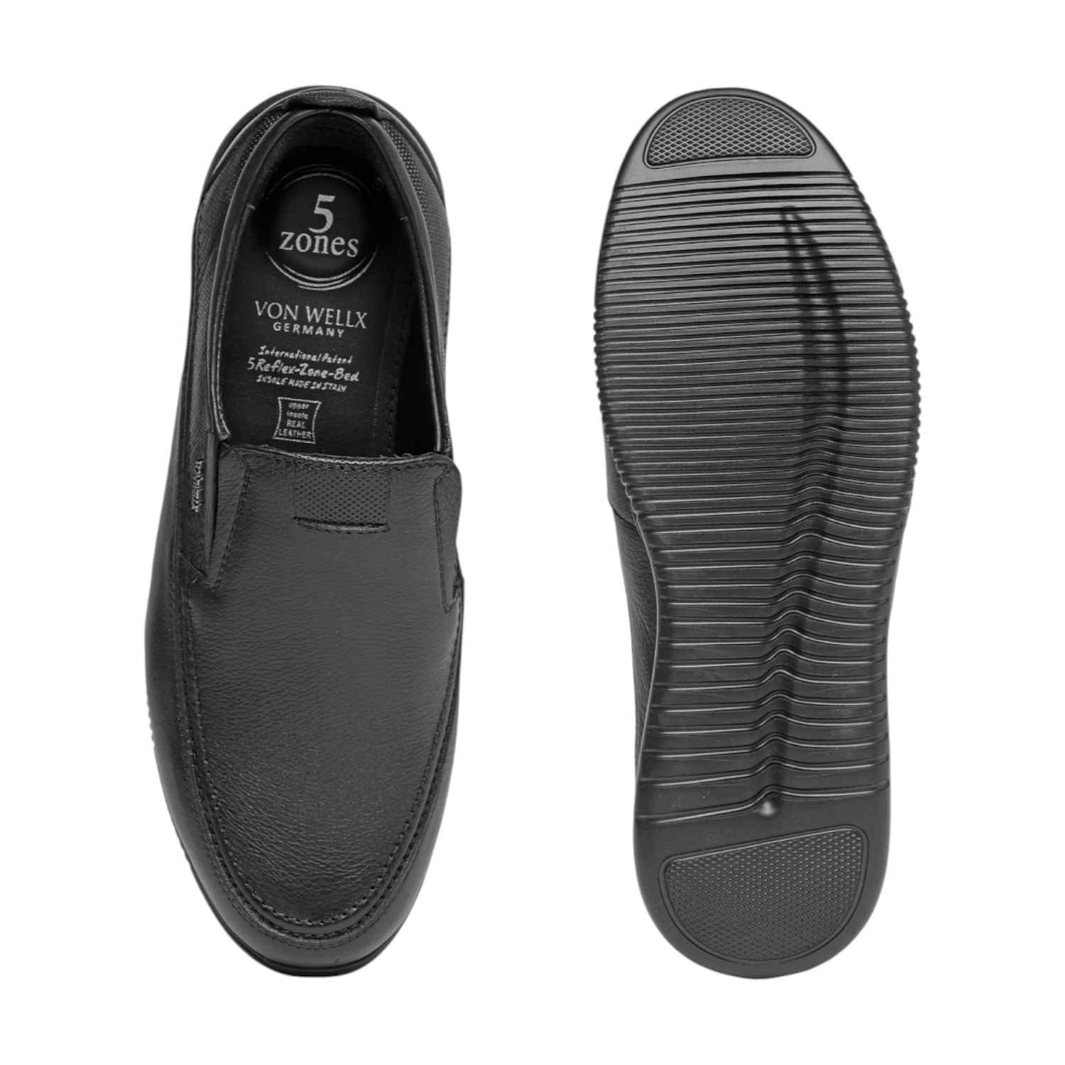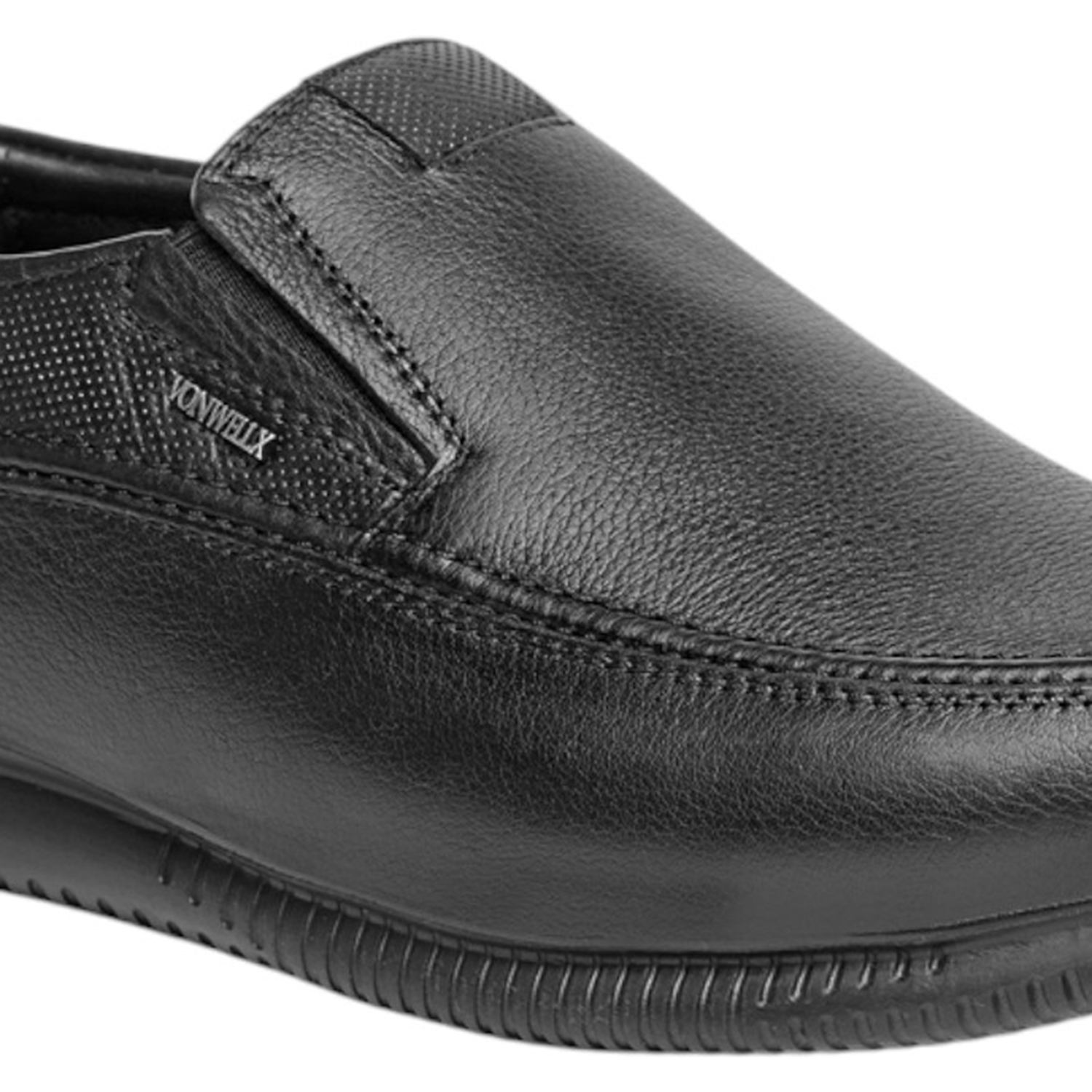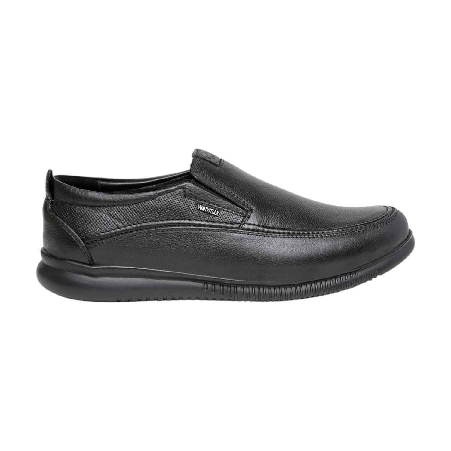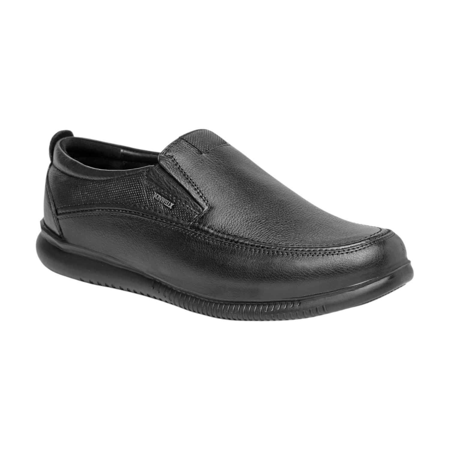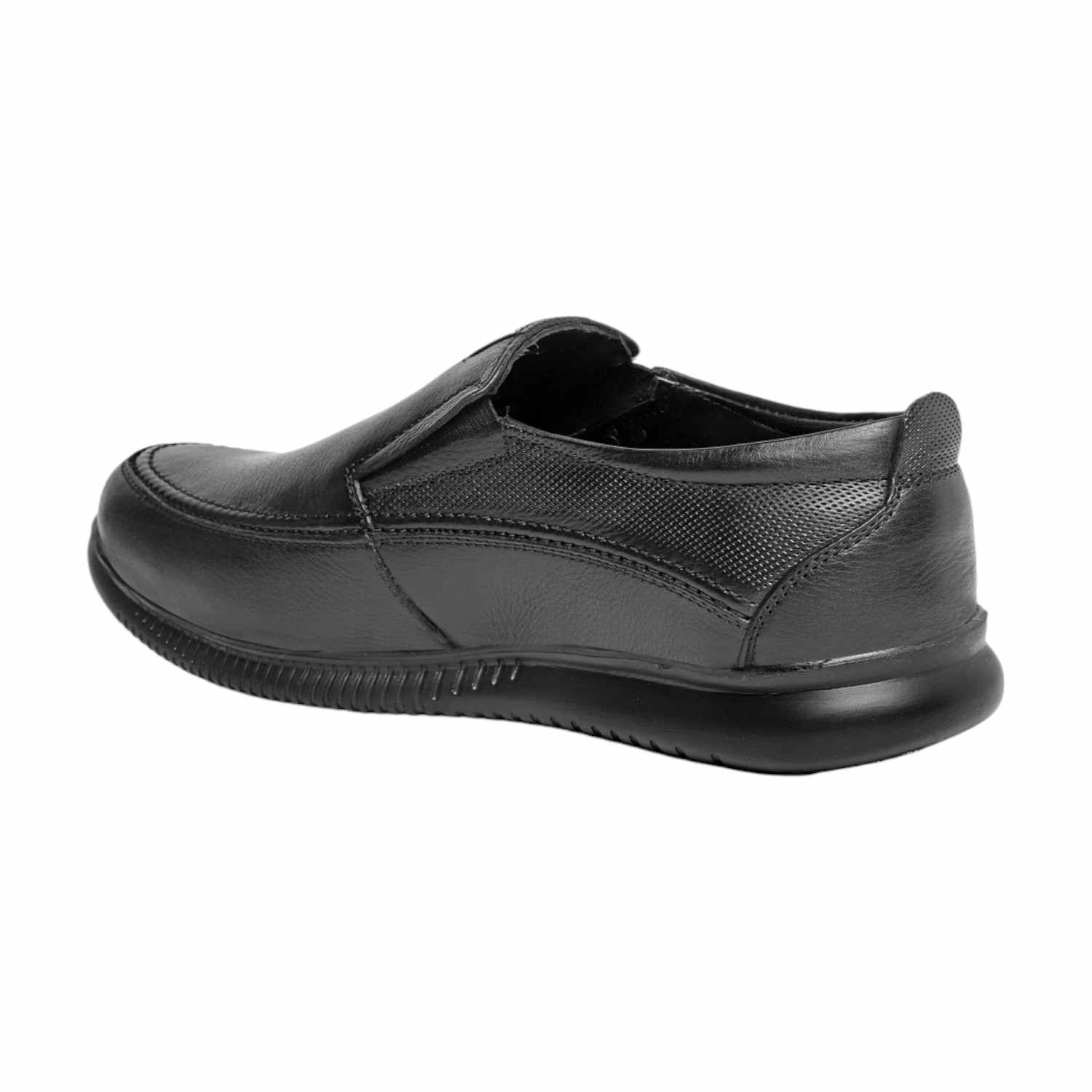 Exude confidence and comfort with these polished black leather slip-on shoes for men. With a classic silhouette and subtle textured details on the side, they offer a refined look suitable for business, formal events, or smart casual wear. Engineered for comfort and easy wear, these shoes are a staple for the modern man who demands both style and all-day ease.