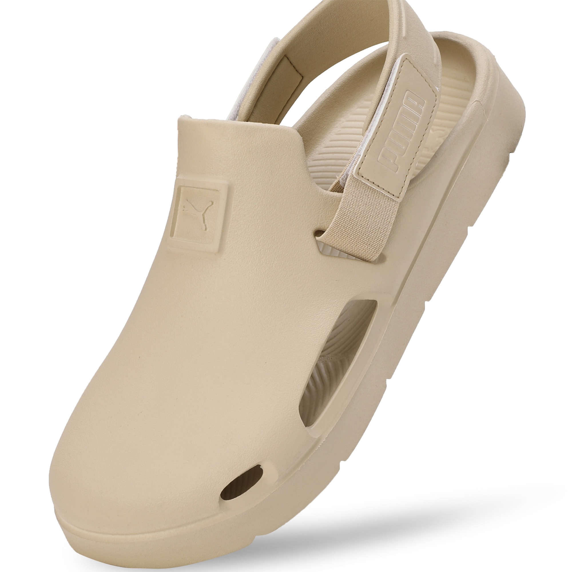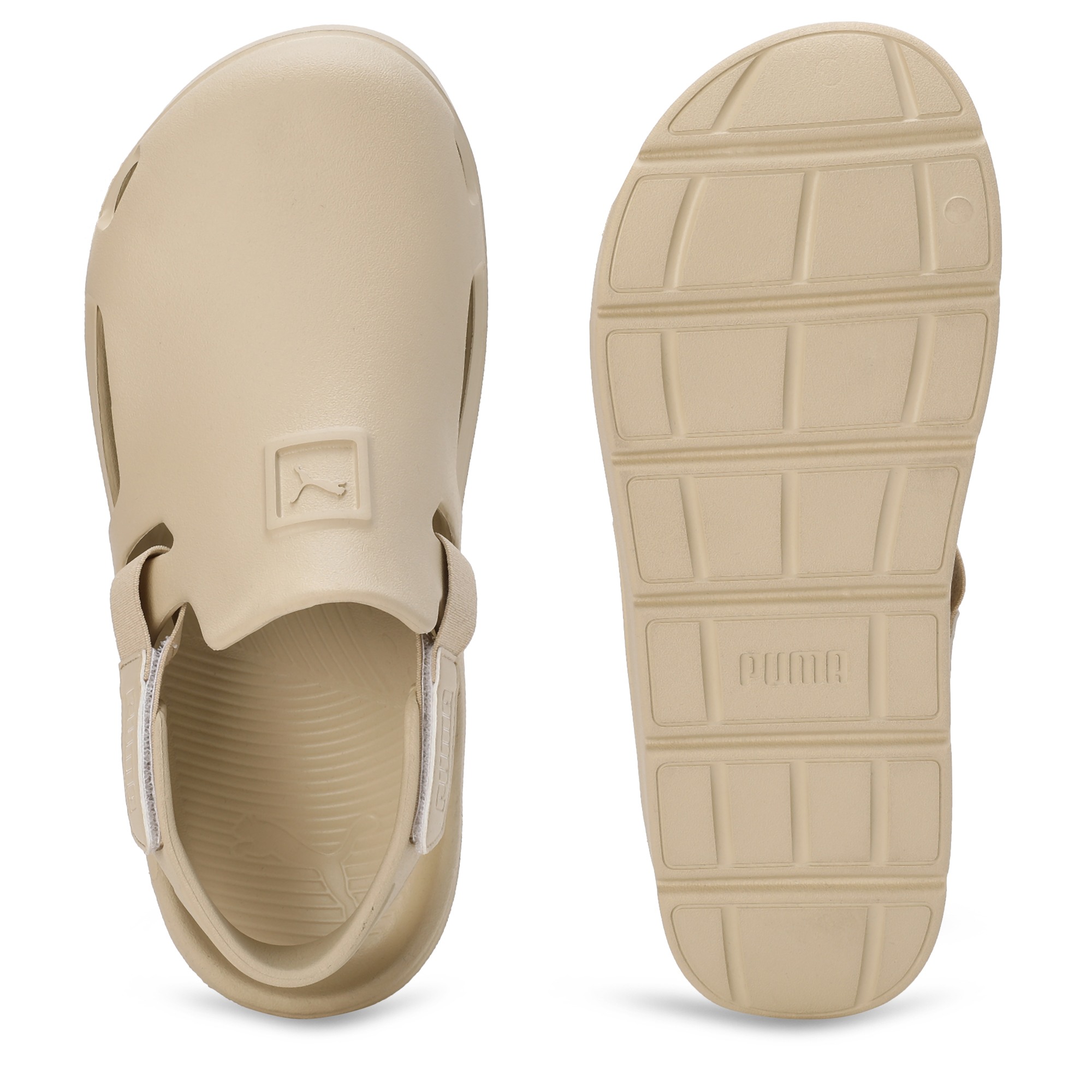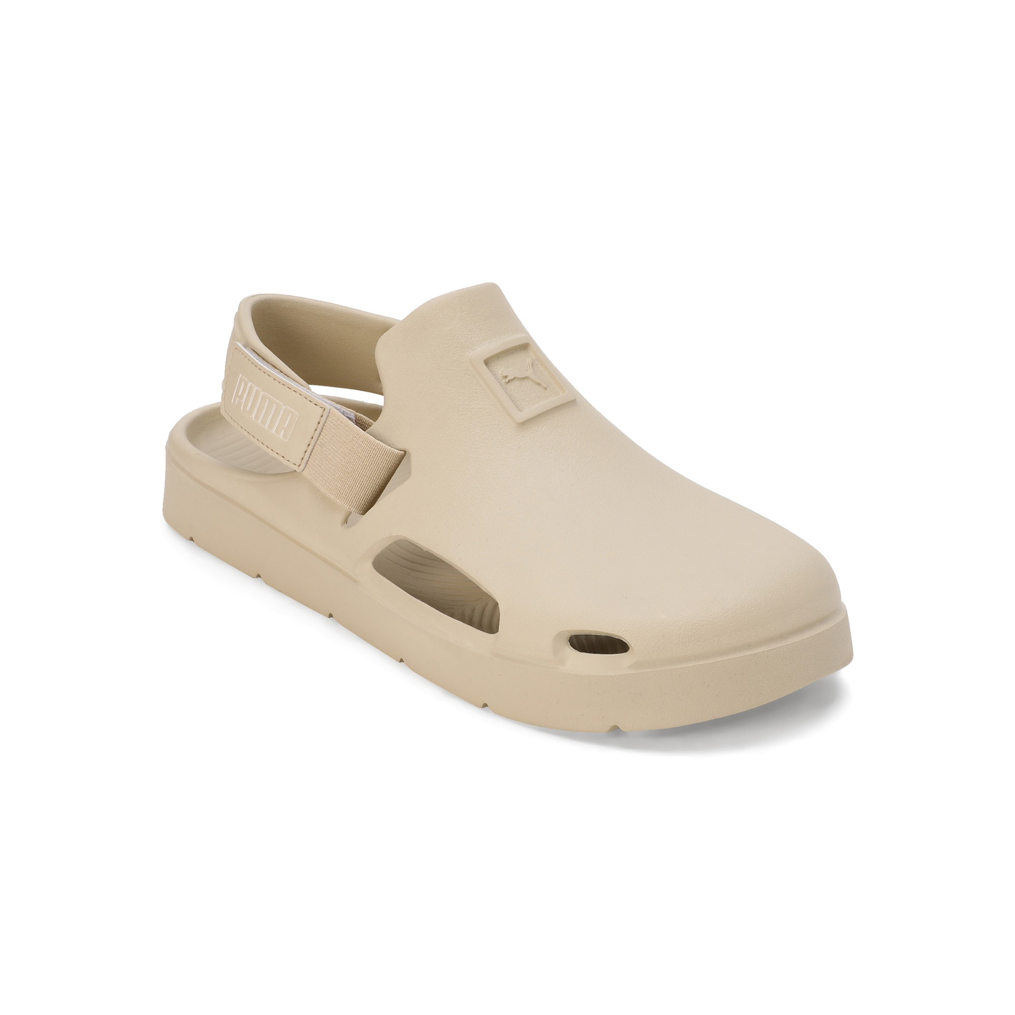 Product Story : Slip into summer with the PUMA Shibui Clogs. Moulded for comfort yet ruggedly capable, these sandals propel you on sunny strolls and casual adventures with superior grip and a water-ready build, keeping you stylishly equipped for the season. Details : Heel type: Flat Shoe width: Regular fit Synthetic upper EVA outsole Water resistant Velcro closure Molded injected EVA construction for a comfy fit PUMA wordmark branding Textured footbed for comfort, bottom grooves for superior grip