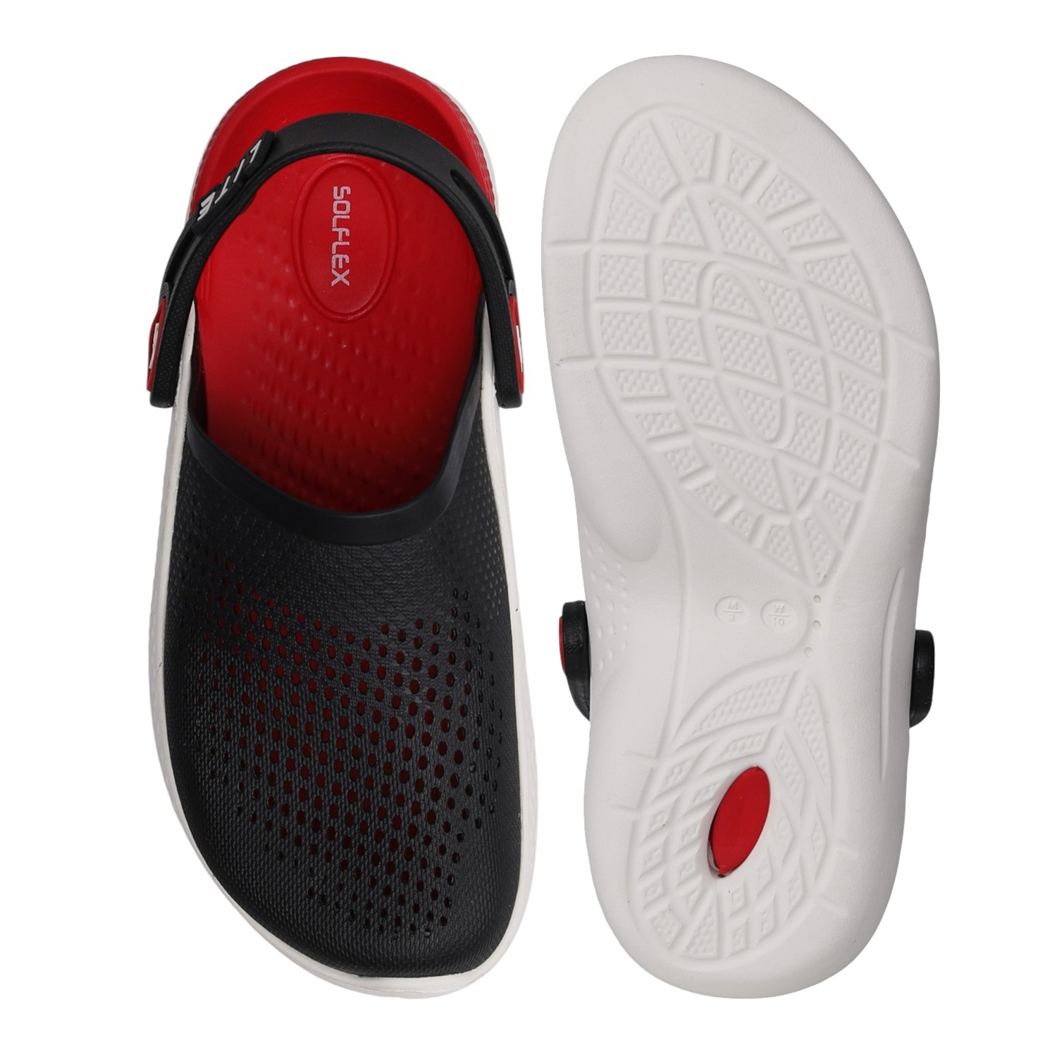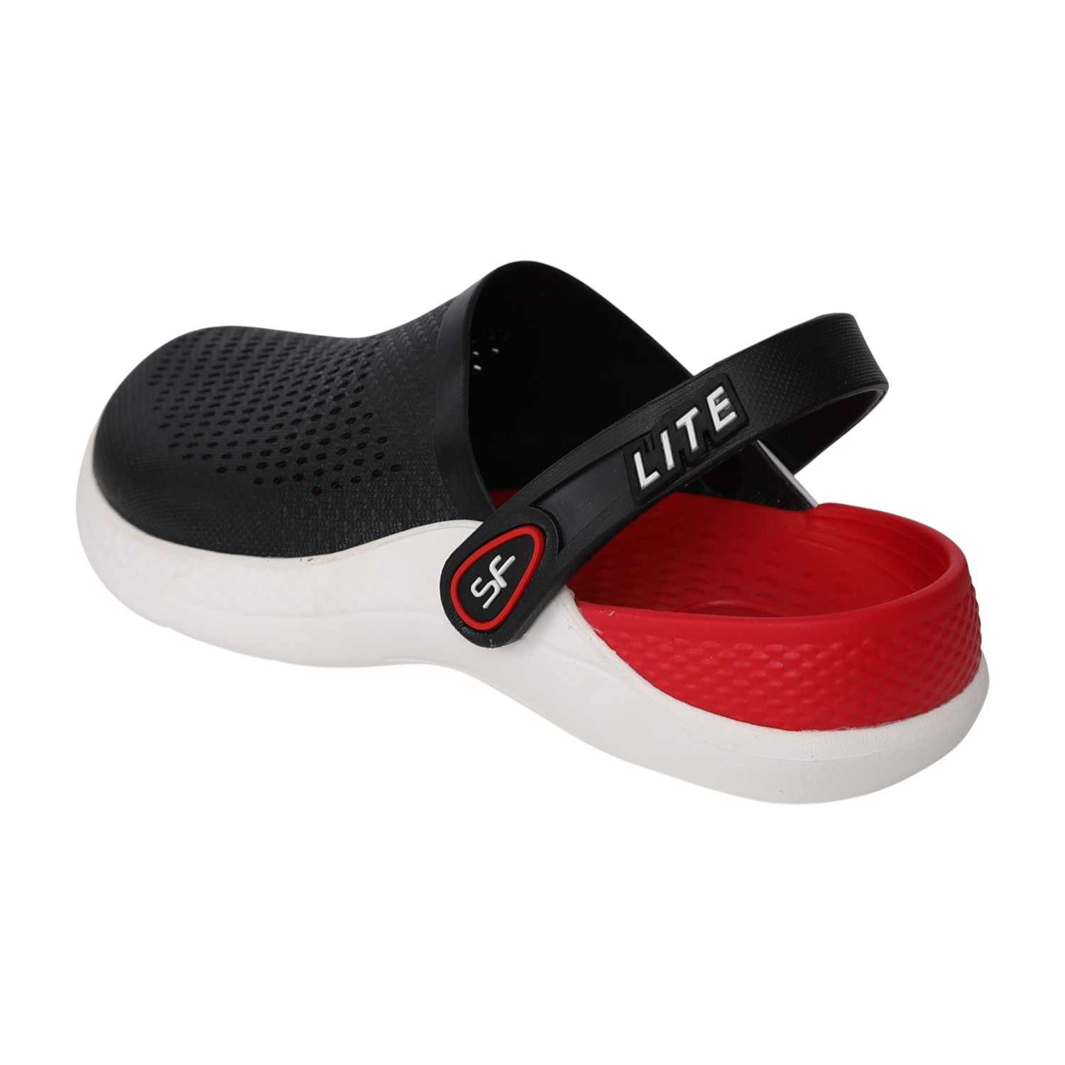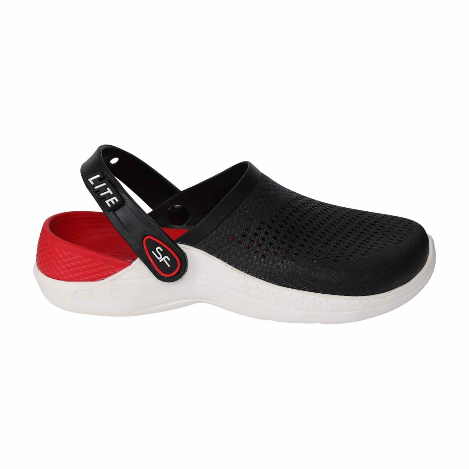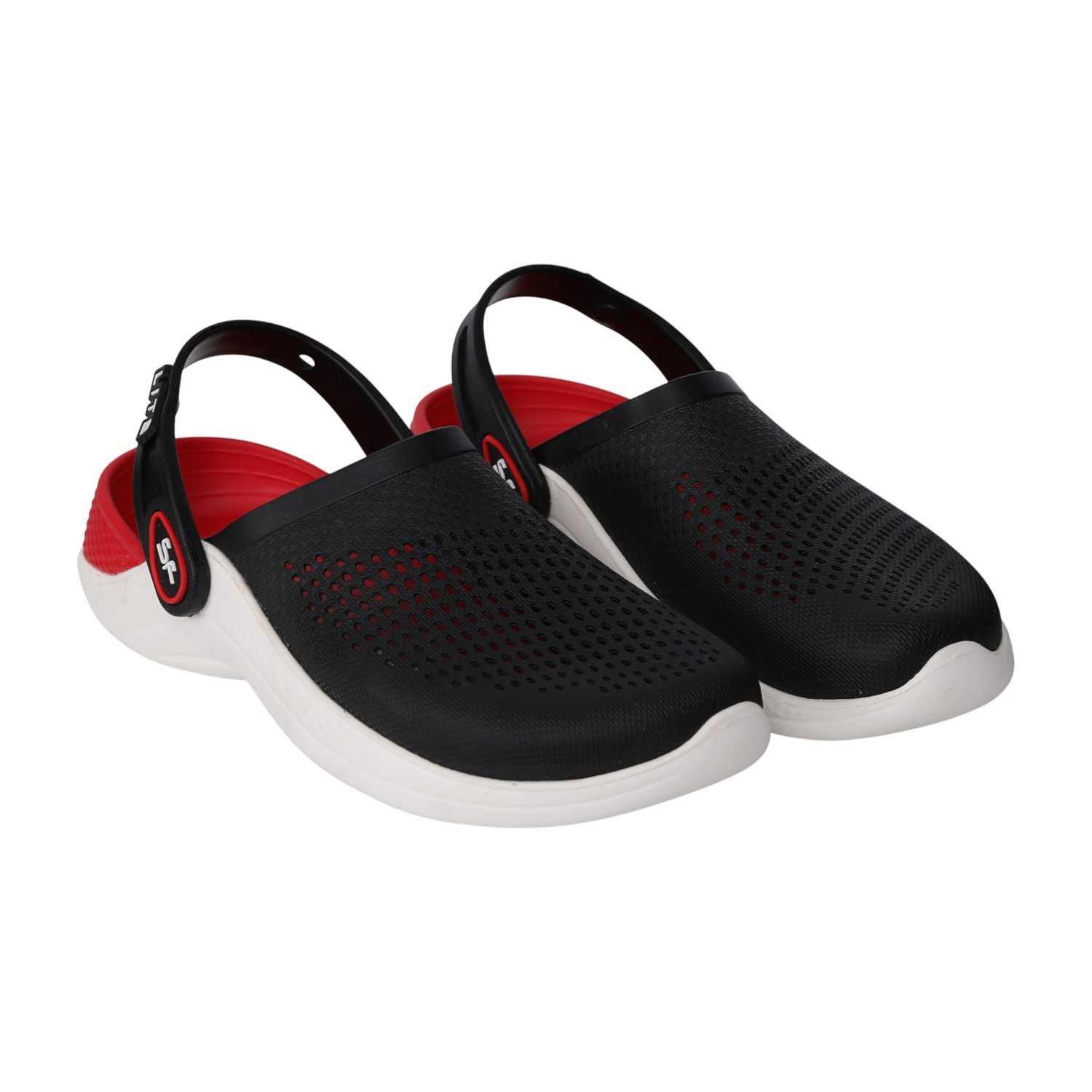 These Racer Red Clogs deliver a sporty, high-contrast look with a sleek black upper, a bold red lining, and a crisp white sole. Exceptionally lightweight and fully ventilated, they provide breathability and quick-drying comfort. The convertible slingback strap offers versatility, letting you secure them for action or wear them as a simple slide for quick, casual movement.