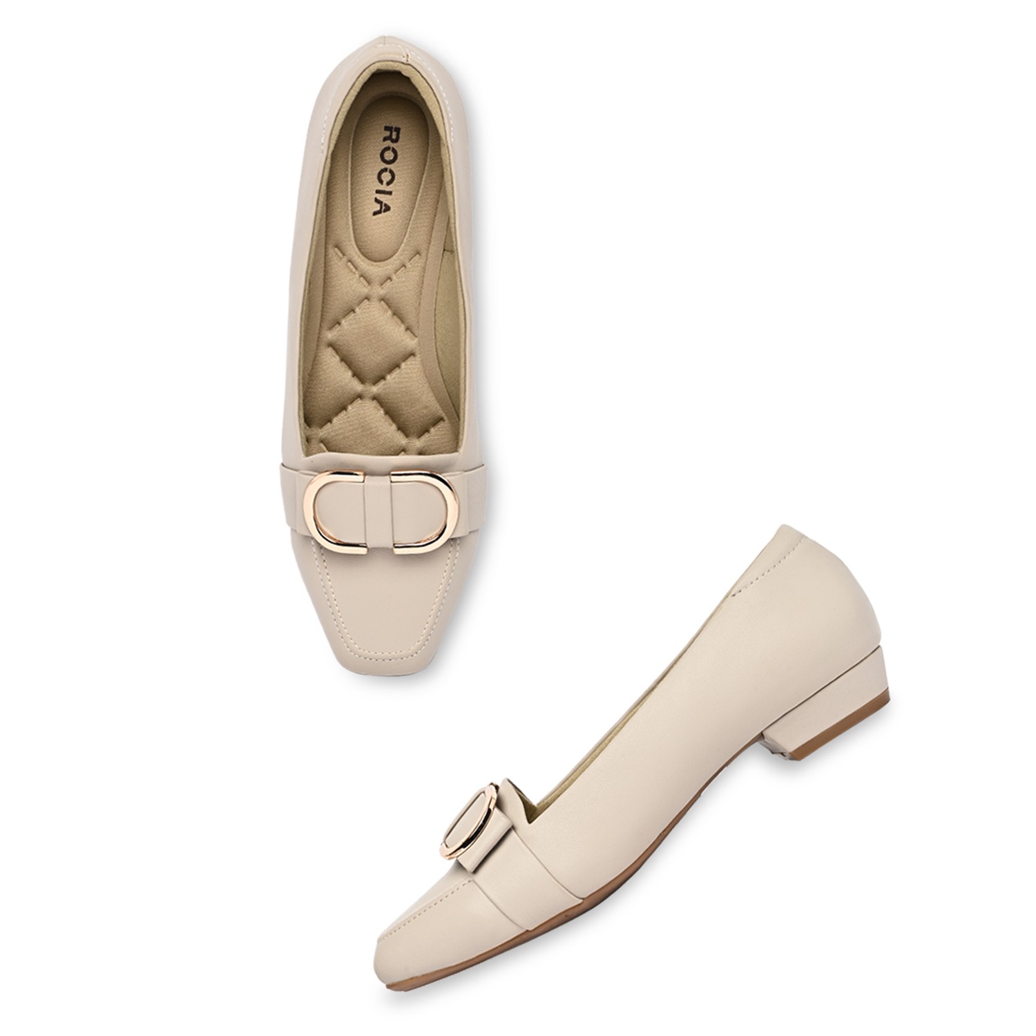 Home / Products / Rocia / Grey Women Square Toe Buckled Work Wear Pumps