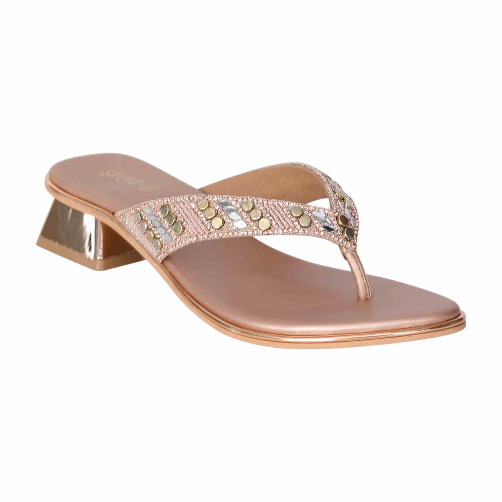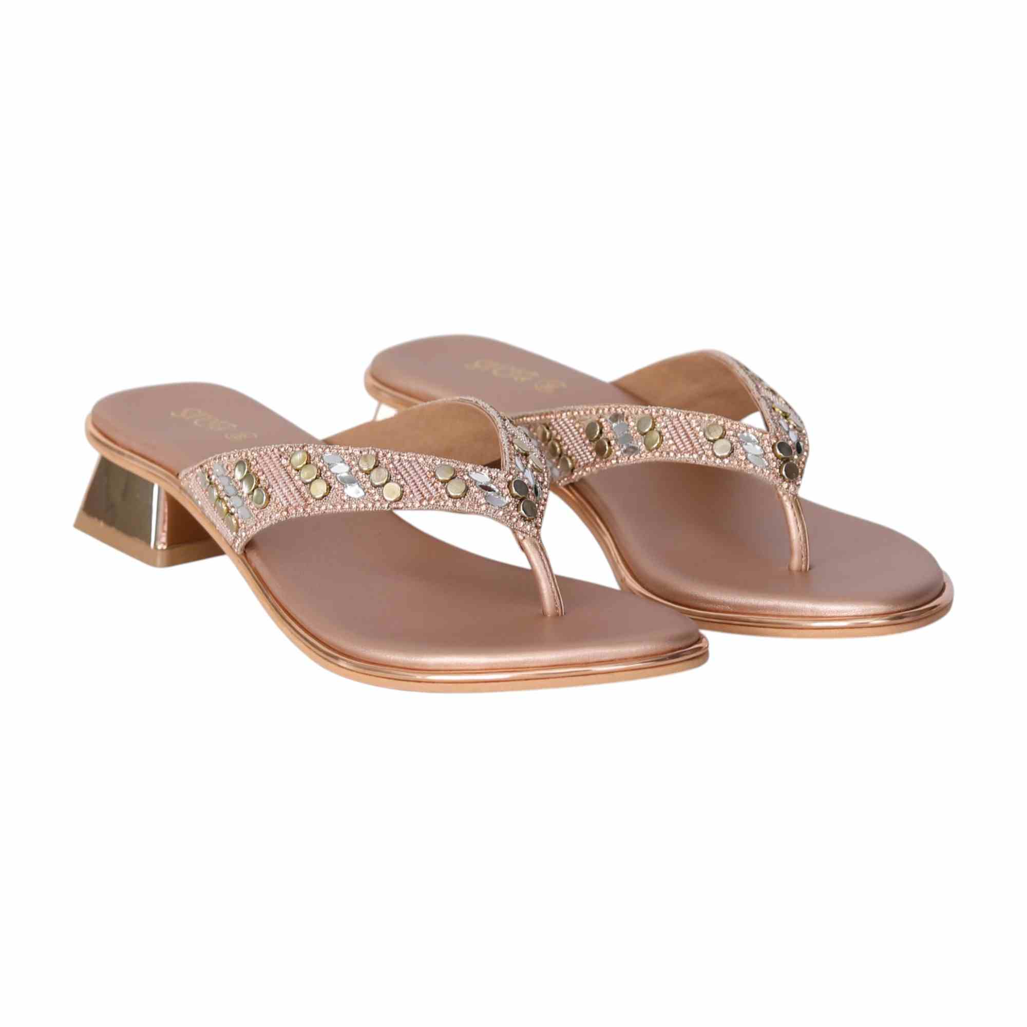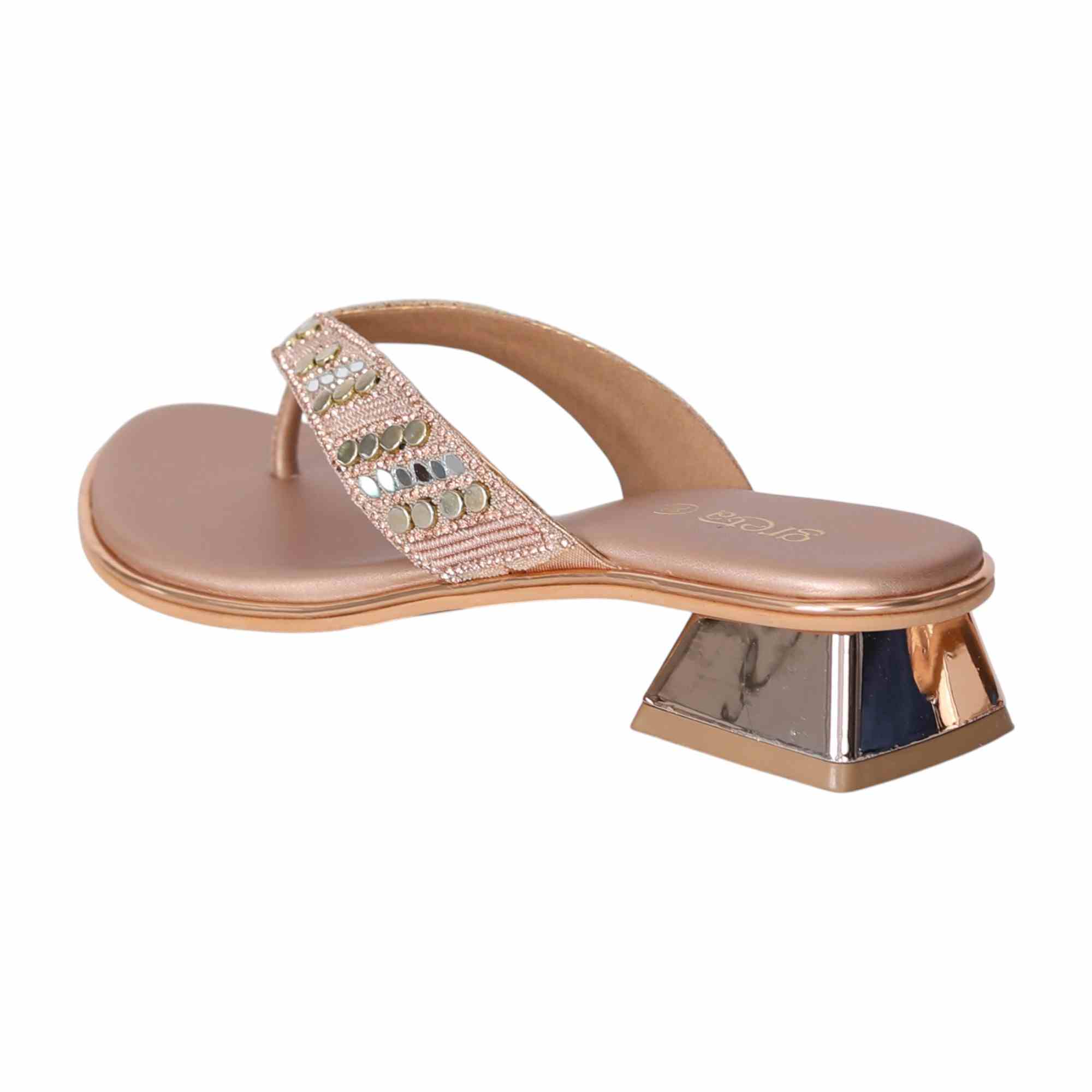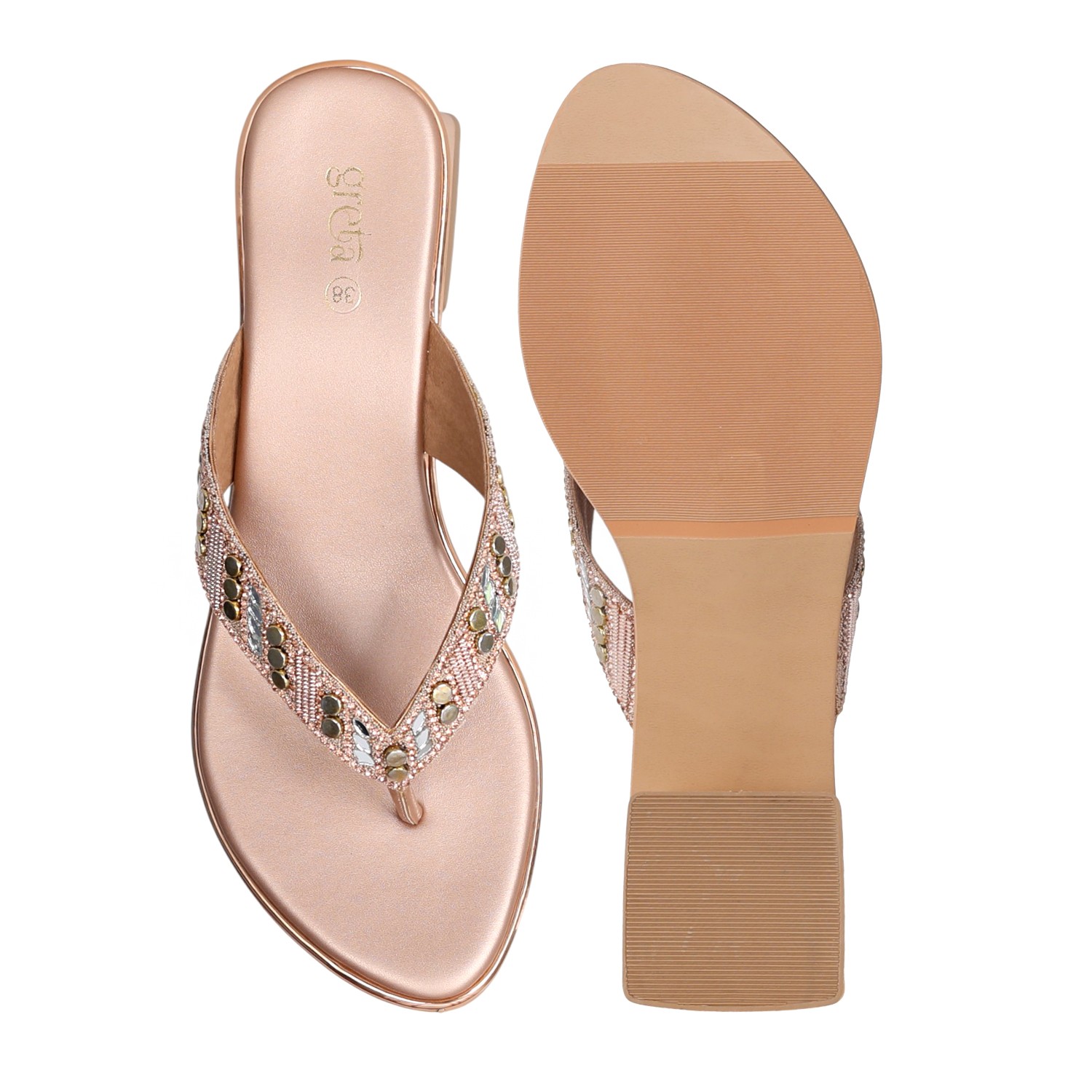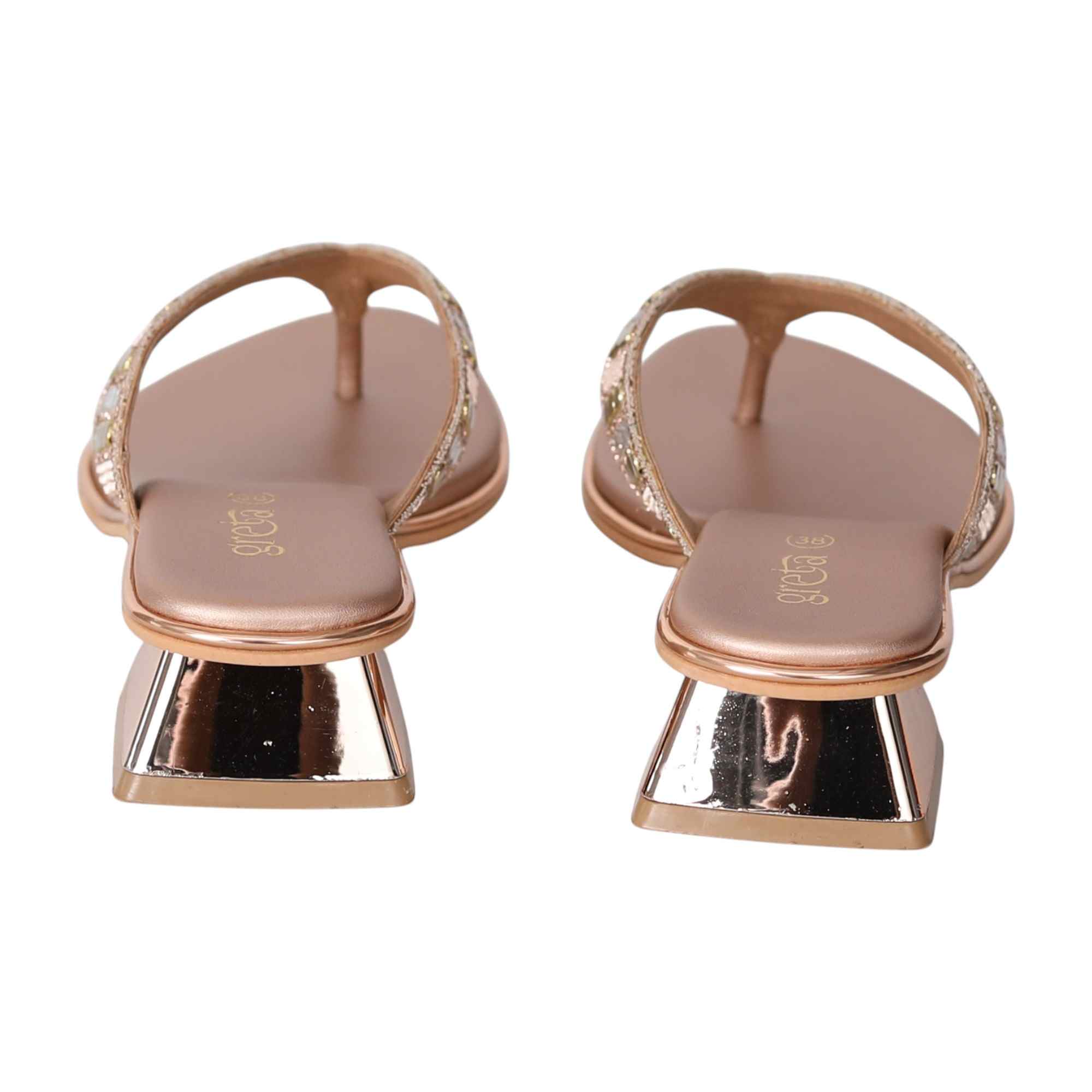 Home / Products / greta / Rose Gold Embellished Thong Heels with a Low Heel