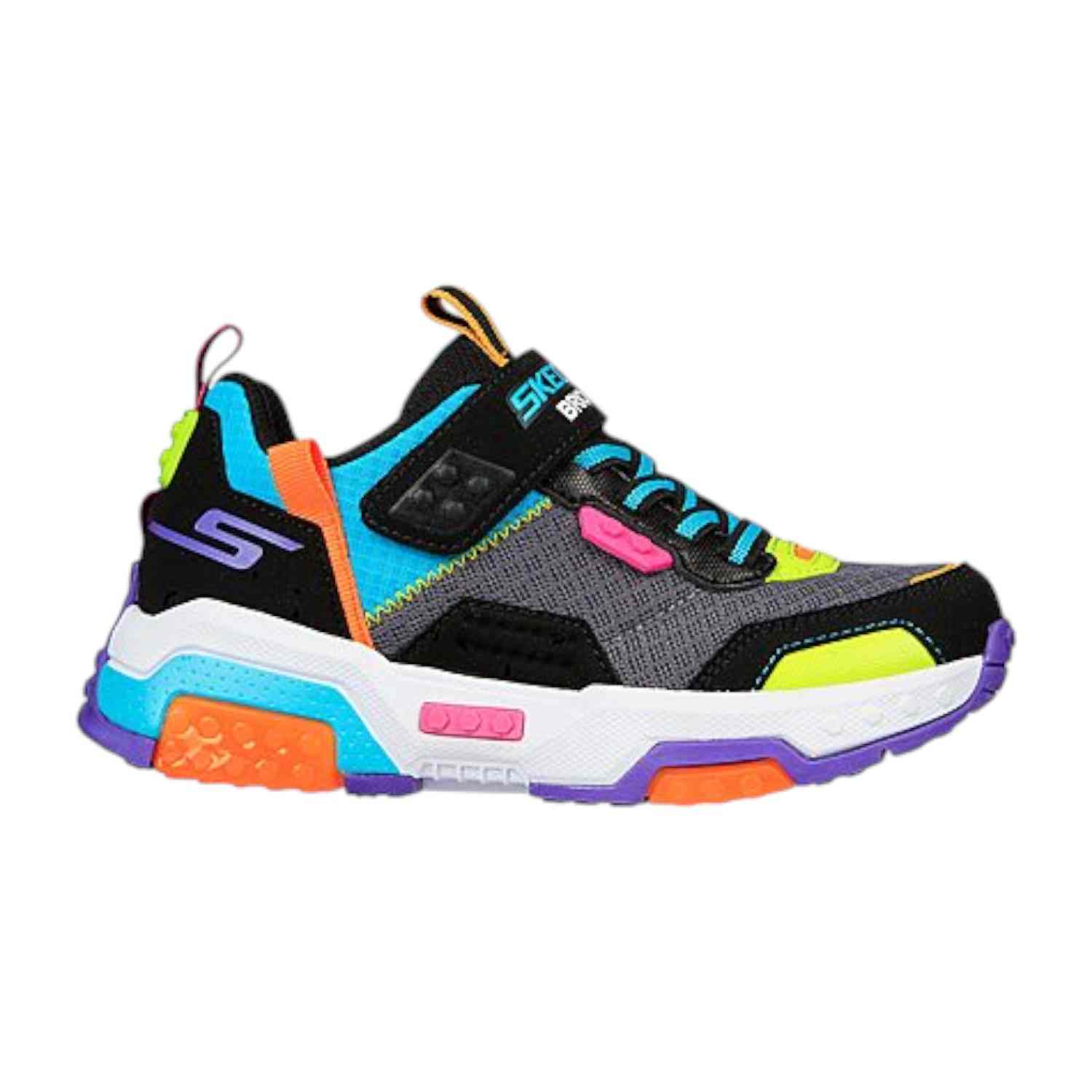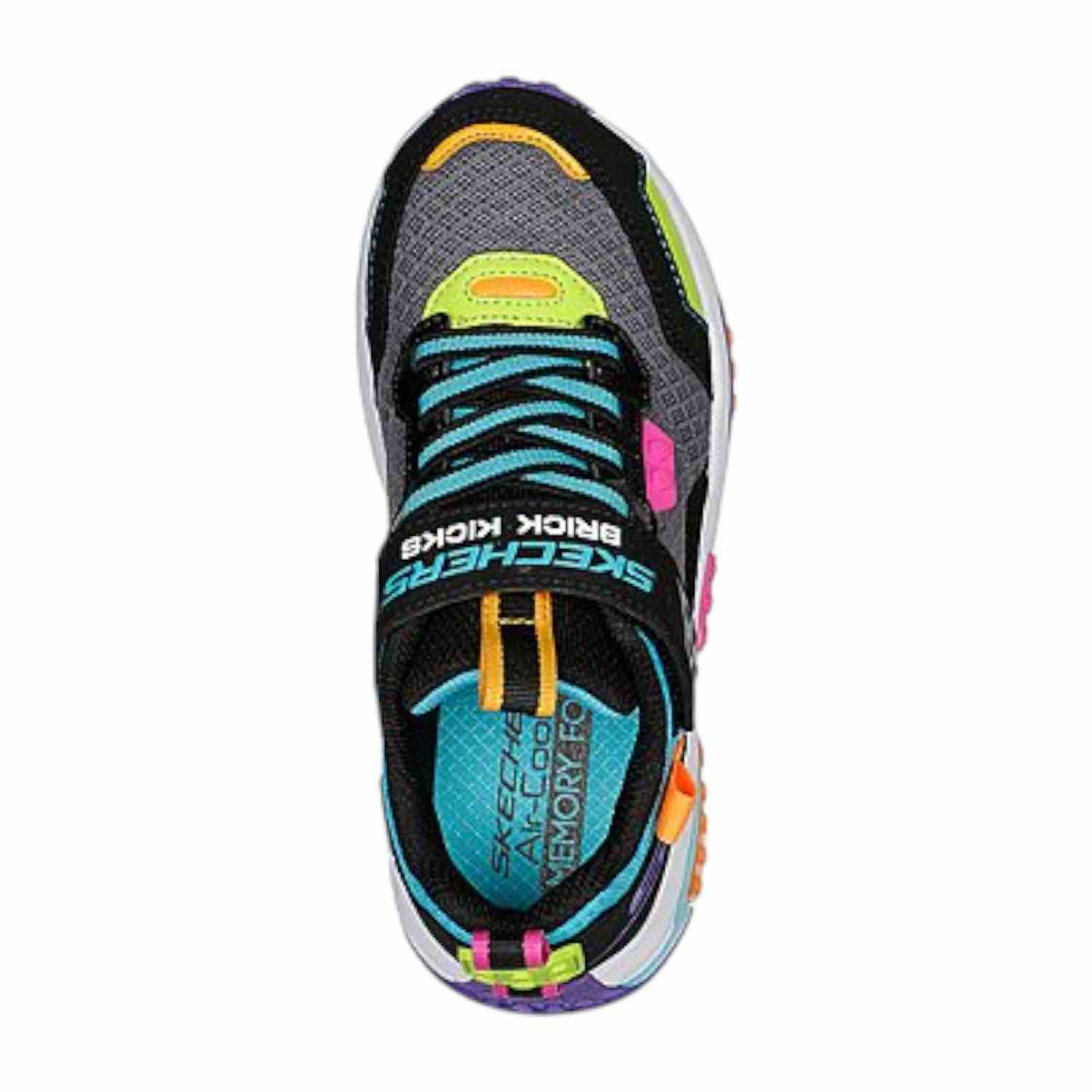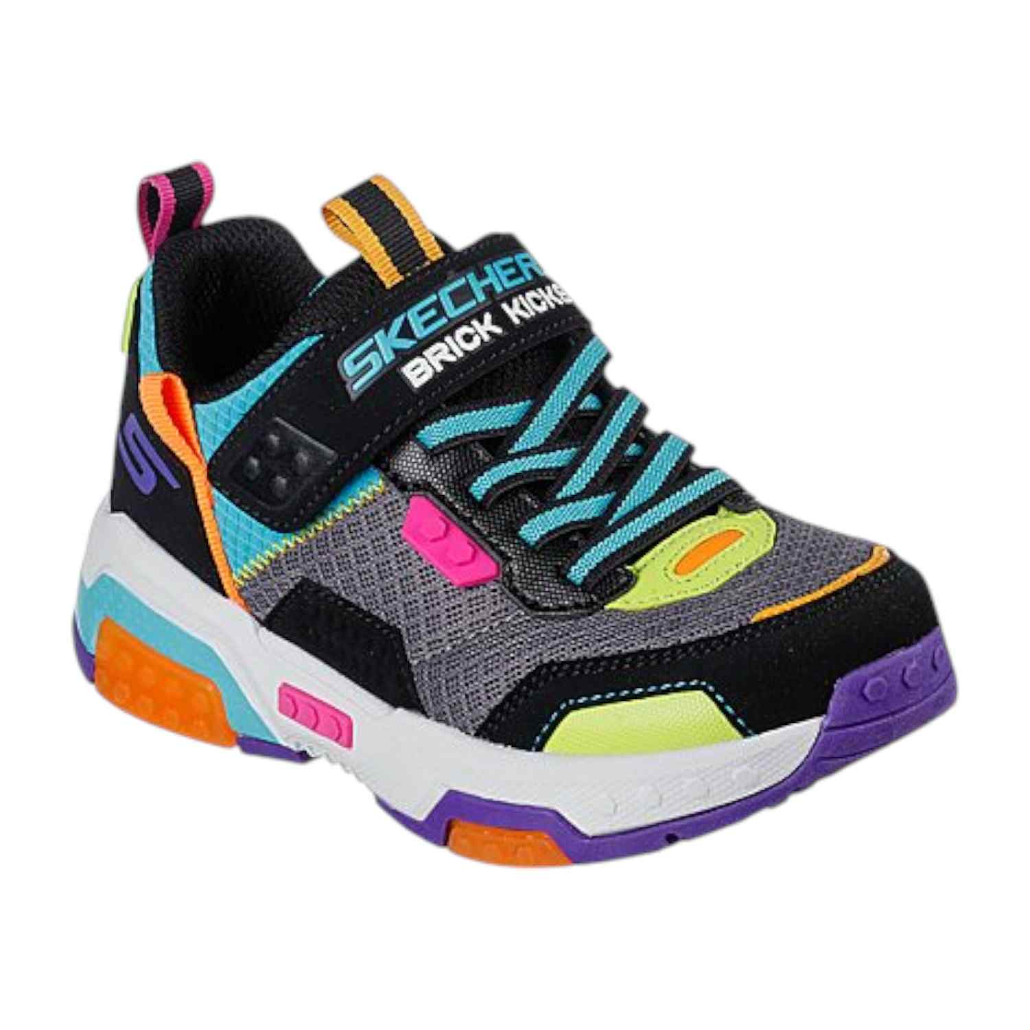 Build up a new colorful look with Skechers Brick Kicks 2.0. This playful Brick Kicks themed design features a synthetic and mesh upper with stretch laces and a Skechers Air-Cooled Memory Foam insole