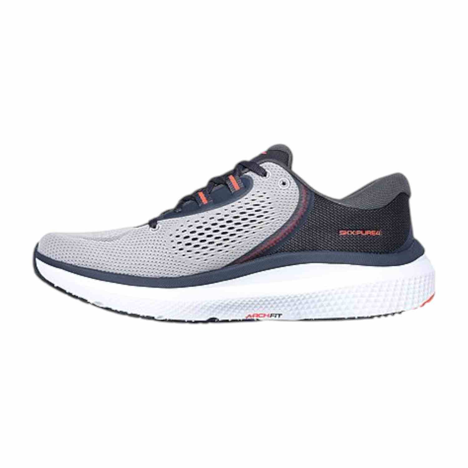Go the distance in long-lasting support and lightweight comfort wearing Skechers GO RUN Pure 4 Arch Fit. This responsive performance lace-up features an engineered mesh upper, a removable Arch Fit insole, resilient Skechers Eco Flight cushioning made with recycled materials, and a Goodyear Performance Outsole.