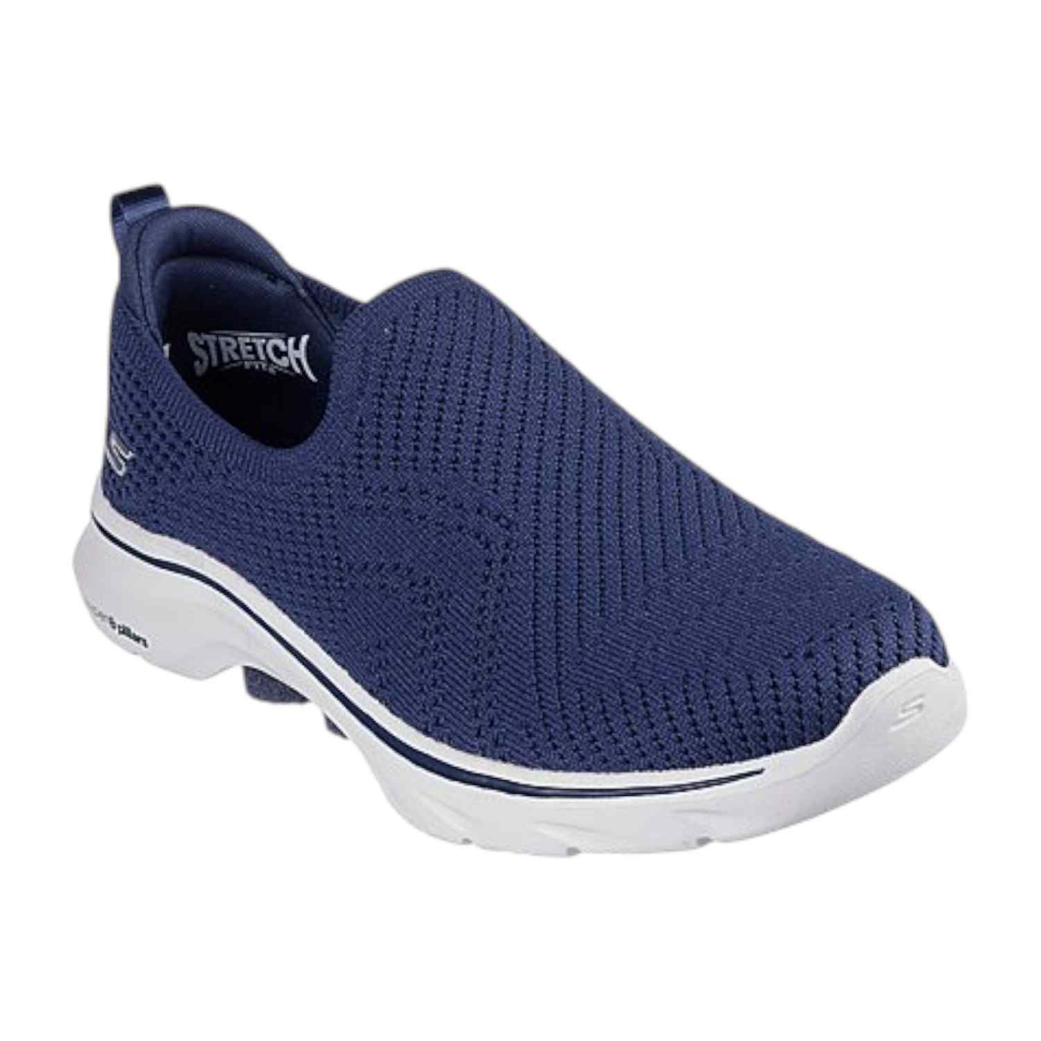 Walk in easy-wearing comfort with Skechers GO WALK 7™ - Amina. This laceless vegan design features a engineered knit Stretch Fit® upper with a Skechers Air-Cooled Goga Mat™ insole, lightweight ULTRA GO® cushioning and high-rebound Hyper Pillar Technology™ for added support.