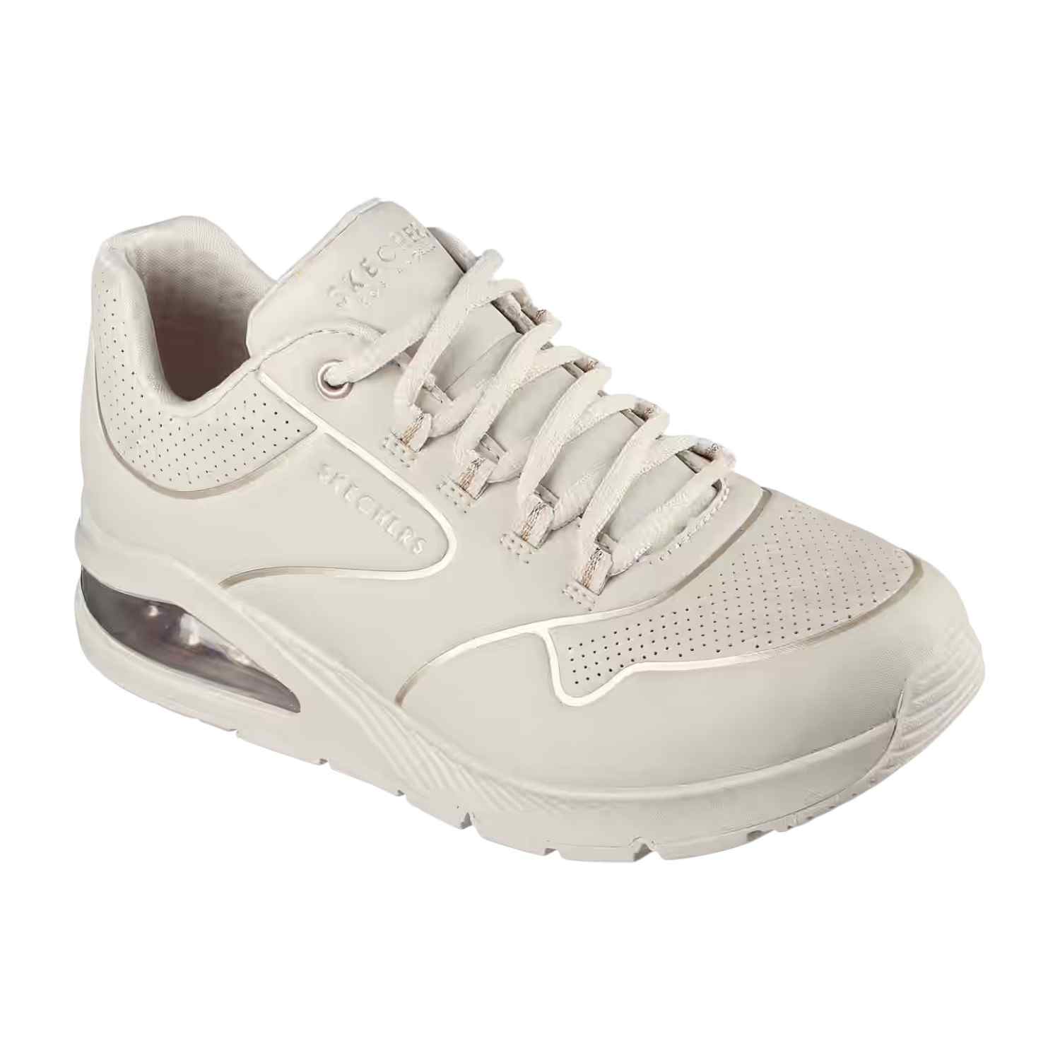Home / Products / SKECHERS / Off White Women Uno 2 - Golden Trim Lace Up Sneakers