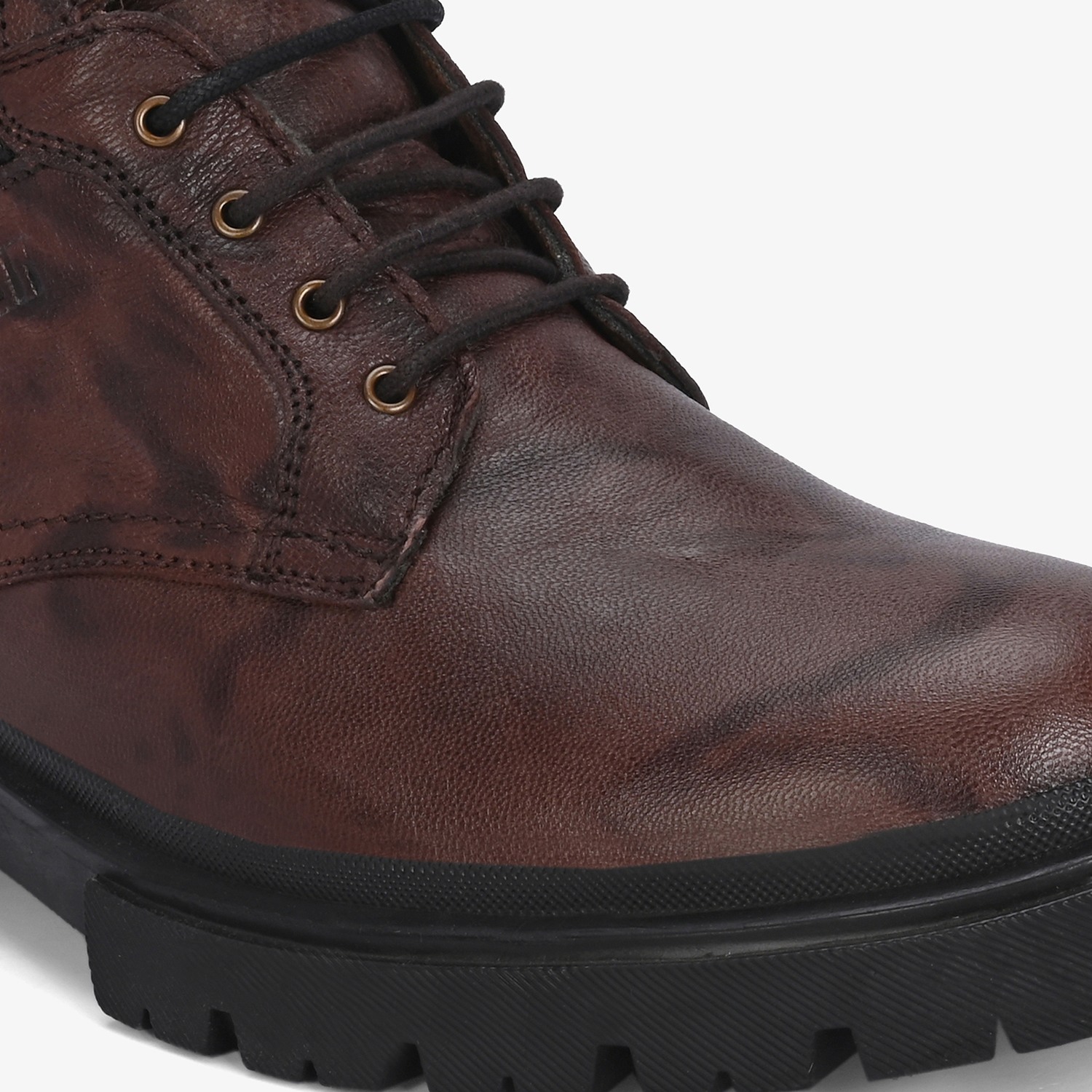 A pair of men rounded toe boots with lace up detailing made from premium leather and great cushioning for everyday adventure