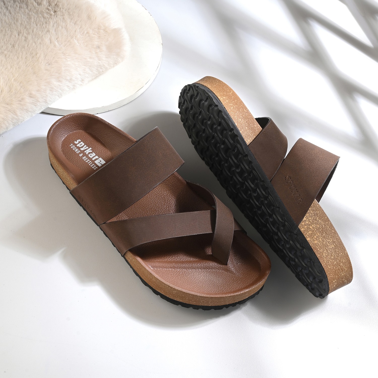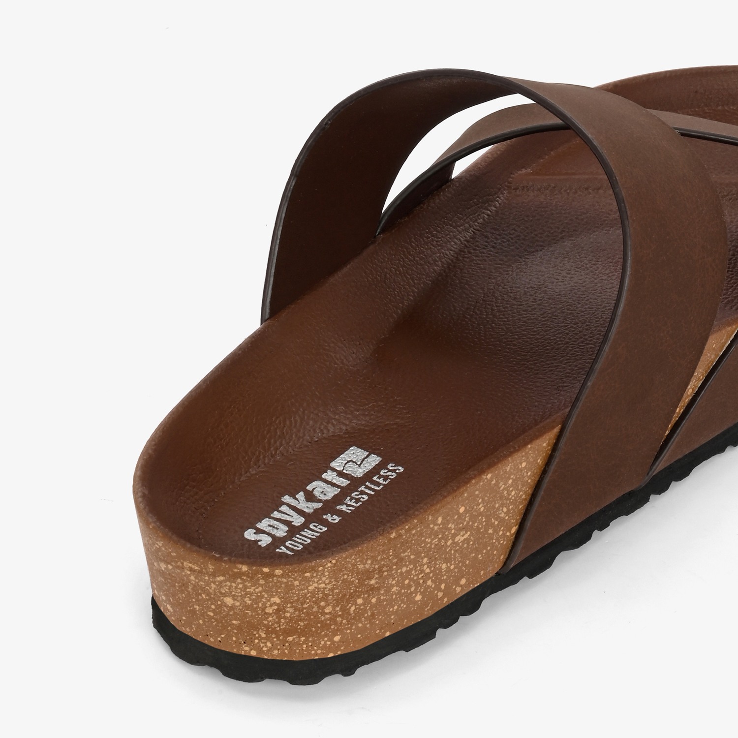 A pair of men comfort sandal made of PVC upper and cushioned footbed with EVA outsole for all day comfort