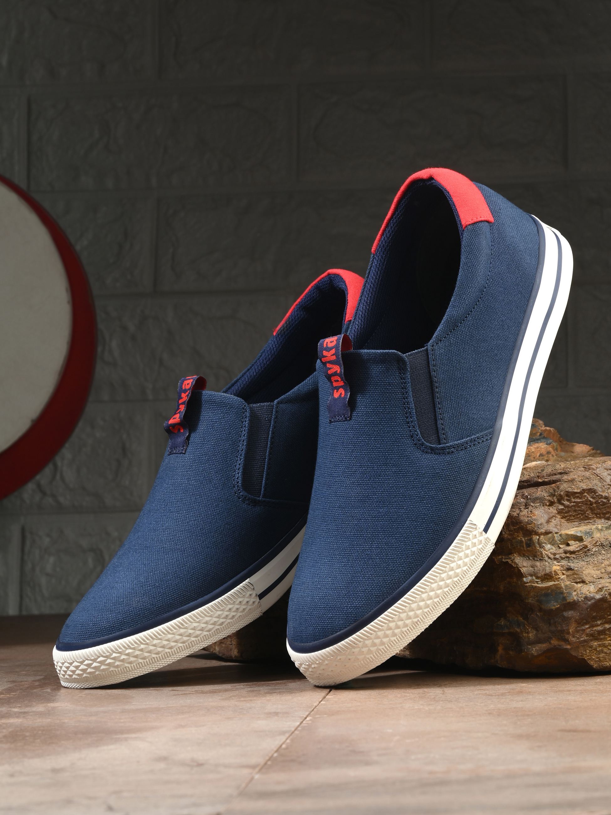 A pair of men canvas sneaker made premium cotton canvas upper with elastic fastening and cushioned footbed for all day comfort